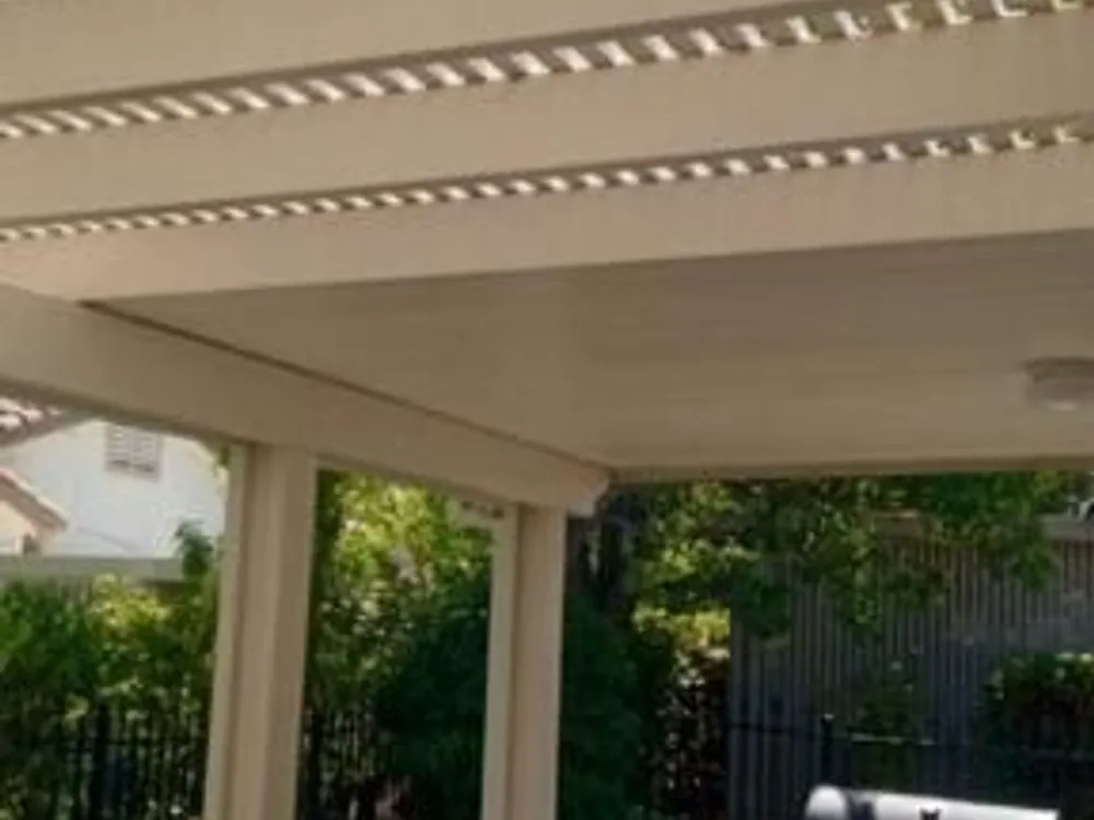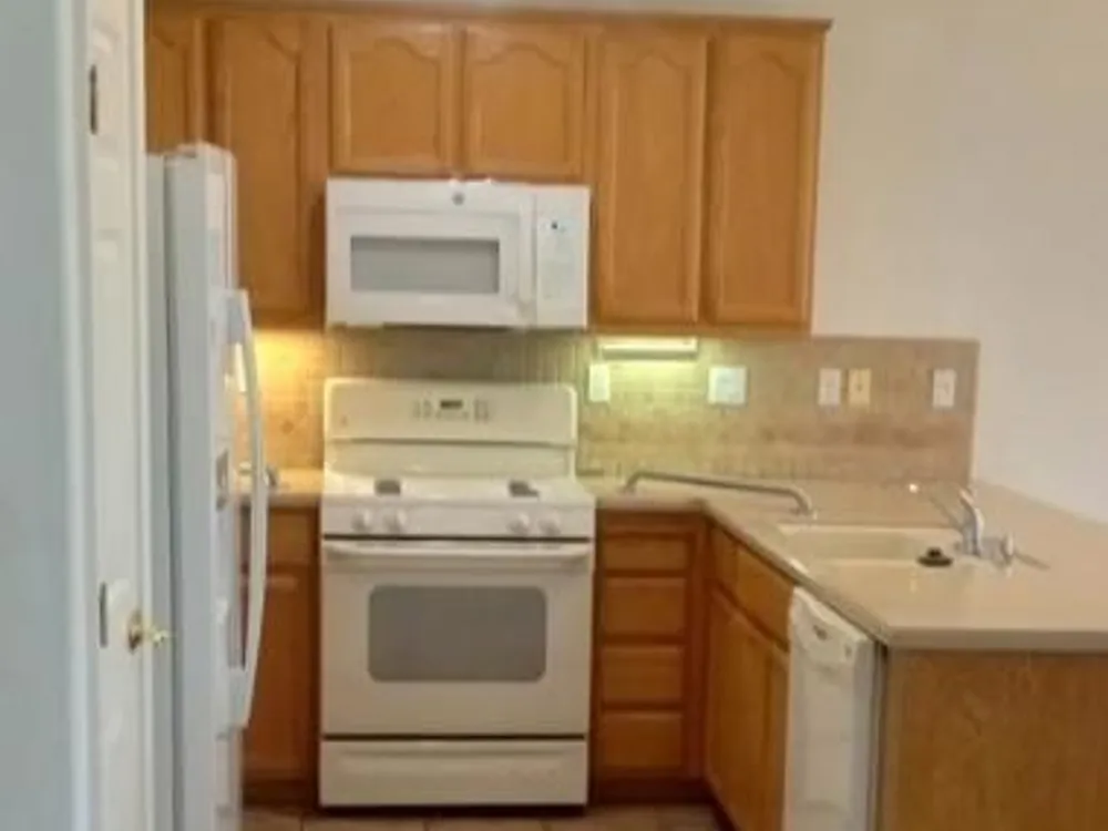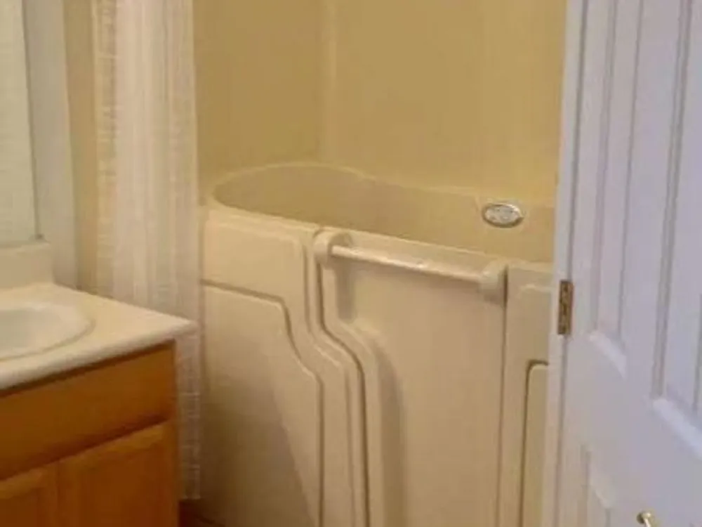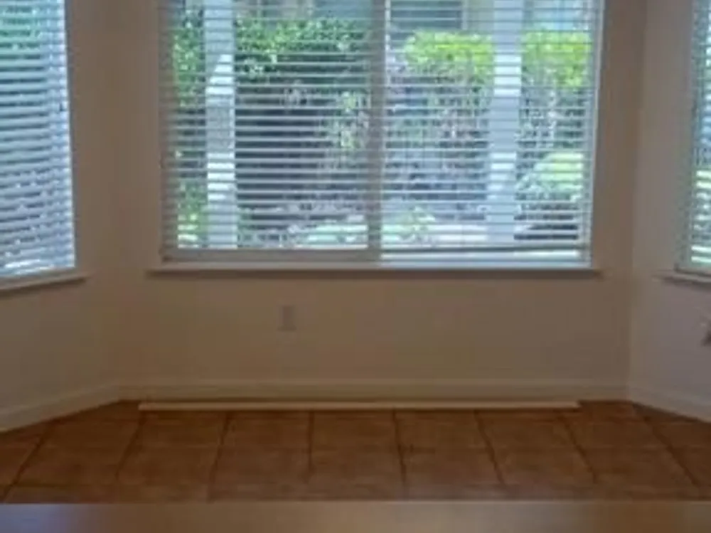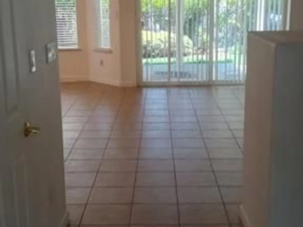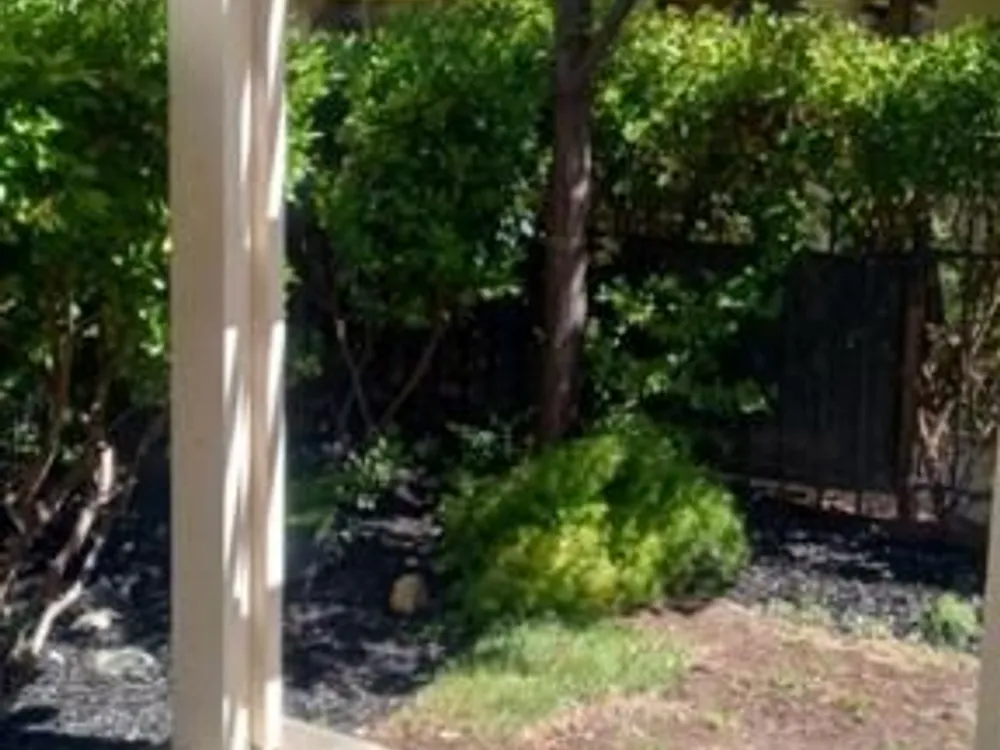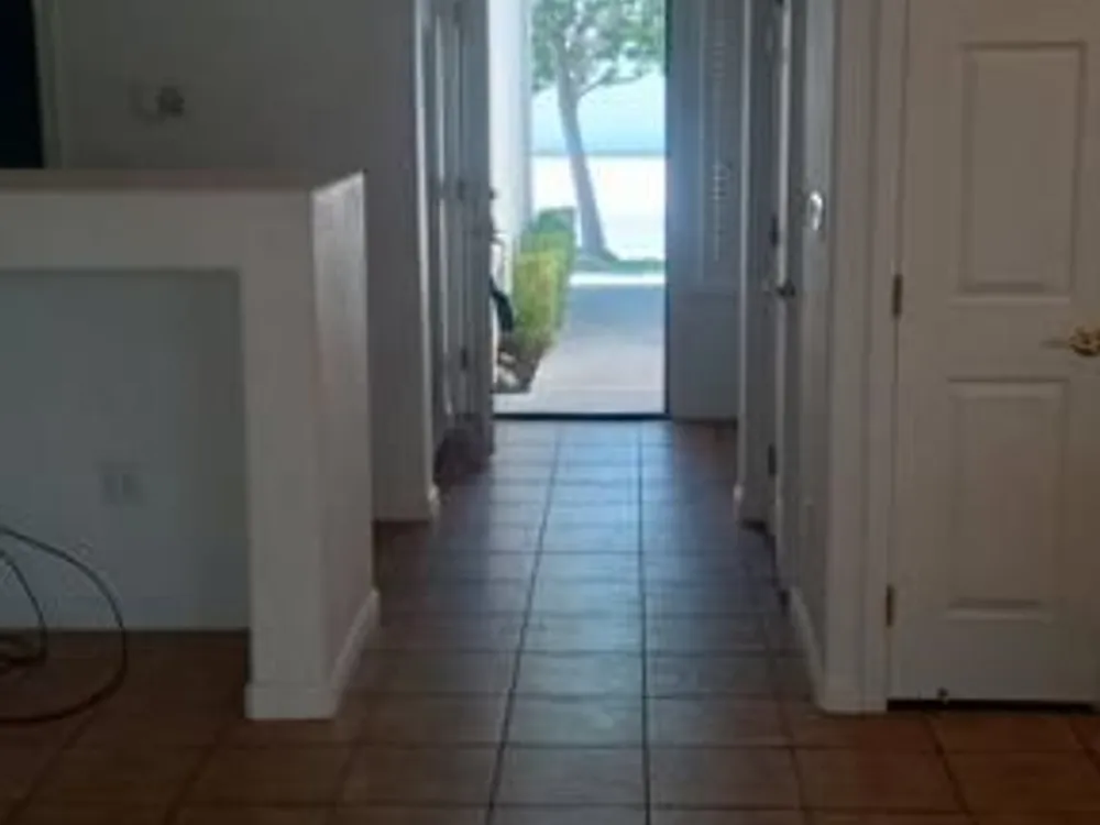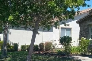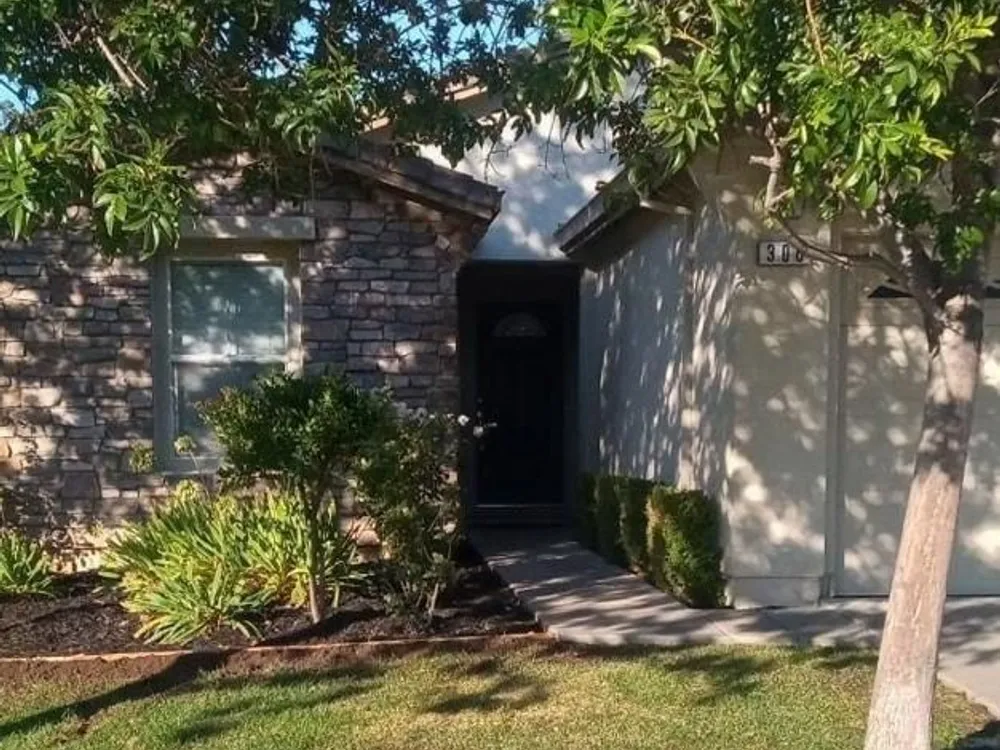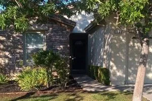 Unique trilogy home with tile flooring in entry and main floor. bedrooms have carpets Yards picked up and easy maintenance with bushes and front lawn in and back yards perfect for your household pets. Cement tile roofing. Garage has ADA ramps for wheelchair access and the master bath has Jacuzzi upright tub and shower unit, perfect for safe comfortable showering and bath care. Rear patio with lattace covering for private rear yard gatherings.