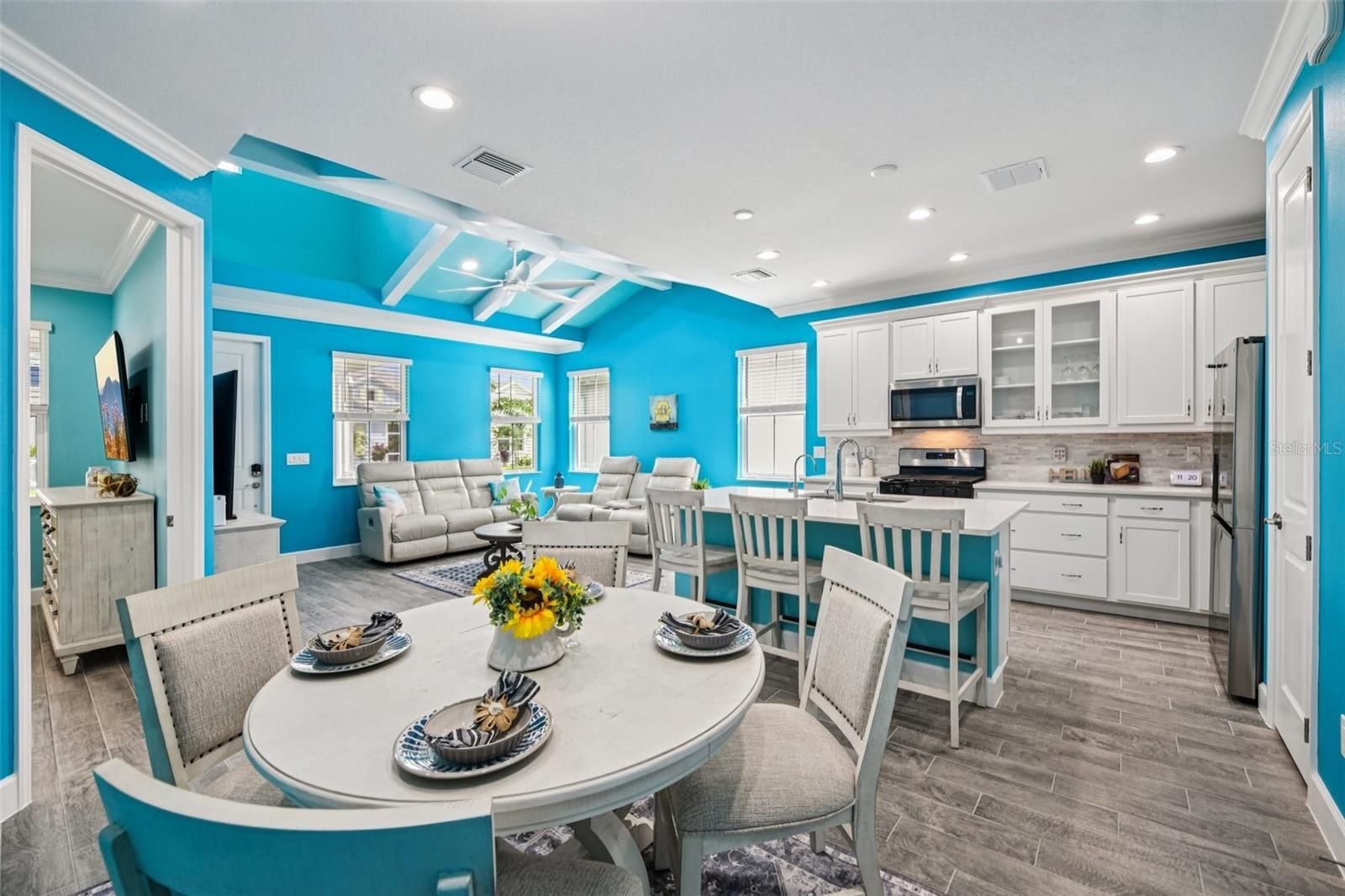 Welcome to the carefree lifestyle at Latitude Daytona Beach! Just bring a suitcase! This bright and airy cottage is less than a year old and comes fully equipped with top-of-the-line furnishings and many upgrades including vaulted ceilings with decorative beams, ceramic tile flooring, crown molding and more! The living area is open and features a gourmet kitchen, quartz counters, stainless steel appliances and a gas range. The primary suite offers a peaceful retreat with a spa-inspired bath featuring dual vanities with quartz counters and a tiled, glass-enclosed rain shower. The 2 car garage is oversized and offers shark coating floors and plenty of room for storage. At Latitude, you’ll enjoy a vibrant gated community with all of the amenities including a tropical lagoon-style resort pool with daily entertainment, plus two additional heated pools including a sports pool and indoor lap pool. Stay active with tennis, pickleball, bocce, and volleyball, or let your furry friends play at the golf cart–friendly dog park. Creative outlets abound with pottery and woodworking studios, a community theater, and the Bar & Chill restaurant. With lawn care, landscaping, exterior painting, and roof maintenance included, you’ll have more time to simply relax and enjoy the Latitude lifestyle.