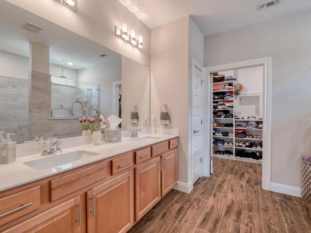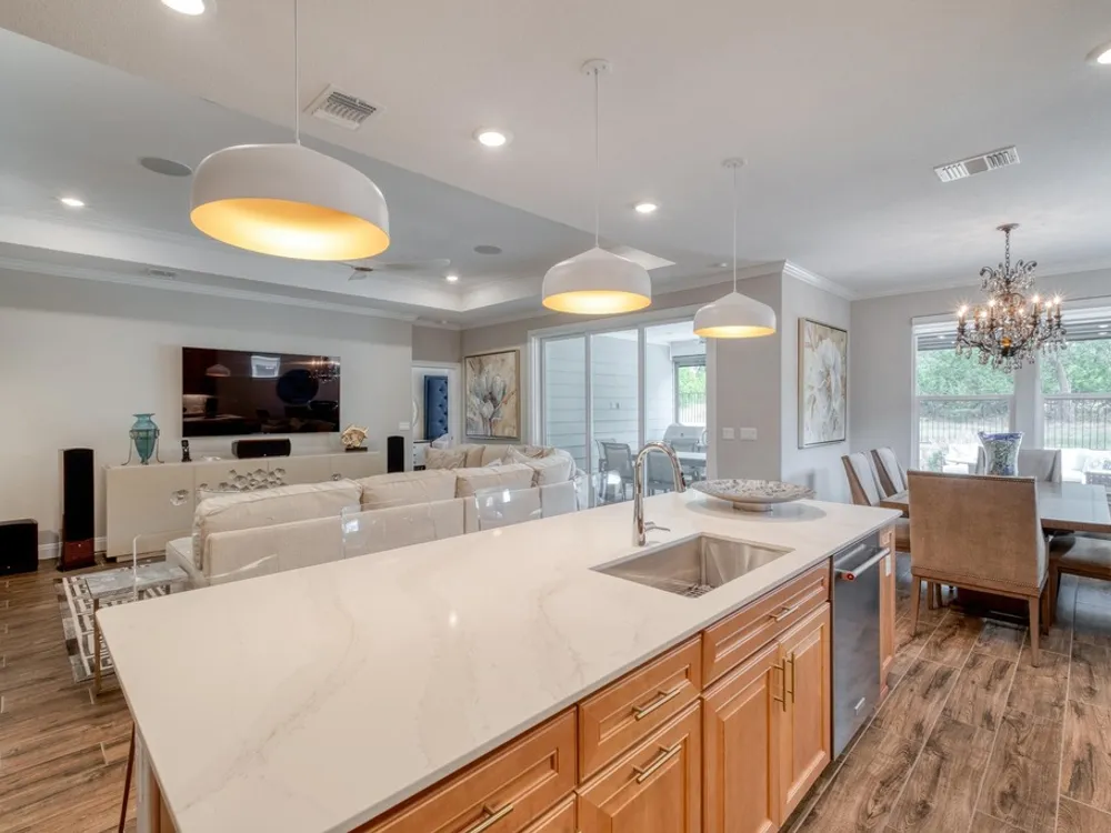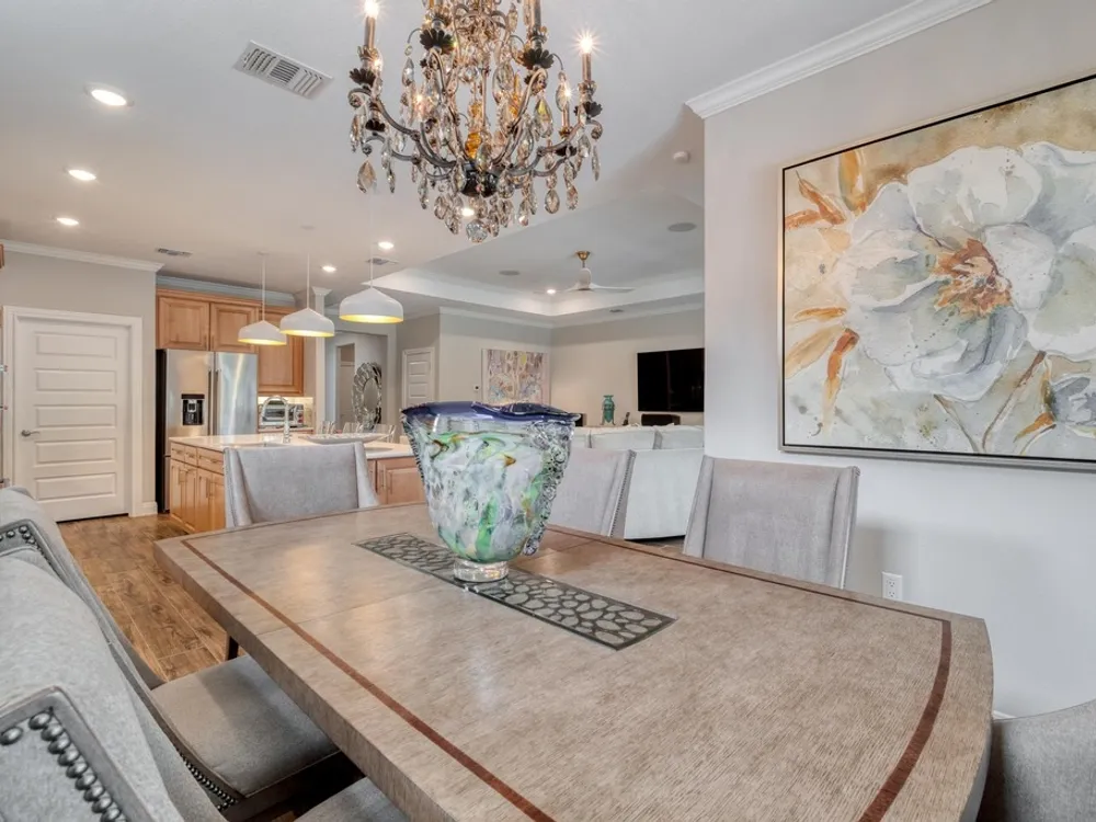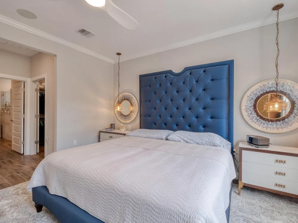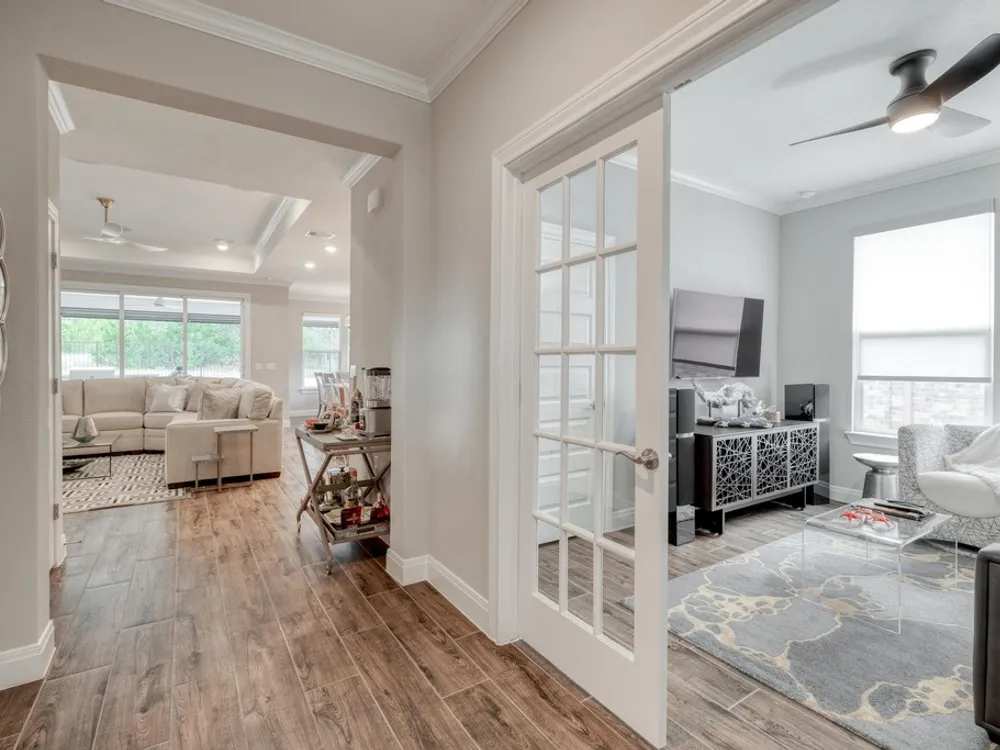 - Crown Molding, Double Vanity, French Door(s)/Atrium Door(s), Granite Counters, High Ceilings, Kitchen Island, Main Level Primary, NoInteriorSteps, Open Floorplan, Pantry, Walk-In Closet(s)