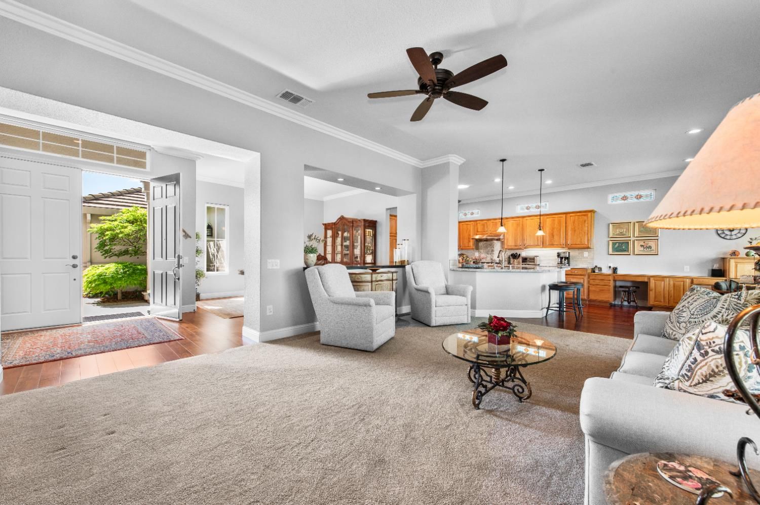 Don't miss this rare Stonecrest model located on a golf course lot in the highly sought-after Sun City Roseville 55+ community. This beautifully remodeled home offers 2 bedrooms, 2.5 bathrooms, office, and an inviting open floor plan designed for both comfort and entertaining. The spacious kitchen features granite countertops, ample cabinetry, and flows seamlessly into both formal dining and a cozy breakfast nook. The living area is highlighted by a gas fireplace, creating a warm and welcoming atmosphere. Additional features include a private office with built-in desk, two generously sized en-suite bedrooms, and an indoor laundry room with extra storage. The 2-car garage offers additional space for a golf cart, perfect for enjoying the community lifestyle. This exceptional updated home combines elegance, functionality, and location. Come enjoy all the amentities that Sun City has to offer.