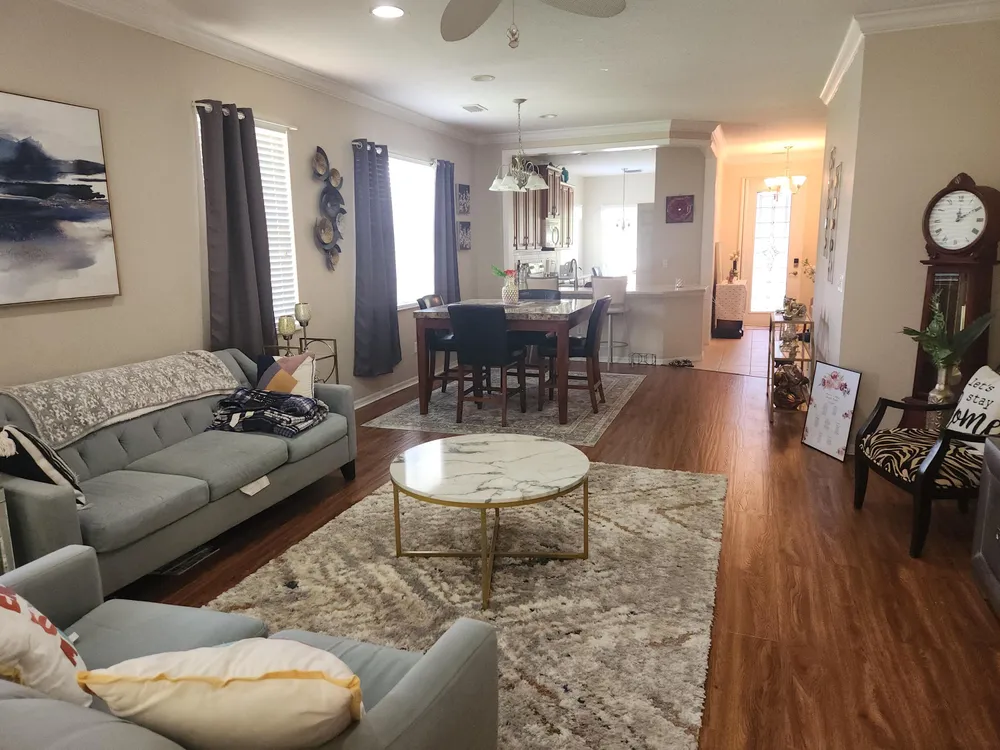 Are you serious? An HOA home with PRIVACY! Largest floorplan on largest lot in community! Fan-shaped lot provides back porch privacy from neighbors as well as lush tree lined view. Spacious bedrooms. Modern kitchen with soft close drawers, pot drawers, pull out shelving, pantry and eat in kitchen area. Beautiful primary bedroom tray ceiling, crown molding throughout, laminate and tile flooring.