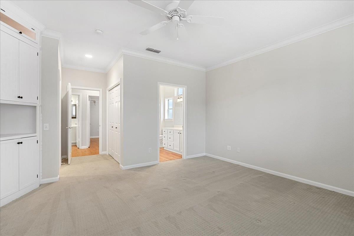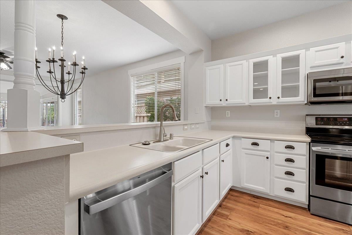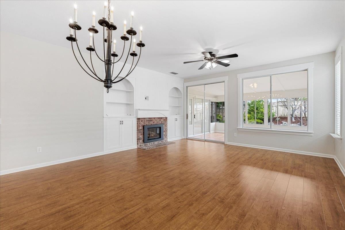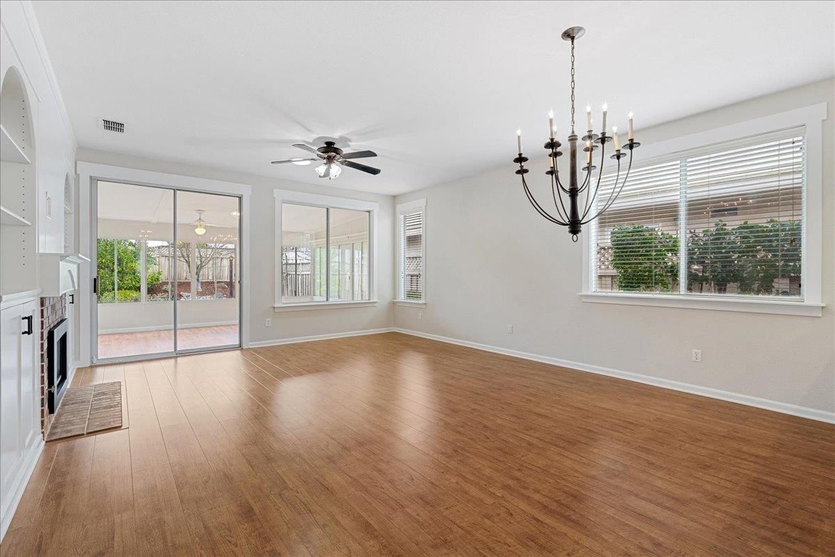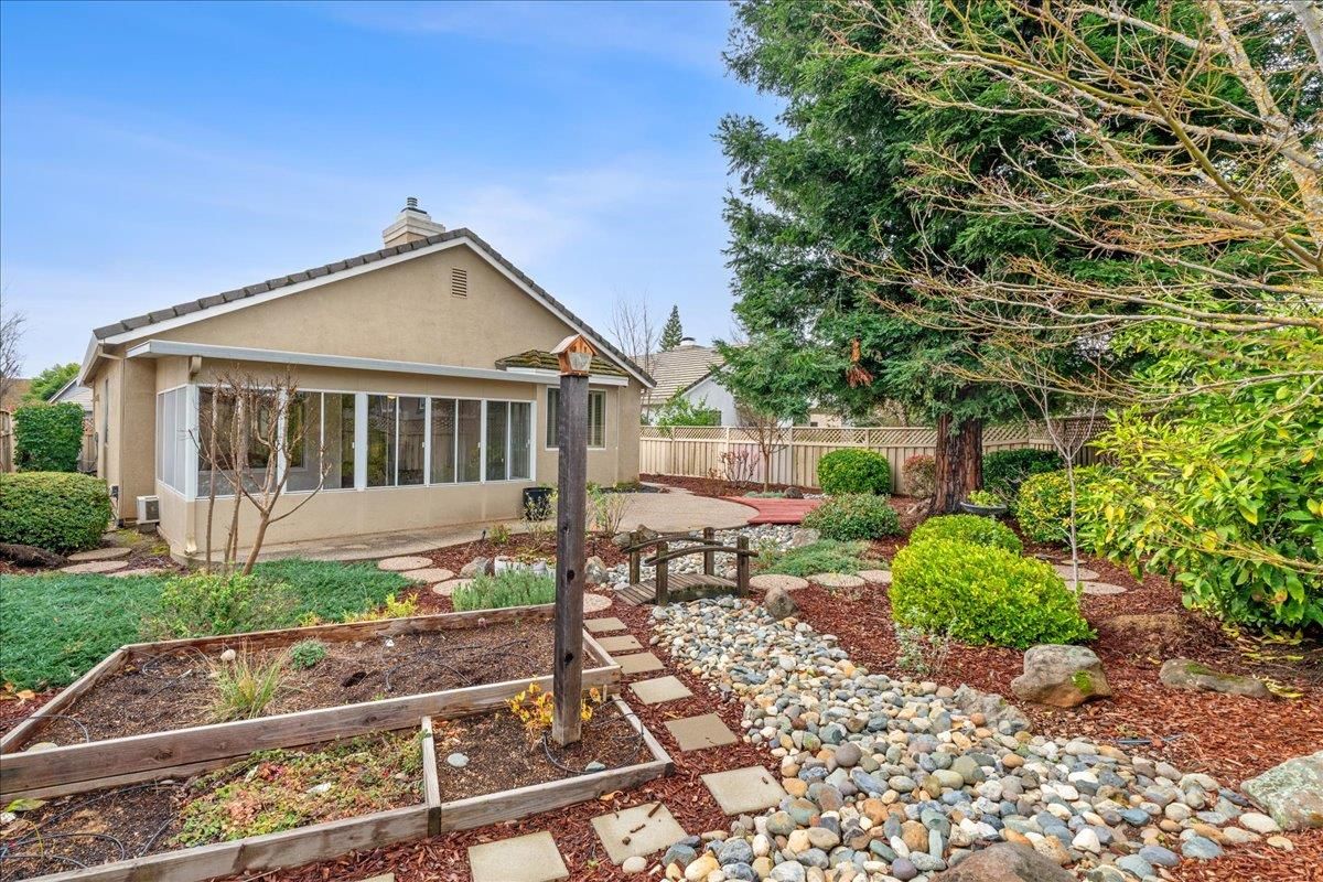This is an Orchard plan that offers upgrades not commonly available in the Sun City Roseville community. The 1,323 sq. ft. layout includes an additional half-car garage, a sunroom, a fireplace, fresh interior paint, and a desirable cul-de-sac location. Custom features of the home are the built-ins in the primary bedroom and the great room. The home has been well maintained, with updates to the HVAC and water heater, and replacements for the dishwasher, refrigerator, and washer/dryer in 2023. A Nest thermostat has also been installed, along with numerous other improvements throughout the property. You will love all the natural light, the shutters throughout, and the wood-look flooring that just helps this home shine. Residents can take advantage of Sun City Roseville's active 55+ community amenities, including the Timbers restaurant and bar, fitness center, pools, golf, tennis, pickleball, bocce courts, walking trails, and a variety of activity clubs. The community features no Mello Roos, low HOA fees, and service by Roseville Electric. Phtos have been delayed due to weather.