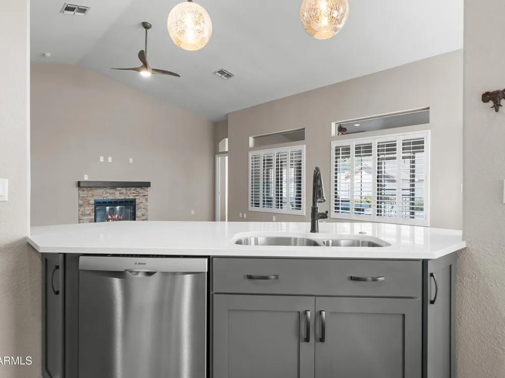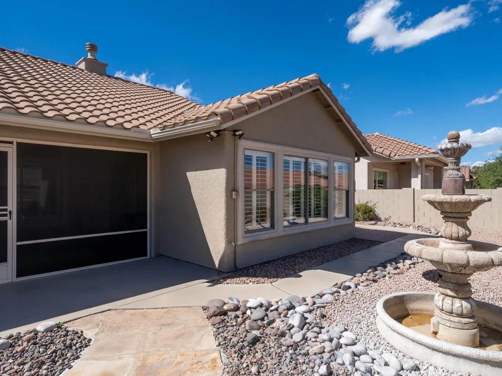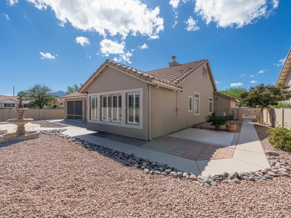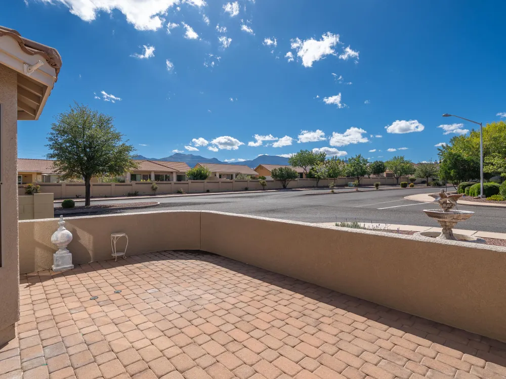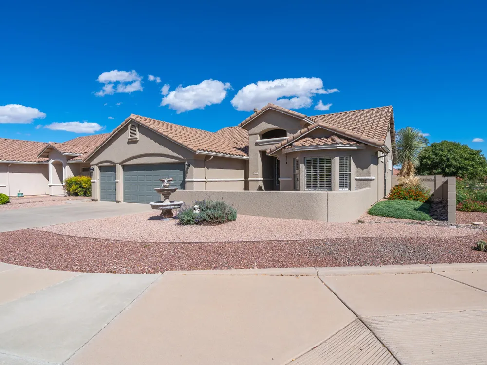 Discover carefree living in this beautifully remodeled 3 bedroom 2 bath home in the resort style 55+ community in Winterhaven. The property is located across the street from the clubhouse that features a heated pool, spa and work out area, This beautiful home offers custom plantation style shutters through out, luxury vinyl floors in most rooms, custom cabinetry that includes a wine refrigerator, jetted jacuzzi style tub in the primary bathroom, whole house filtration system, an overside garage for the golf cart, screened in porch that is also accessible through the primary bedroom, 2 fountains and a lovely front courtyard with gorgeous views of the Huachuca Mountains. This community offers 2 clubhouses, 2 outdoor pools and spas, bocce and shuffleboard courts and much more.
