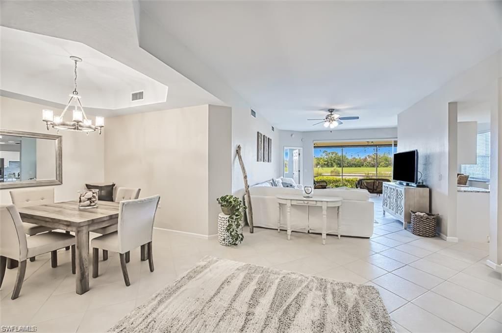Experience effortless Florida golf course living in this beautifully appointed 1st-floor condo in the gated community of Verandah. Offering 2 bedrooms plus a den, 2 bathrooms, and 1,488 sq. ft. of thoughtfully designed living space, this residence also includes the rare convenience of an attached 2-car garage. Perfectly positioned with western exposure, enjoy breathtaking sunset views overlooking the Old Orange Golf Course, Hole #5, creating a serene and picturesque backdrop from your living space. Inside, the kitchen features granite countertops, stainless steel appliances, and a decorative cut-glass backsplash, blending style and function for everyday living and entertaining. The main living areas are finished with tile flooring for durability and easy maintenance, while the bedrooms offer upgraded luxury vinyl plank flooring for comfort and warmth. The versatile den provides the ideal space for a home office, hobby room, or guest overflow. Located within the highly sought-after Verandah golf community, residents enjoy access to exceptional amenities including two championship 18-hole golf courses, 5 Har-Tru tennis courts, 2 bocce courts, 8 pickleball courts, kayak access on the Orange River, and 9 miles of walking and biking trails. This vibrant, active lifestyle community offers something for everyone. Whether you're seeking a seasonal retreat or full-time residence, this golf course condo delivers the perfect blend of comfort, convenience, and resort-style living in one of Southwest Florida’s premier gated communities.
