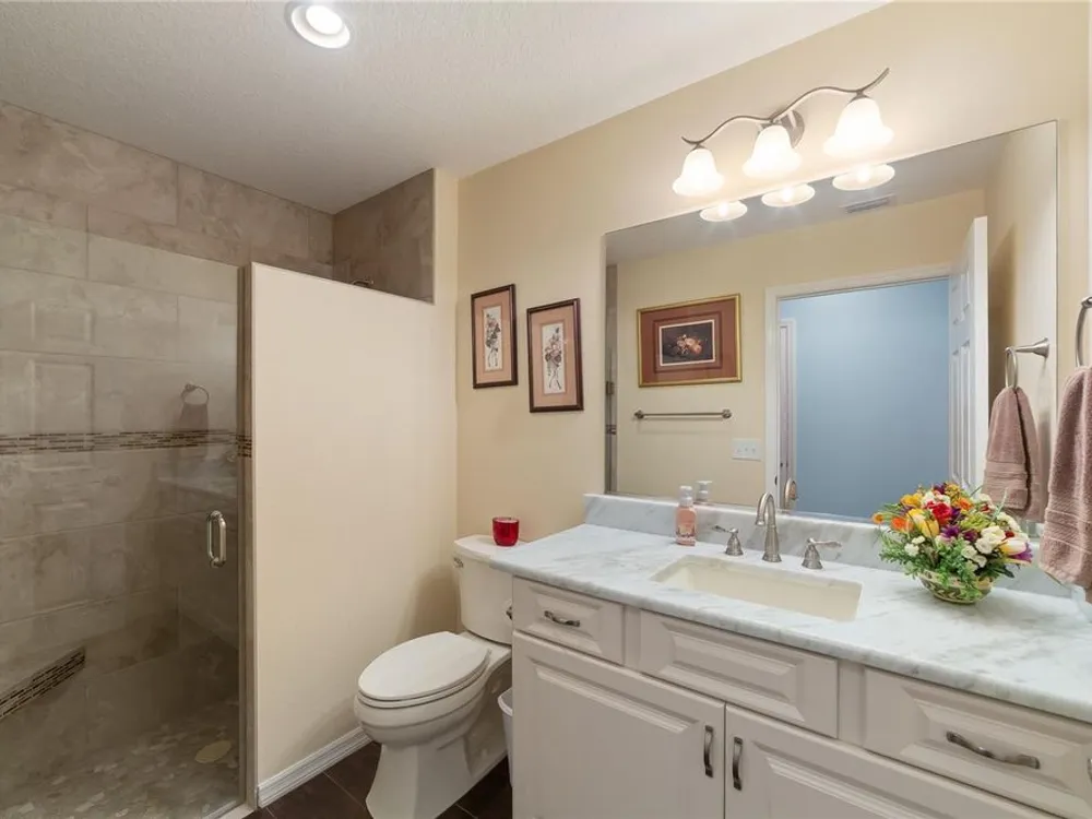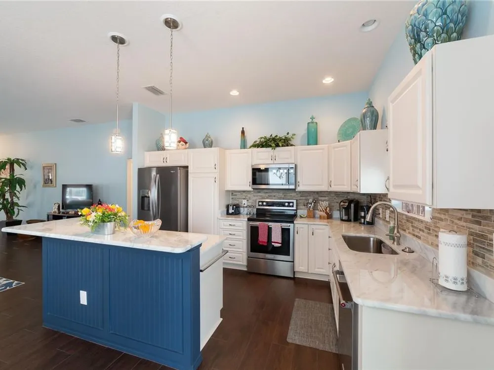 HUGE PRICE REDUCTION!!! Exceptional Seabreeze Model in the Village of Pine Ridge – Beautifully Upgraded & Move-In Ready! Welcome to 3092 Kramer Court — a stunning, meticulously maintained 3-bedroom, 2-bath Seabreeze model located in the highly desirable Village of Pine Ridge in The Villages, Florida. This thoughtfully updated home offers a perfect combination of comfort, style, and functionality, with premium features and upgrades inside and out. Step into an open-concept floorplan filled with natural light, enhanced by neutral tile flooring throughout the main living areas and plush carpet in the two guest bedrooms (installed in 2021). The heart of the home — the spacious kitchen — was fully remodeled in March 2023, featuring granite countertops, custom soft-close cabinetry, updated backsplash, modern under-mount sinks, and new high-efficiency toilets in both bathrooms. The chef in the family will appreciate the KitchenAid stainless steel appliances, including the dishwasher, microwave, and range (2021), along with a Whirlpool refrigerator (2023). Elegant pendant lighting (2022) adds ambiance to the kitchen island, perfect for casual dining and entertaining. The bathrooms are equally impressive, each offering tiled walk-in showers (completed in 2019), updated vanities with granite counters, and a sleek, contemporary look that complements the rest of the home. The interior was professionally painted in 2021, creating a warm and cohesive aesthetic throughout. This home is truly move-in ready with numerous recent upgrades, including: • Lanai pavers installed in 2023 – a great space for morning coffee or evening relaxation • Front paver walkway (2021) adds curb appeal and welcoming charm • Gutters installed in 2021 for improved drainage and home protection • Custom window shades (2022) for comfort and privacy • Upgraded garage and light post fixtures (2022) for safety and style • New smoke detectors (2025) for enhanced peace of mind Enjoy the Florida lifestyle year-round in the covered lanai or take a stroll through this quiet and friendly neighborhood. The Village of Pine Ridge offers close proximity to golf courses, recreation centers, shopping, dining, and nightly entertainment — all accessible by golf cart! Whether you’re looking for a seasonal escape or a full-time residence, this beautifully appointed home checks all the boxes. Don’t miss the opportunity to own this one-of-a-kind Seabreeze model — schedule your private showing today!