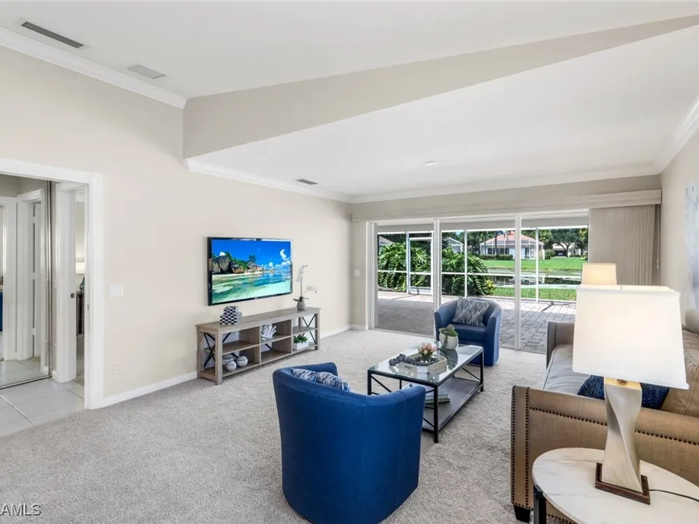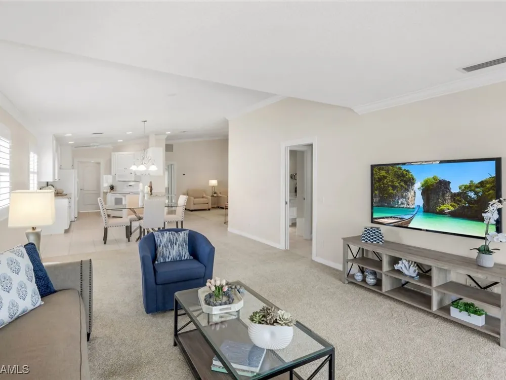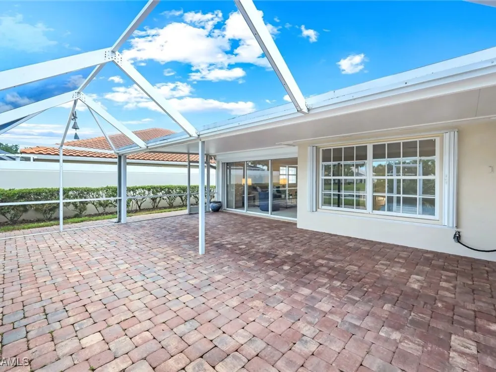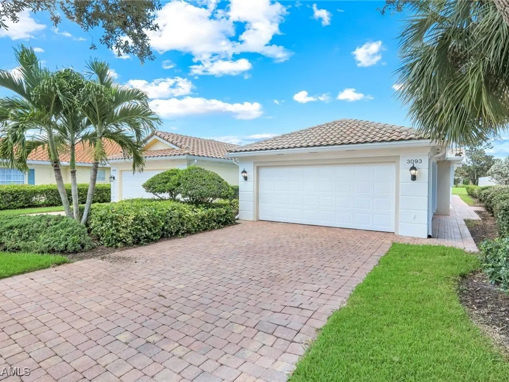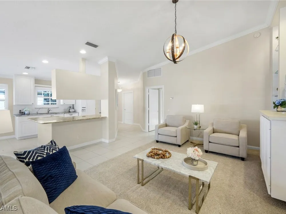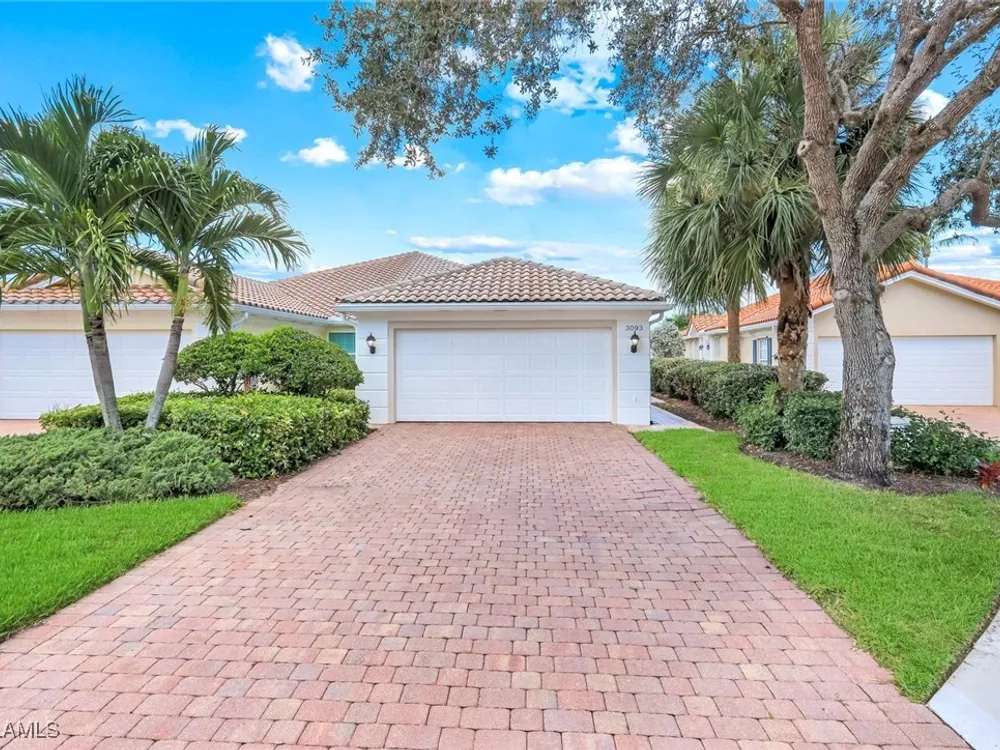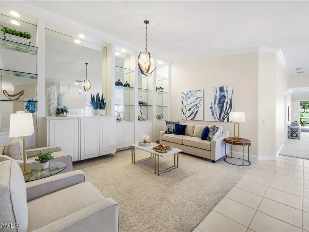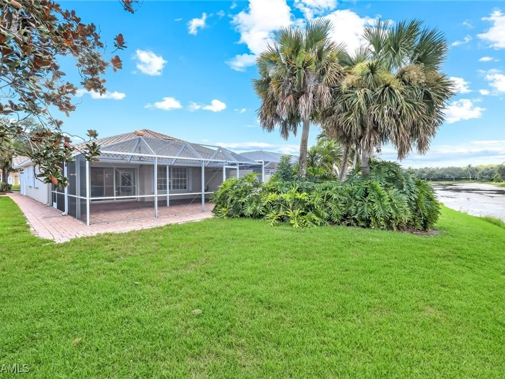 Immaculate Extended Capri Villa with Oversized Lakefront Lanai in Island Walk. This meticulously maintained 2 bedroom plus den, 2 bathroom villa with a 2 car garage is located on a quiet cul-de-sac in the award-winning Island Walk community. A rarely available extended driveway accommodates up to four vehicles, adding both convenience and value. Inside, the home feels bright and welcoming with vaulted ceilings, an open floor plan, and a thoughtful split bedroom layout that balances comfort and privacy. The kitchen is highlighted by granite countertops and ample cabinetry. The primary suite showcases serene lake views and features a spacious walk-in closet, along with a well-appointed bathroom offering dual sinks and a walk-in shower. The versatile guest bedroom includes a murphy bed and desk, making it equally suited for working from home or comfortably hosting overnight visitors. Notable upgrades include a newer A/C, epoxy-finished garage floor, fresh interior paint, wood plantation shutters, and a water filtration system. The home is equipped with both roll-down and accordion storm shutters, providing added protection and peace of mind. The oversized, screened lanai is the true highlight of this home, offering expansive lake views and plenty of space to relax or entertain in a private, tranquil setting. Island Walk is more than a neighborhood, it is a lifestyle. Residents enjoy a guard gated entrance, resort and lap pools, a state-of-the-art fitness center, tennis and pickleball courts, a clubhouse with on-site dining, gas station, car wash, post office, and miles of scenic walking and jogging paths surrounded by lakes and bridges. Perfectly situated in central Naples, this home is just 15 minutes from Vanderbilt Beach, Mercato, shopping, dining, and golf, with easy access to I-75 and only 30 minutes to RSW Airport.