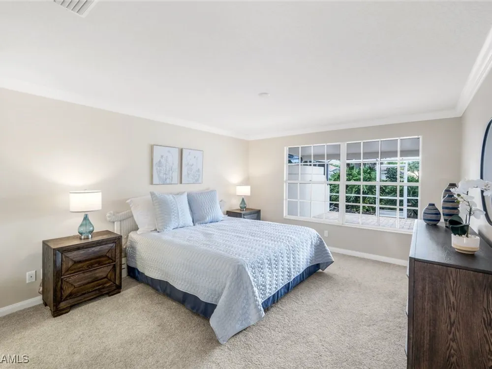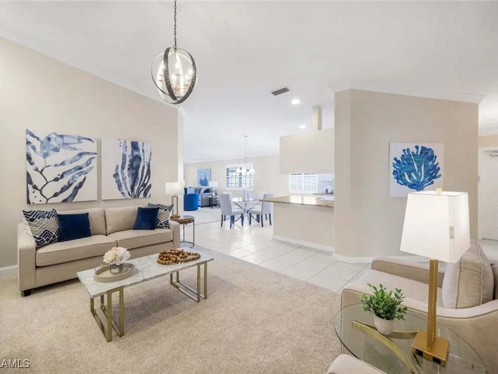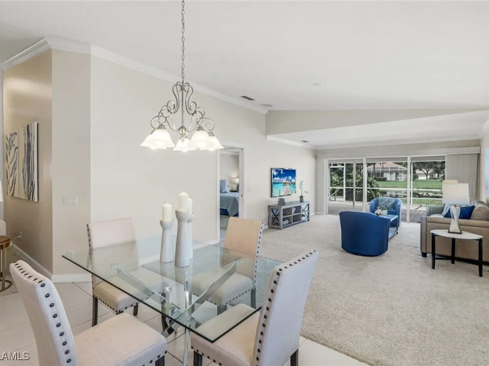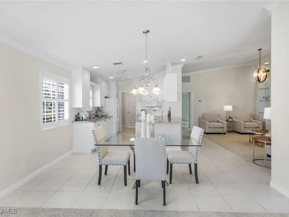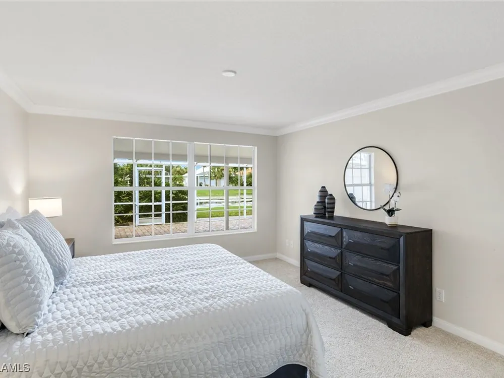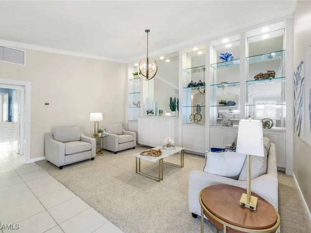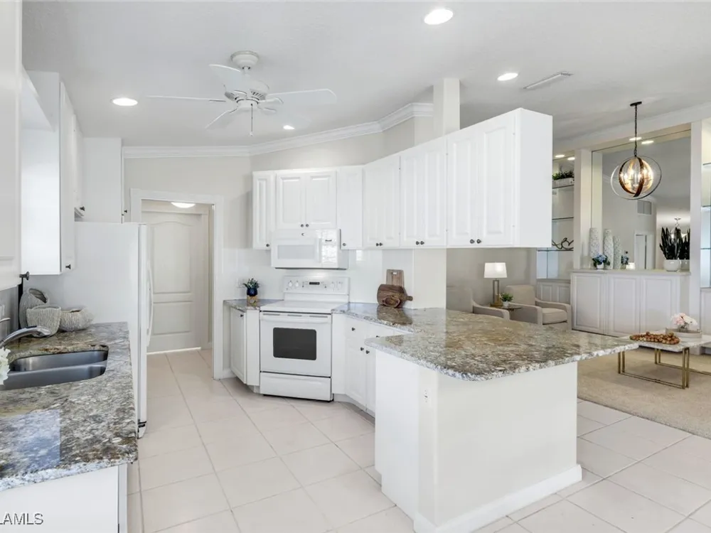Immaculate Extended Capri Villa with Oversized Lakefront Lanai in Island Walk. This meticulously maintained 2 bedroom plus den, 2 bathroom villa with a 2 car garage is located on a quiet cul-de-sac in the award-winning Island Walk community. A rarely available extended driveway accommodates up to four vehicles, adding both convenience and value. Inside, the home feels bright and welcoming with vaulted ceilings, an open floor plan, and a thoughtful split bedroom layout that balances comfort and privacy. The kitchen is highlighted by granite countertops and ample cabinetry. The primary suite showcases serene lake views and features a spacious walk-in closet, along with a well-appointed bathroom offering dual sinks and a walk-in shower. The versatile guest bedroom includes a murphy bed and desk, making it equally suited for working from home or comfortably hosting overnight visitors. Notable upgrades include a newer A/C, epoxy-finished garage floor, fresh interior paint, wood plantation shutters, and a water filtration system. The home is equipped with both roll-down and accordion storm shutters, providing added protection and peace of mind. The oversized, screened lanai is the true highlight of this home, offering expansive lake views and plenty of space to relax or entertain in a private, tranquil setting. Island Walk is more than a neighborhood, it is a lifestyle. Residents enjoy a guard gated entrance, resort and lap pools, a state-of-the-art fitness center, tennis and pickleball courts, a clubhouse with on-site dining, gas station, car wash, post office, and miles of scenic walking and jogging paths surrounded by lakes and bridges. Perfectly situated in central Naples, this home is just 15 minutes from Vanderbilt Beach, Mercato, shopping, dining, and golf, with easy access to I-75 and only 30 minutes to RSW Airport.