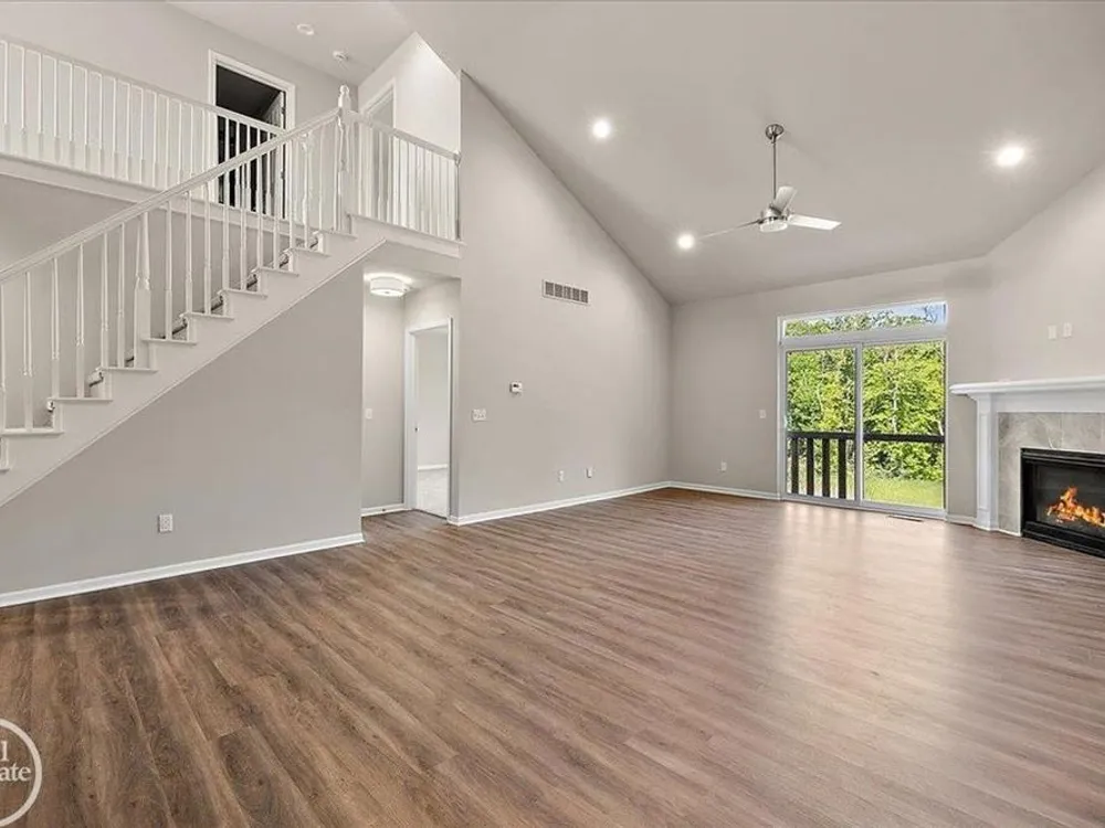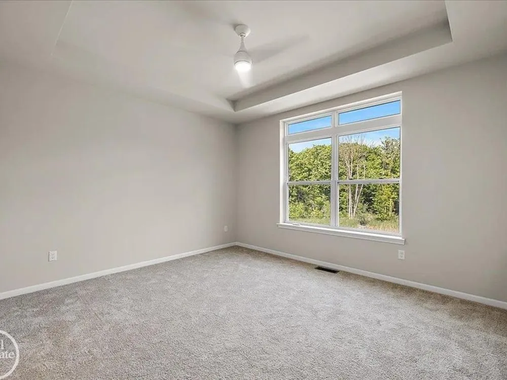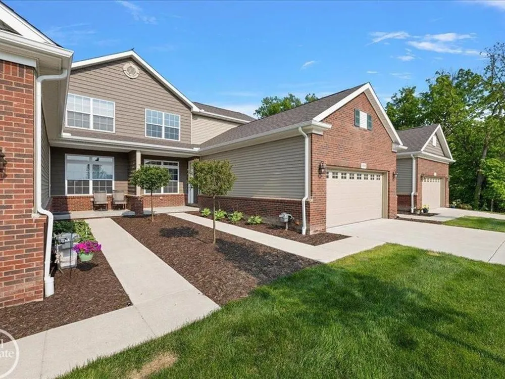 Brand new great room 1 1/2 story condo with finished walkout basement to nature area with 2-story deck; Beautiful wide-plank flooring throughout most of 1st floor; Large 1st floor primary suite with luxury bathroom & large window overlooking nature area; 2nd floor features a 2nd bedroom ensuite plus large open loft; Finished walkout lower level has 3rd full bathroom & open entertaining area; Granite countertops throughout; Designer white cabinetry; Large great room with fireplace & vaulted ceilings. Immediate possession. Stainless Steel appliances. Awesome two-story deck overlooking wetlands. Monthly association includes water; community offers sidewalks walking trails and gazebo, conveniently located near Oakland University; includes a 12-month Standard Builder Warranty.