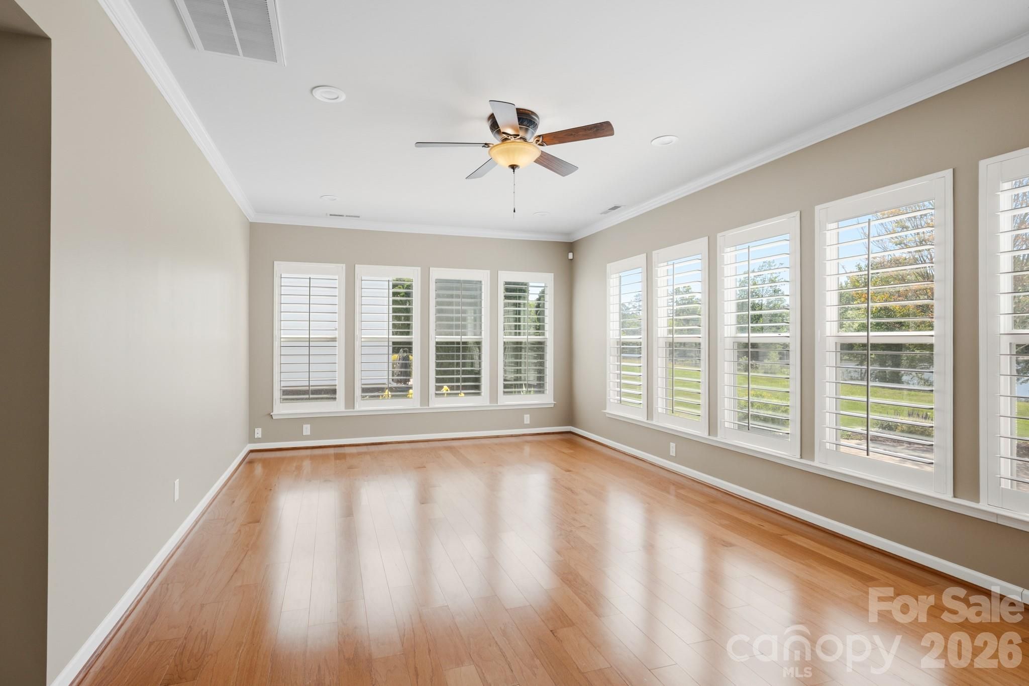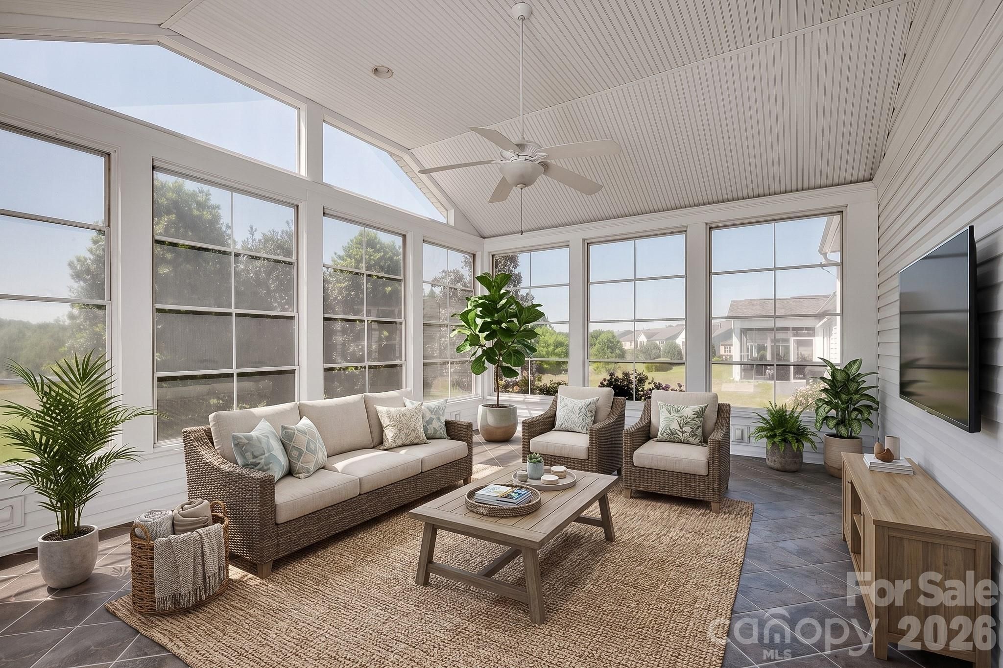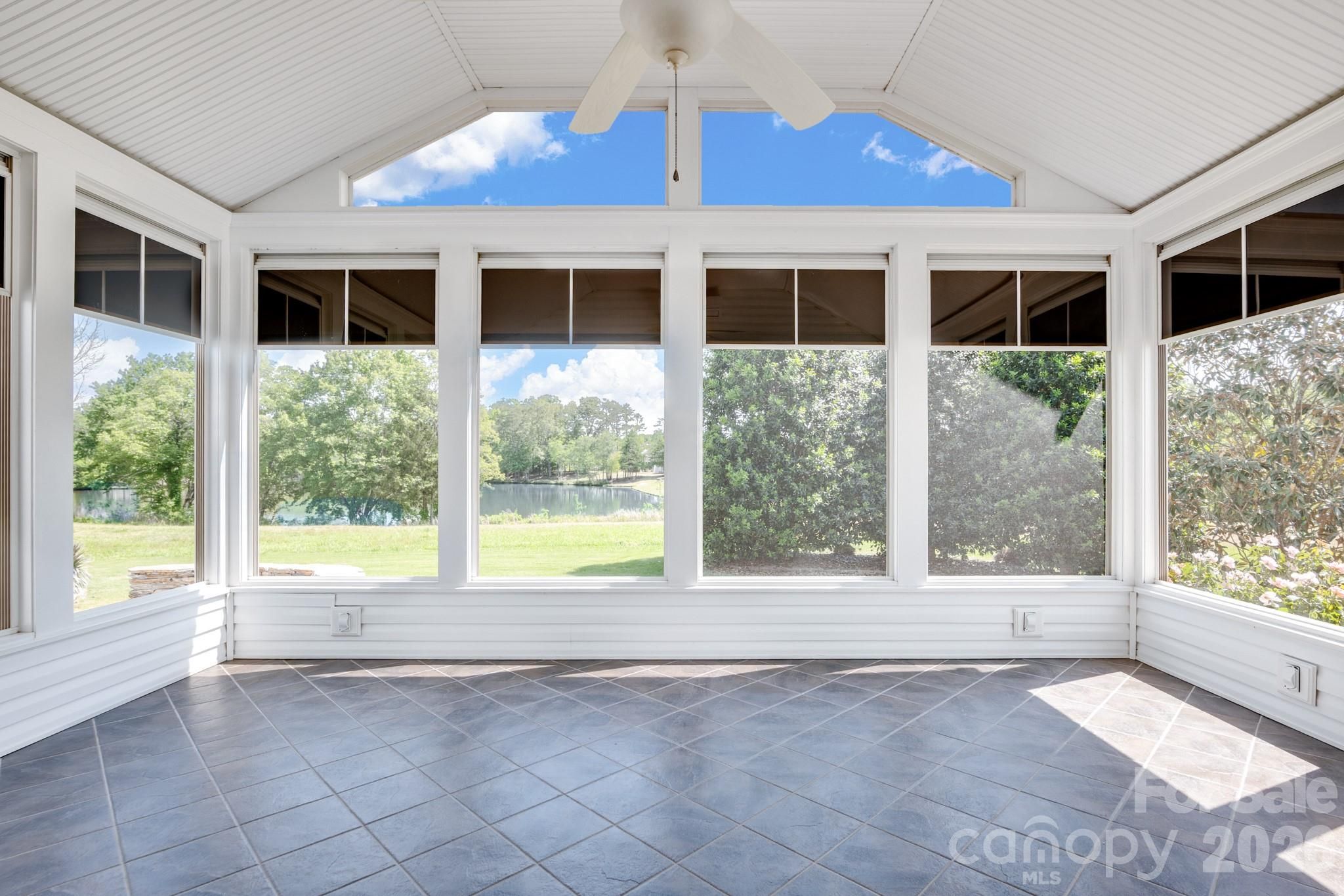 Set within the highly sought-after Sun City Carolina Lakes, this move-in-ready Cumberland Hall model offers refined living with elevated upgrades and exceptional indoor-outdoor spaces - perfectly positioned on a premium homesite that originally commanded a $55,000 lot upgrade, enhancing both lifestyle and long-term value. Enjoy tranquil water views and a desirable location within the community. A landscaped walkway leads to a covered entry and welcoming foyer, highlighted by a contemporary chandelier. Just off the entry, double glass doors open to a private office or study - ideal for remote work or quiet retreat. The open-concept layout is designed for both everyday comfort and entertaining. A bright breakfast area with tray ceiling flows into the well-appointed kitchen featuring a large island, granite countertops, tile backsplash, stainless steel appliances, and gas range with hood. The breakfast bar connects seamlessly to the spacious living and dining areas, where a classic chandelier adds warmth and charm. A sunroom surrounded by windows offers abundant natural light and serene water views, creating a perfect year-round retreat. The private primary suite features a tray ceiling and a well-appointed ensuite with extended dual-sink vanity, built-in vanity space, tiled finishes, and a glass-enclosed walk-in shower. Notable upgrades include crown molding, upgraded wood flooring, tiled baths, plantation shutters, and two additional closets added during construction. The laundry room offers built-in cabinetry and a utility sink. Outdoor living shines with a screened porch featuring EZE-Breeze panels, cathedral ceiling, ceiling fan, and mini-split HVAC, plus an extended paver patio with stone walls and custom landscaping overlooking the water. An extended garage accommodates a golf cart or additional storage. Residents enjoy resort-style amenities including golf, tennis, pickleball, pools, fitness center, and vibrant social clubs.