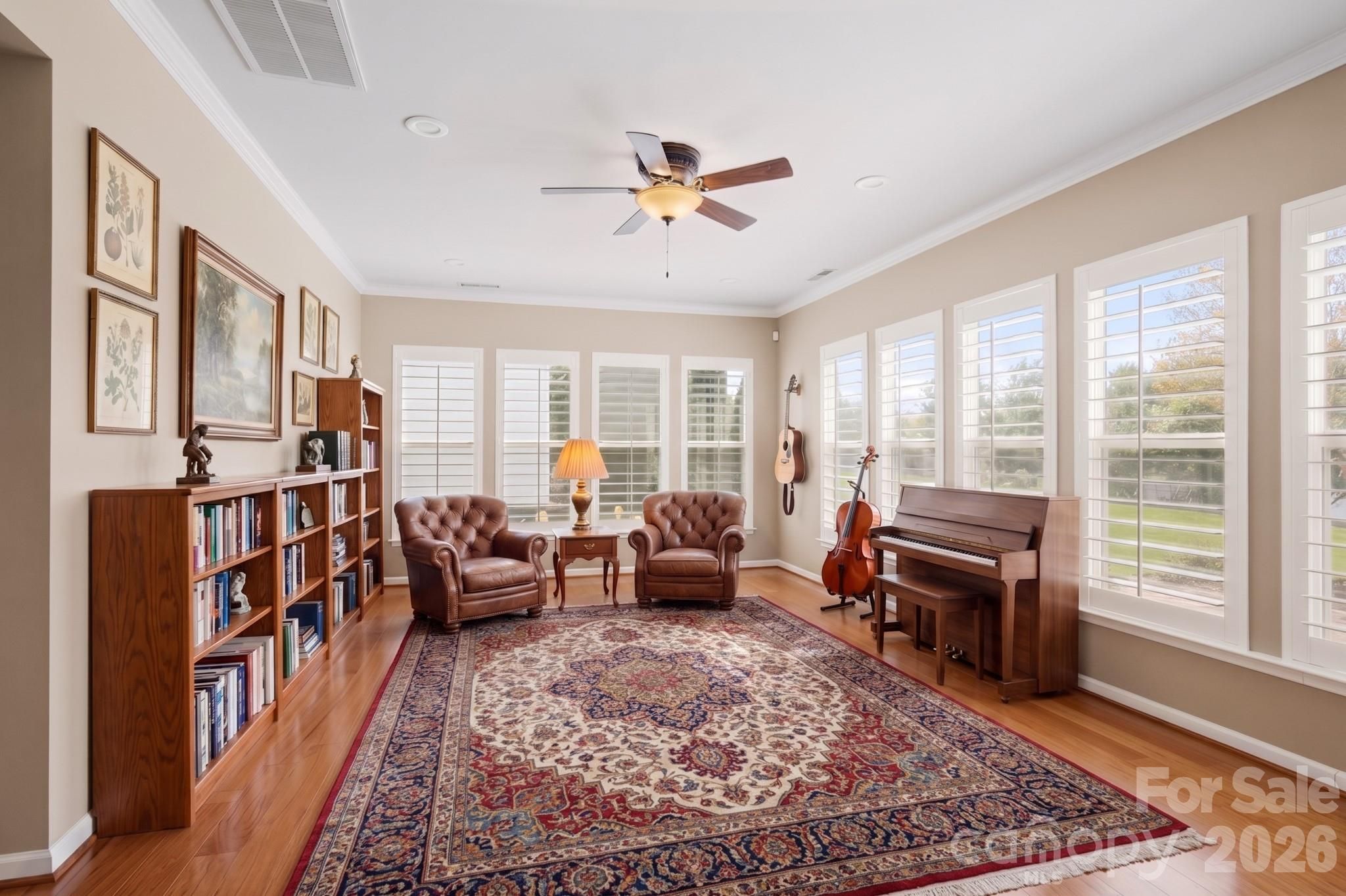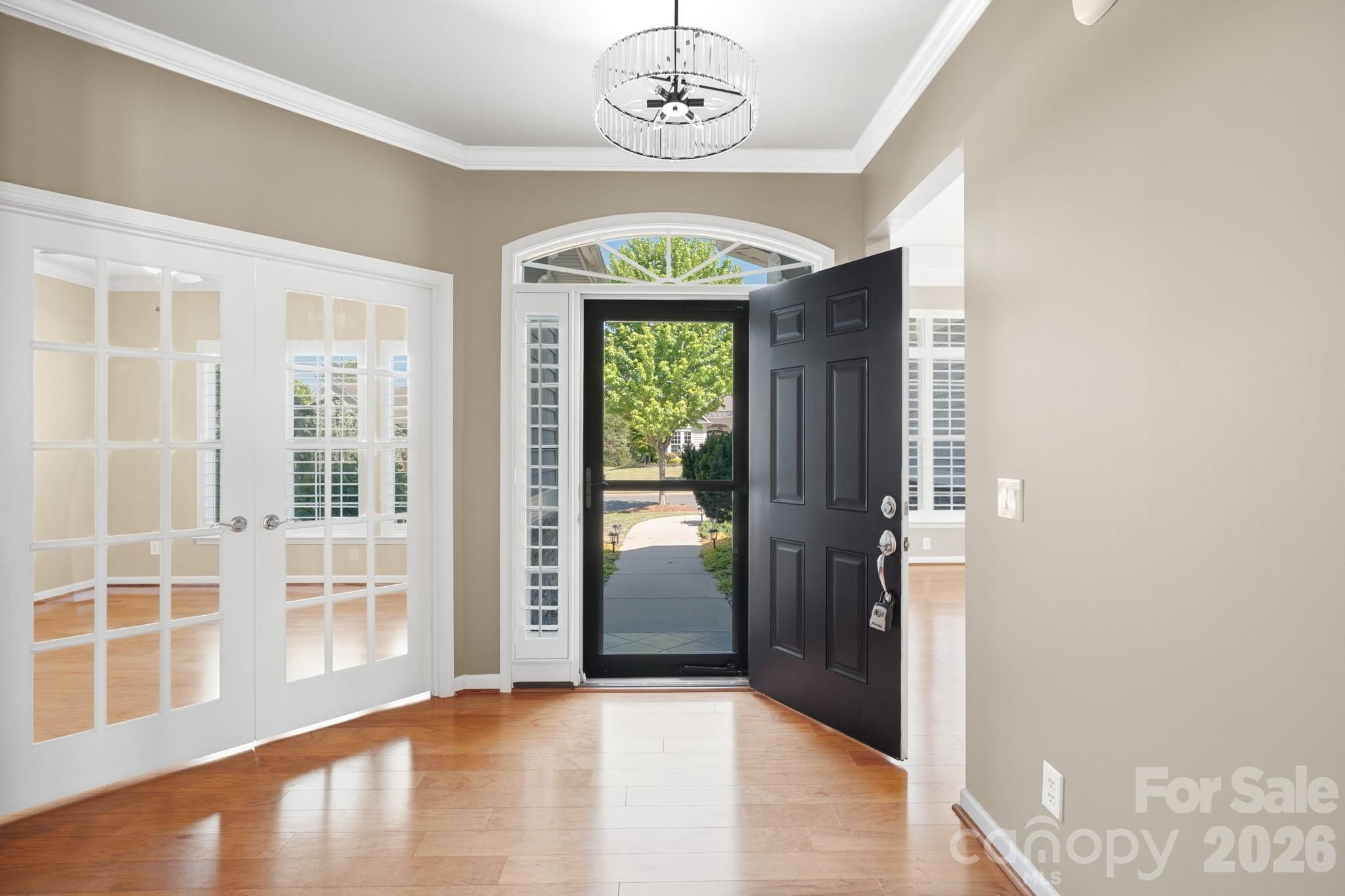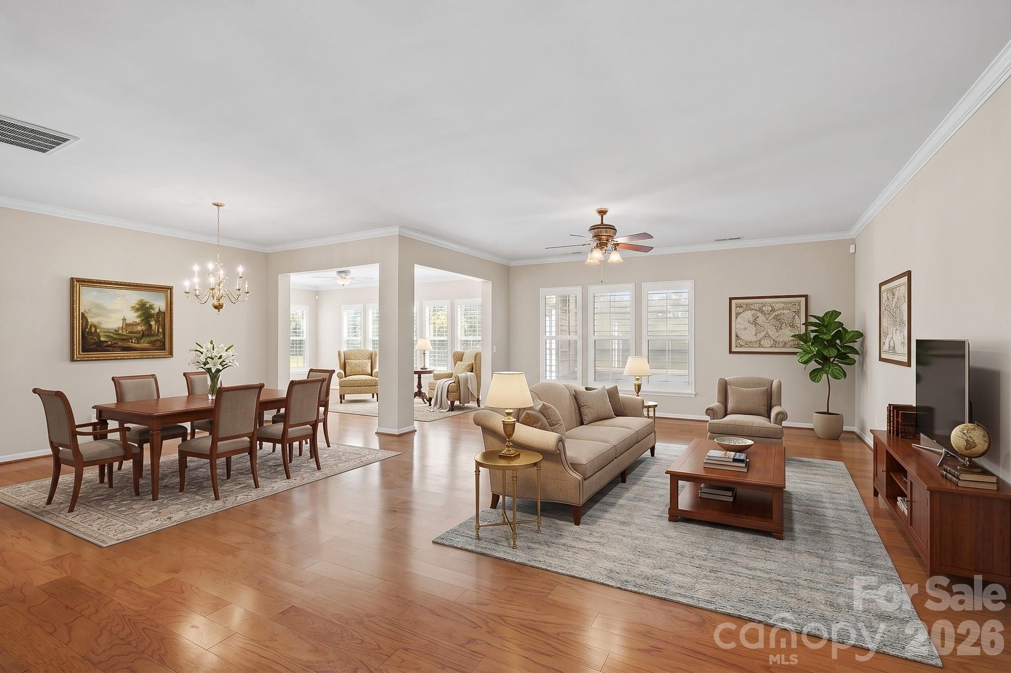 Set within the highly sought-after Sun City Carolina Lakes, this move-in-ready Cumberland Hall model offers refined living with elevated upgrades and exceptional indoor-outdoor spaces - perfectly positioned on a premium homesite that originally commanded a $55,000 lot upgrade, enhancing both lifestyle and long-term value. Enjoy tranquil water views and a desirable location within the community. A landscaped walkway leads to a covered entry and welcoming foyer, highlighted by a contemporary chandelier. Just off the entry, double glass doors open to a private office or study - ideal for remote work or quiet retreat. The open-concept layout is designed for both everyday comfort and entertaining. A bright breakfast area with tray ceiling flows into the well-appointed kitchen featuring a large island, granite countertops, tile backsplash, stainless steel appliances, and gas range with hood. The breakfast bar connects seamlessly to the spacious living and dining areas, where a classic chandelier adds warmth and charm. A sunroom surrounded by windows offers abundant natural light and serene water views, creating a perfect year-round retreat. The private primary suite features a tray ceiling and a well-appointed ensuite with extended dual-sink vanity, built-in vanity space, tiled finishes, and a glass-enclosed walk-in shower. Notable upgrades include crown molding, upgraded wood flooring, tiled baths, plantation shutters, and two additional closets added during construction. The laundry room offers built-in cabinetry and a utility sink. Outdoor living shines with a screened porch featuring EZE-Breeze panels, cathedral ceiling, ceiling fan, and mini-split HVAC, plus an extended paver patio with stone walls and custom landscaping overlooking the water. An extended garage accommodates a golf cart or additional storage. Residents enjoy resort-style amenities including golf, tennis, pickleball, pools, fitness center, and vibrant social clubs.