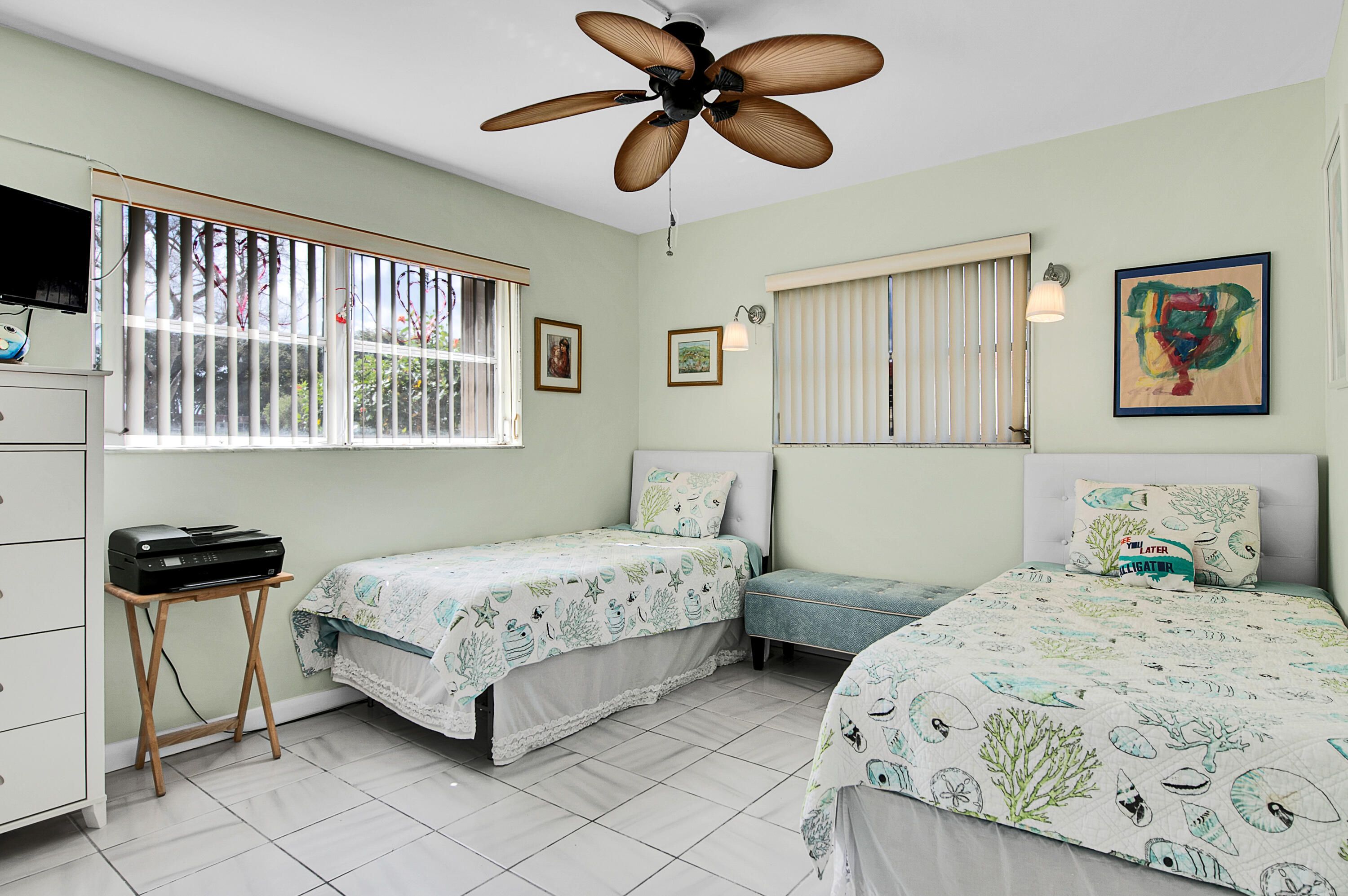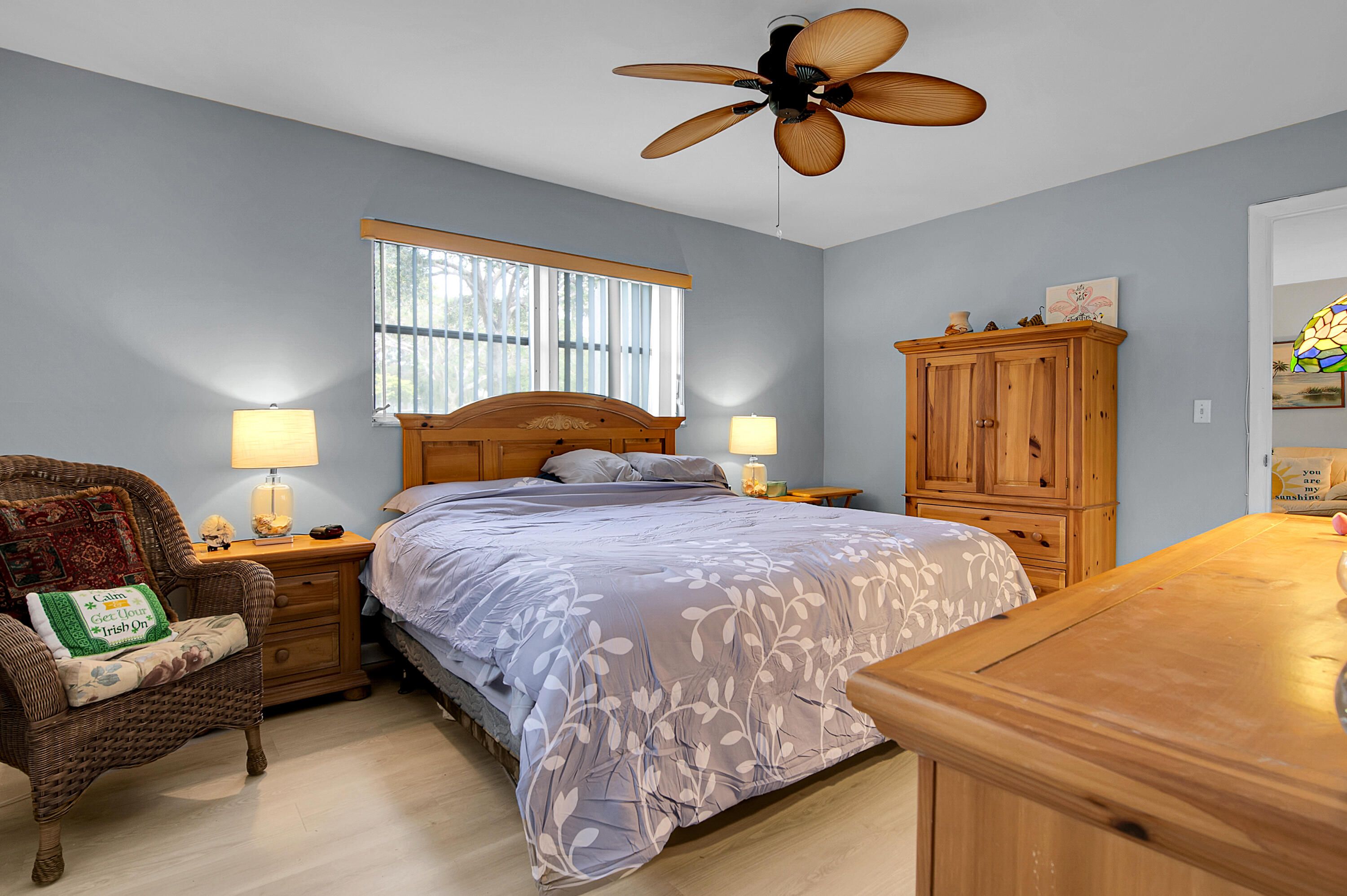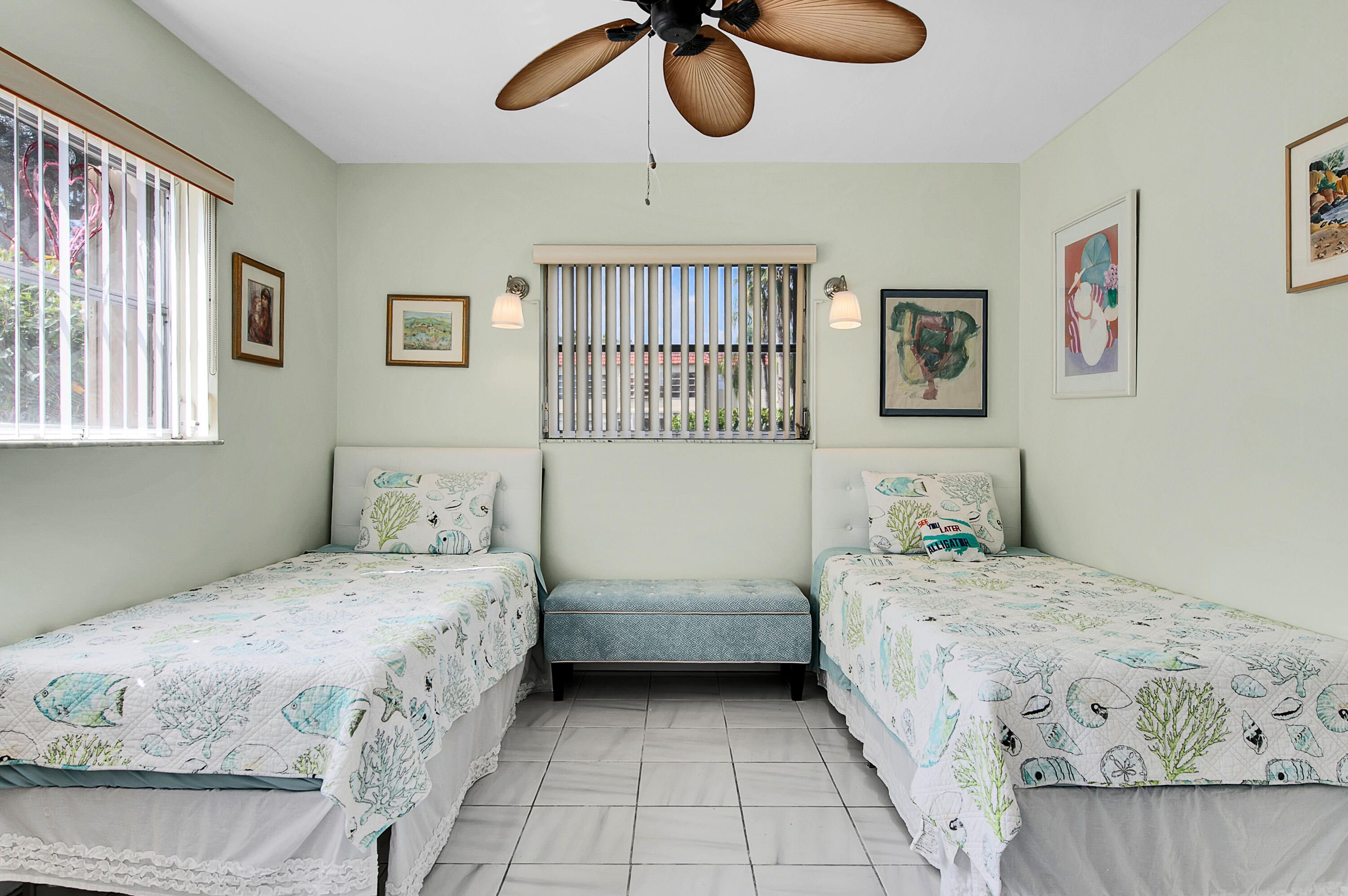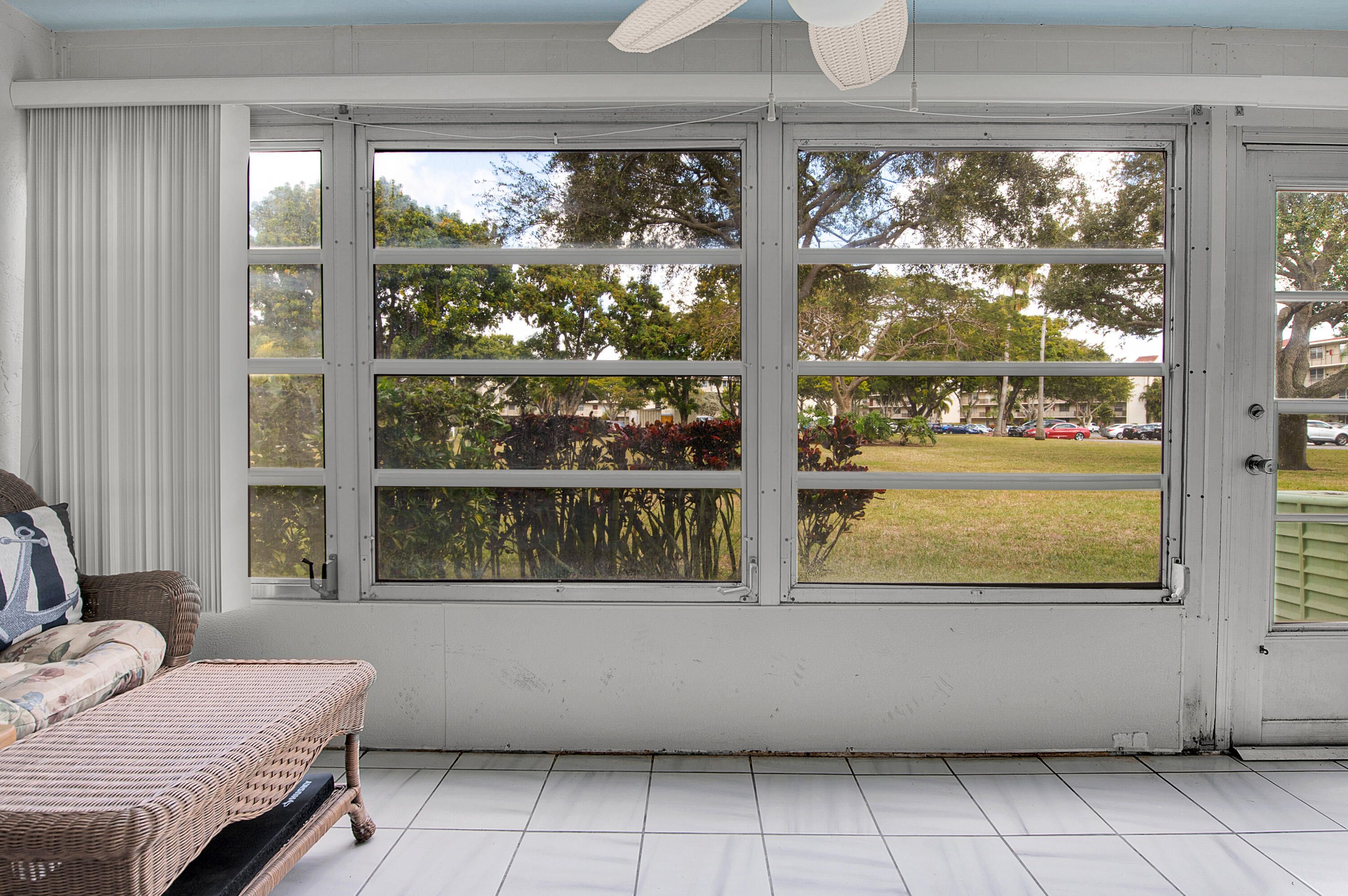 Welcome to this bright and inviting first-floor corner unit in Delray Beach! Offering 2 bedrooms and 2 baths, this beautifully maintained condo is filled with abundant natural light and relaxed coastal charm. The spacious primary suite features new laminate flooring and an updated bath. The second bedroom and its tastefully updated bath feature a hallway door that, when closed, provides guests with their own private suite. Tile & laminate flooring run throughout the condo with no popcorn ceilings, adding to the clean, modern feel. Enjoy peaceful garden views from the enclosed lanai, the perfect spot to unwind on warm Florida evenings. This well-maintained community offers fantastic amenities including two pools (one is heated) and a clubhouse with a fitness room, sauna, billiards, and entertainment, all covered by an affordable monthly maintenance fee that includes water, cable, and internet. Conveniently located near shopping and dining and just 7 miles from the beach, this charming condo combines comfort, privacy, and an unbeatable lifestyle.