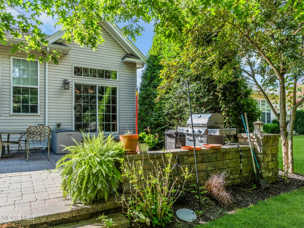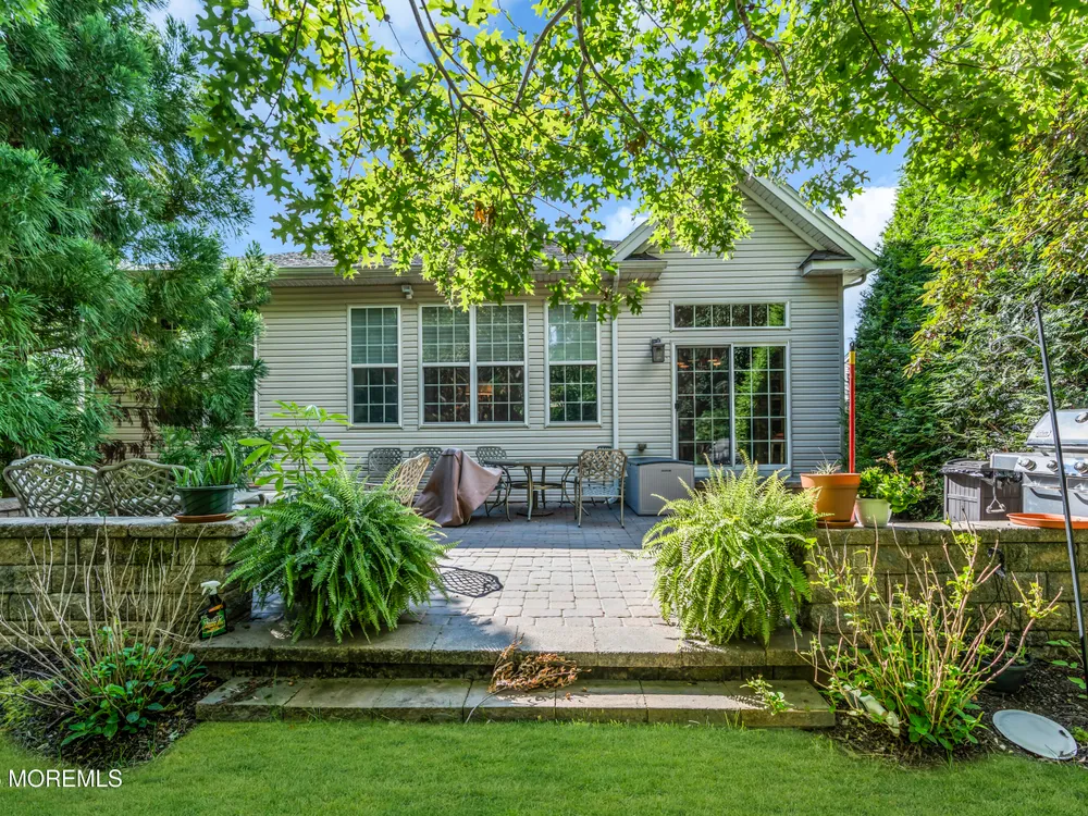 Welcome to this exceptional home in a sought-after Toll Brothers 55+ active adult community, offering elegance, comfort, and a unique floor plan rarely available. This residence boasts a rare finished, fully permitted basement featuring a spacious bedroom, large living area, half bath (plumbed for a shower or a tub), a cedar closet, and tons of storage space—ideal for guests, hobbies, or extended living. The main level showcases timeless craftsmanship with crown moldings, decorative trim, elegant columns, and custom built-ins that elevate every room. Entertain with ease in the open living spaces, or step outside to the beautiful paver patio, perfectly positioned to enjoy serene views of the private wooded backdrop.