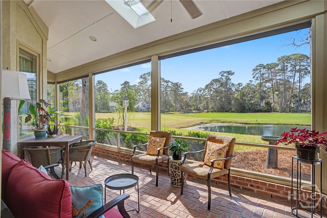 Gorgeous double lagoon and golf course view patio home in Oakridge with 3 bedrooms and 2 ½ baths has everything you want for easy island living. Enjoy the view from a large screen porch that runs the length of the back of the house or sip coffee from your back paver patio. Two-story foyer entrance draws you into abundant light from all of the windows in the great room which draws your eye to the view. The great room flows seamlessly into an updated kitchen and dining room. A study for work or tv watching, half bath for guests, and master suite complete the first floor. The second floor is open to the first floor keeping everything bright. Two bedrooms and a full bath with walk-in attic space can be found upstairs.
