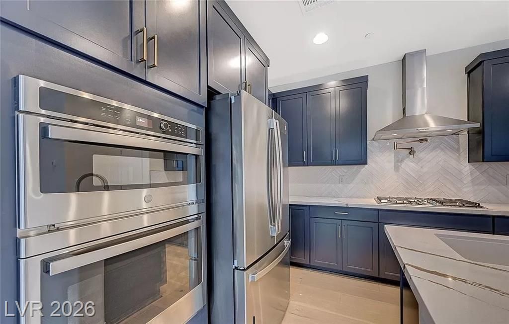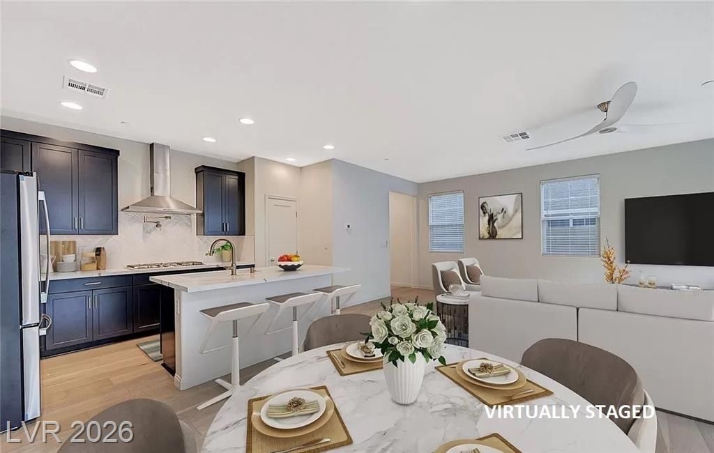 BEST VALUE IN LAKE LAS VEGAS UNDER $500K. MOVE IN READY, NO BUILDER WAIT, SELLER OPEN TO CREDITS. Beautiful 2-story home with open-concept layout, modern finishes, and upgraded hardwood flooring downstairs and a spacious loft. Chef’s kitchen features quartz countertops, large island, stainless steel appliances, navy cabinetry, and a champagne-bronze pot filler. Upstairs primary suite offers mountain views, walk-in closet, and a luxurious super shower. Low-maintenance backyard ideal for relaxing or entertaining. Residents have access to resort-style amenities including pools, fitness center, tennis, pickleball, golf, and a 320-acre lake for water recreation. Close to shopping, dining, and The Village at Lake Las Vegas, this home combines modern style with an active desert-resort lifestyle.