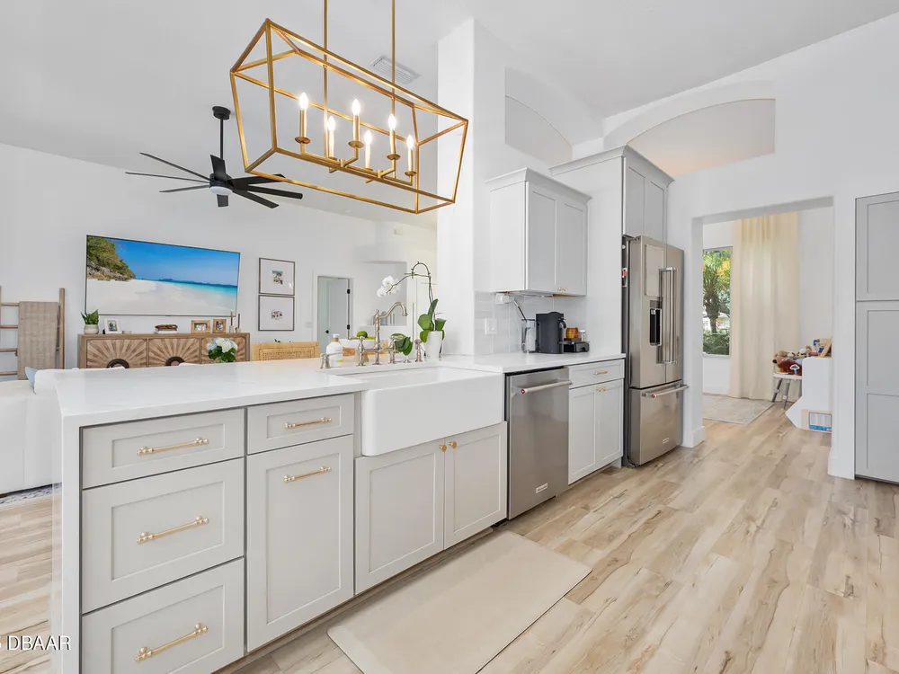 Fully Remodeled Coastal Luxury Home in Breakaway Trails - 31 Circle Creek Way Discover modern coastal living at its finest in this fully remodeled ICI-built residence, ideally positioned in the prestigious gated enclave of Breakaway Trails. Nestled among mature trees and winding streets, this vibrant community offers an exceptional lifestyle with resort-style amenities including a clubhouse, swimming pool, pickleball courts, playground, and extensive nature trails perfect for walking or biking. This 3-bedroom, 2-bathroom, 2,839 sq ft home has been meticulously upgraded from top to bottom, offering a fresh coastal feel and seamless blend of luxury, comfort, and design. Interior Highlights: Gorgeous chef's kitchen featuring waterfall-edge quartz countertops, upgraded stainless steel appliances, rich painted wood cabinetry, and a large peninsula for entertaining. Primary suite offers a relaxing retreat with tray ceilings and a spa-inspired bathroom boasting designer tile, tile floors and custom designer finishes. Luxury vinyl plank flooring throughout the home for durability and style. Vaulted ceilings and open-concept living create an airy, expansive atmosphere. Major System Upgrades: Newer roof (2020) New water heater (2024) Remodeled kitchen and baths Outdoor Oasis: Step outside to your brand-new paver patio, the perfect setting for a fire pit, al fresco dining, or evening gatherings under the stars. The resort-style pool features a waterfall featuresurrounded by a spacious lanai for year-round enjoyment. Additional Features: Oversized 2-car garage with extended depth