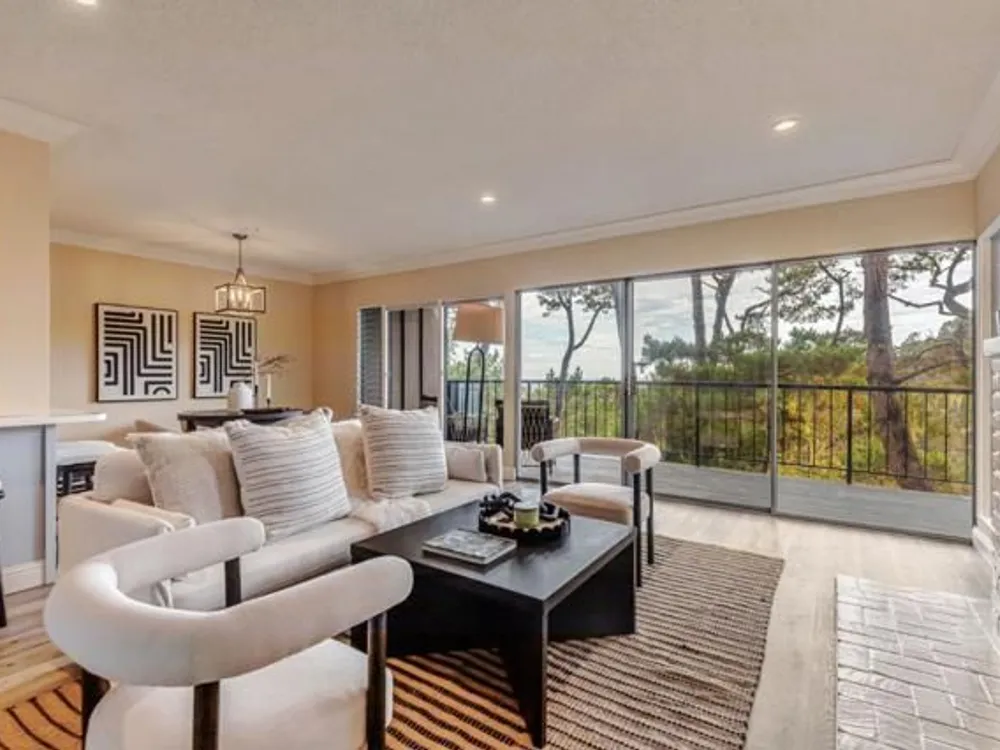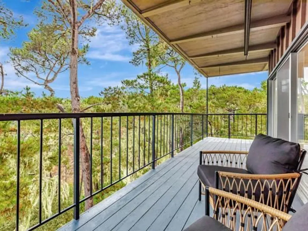 Welcome to 31 Del Mesa Carmel, a rare E-Model retreat with Ocean Views. Discover your private sanctuary in the prestigious Del Mesa Carmel community, where peace, luxury, and panoramic ocean views come together in perfect harmony, making every day feel like a vacation. Step into the light-filled great room, where walls of glass blur the line between indoors and out, immersing you in the surrounding forest and distant ocean vistas. The gourmet kitchen featuring high-end appliances, with sleek countertops, and an open layout ideal for entertaining. It flows seamlessly into the inviting living room, complete with a cozy gas fireplace, custom built-in bookshelves, and a casual dining area. Step outside onto the wrap-around deck to enjoy dramatic sunsets and whispering coastal breezes. Inside, radiant heated luxury vinyl flooring adds warmth and elegance, while both bedrooms offer serene forest views and exceptional privacy. Living at Del Mesa Carmel means more than just a beautiful homeits a lifestyle. Voted the #1 retirement community on the Monterey Peninsula, residents enjoy access to Woodys award-winning restaurant, a well-stocked library, guarded gate, resort-style amenities including a pool, spa, fitness center, lawn bowling, and vibrant social activities.
