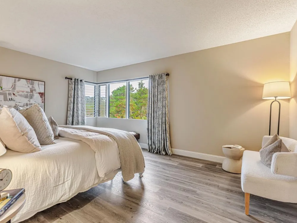 Welcome to 31 Del Mesa Carmel, a rare E-Model retreat with Ocean Views. Discover your private sanctuary in the prestigious Del Mesa Carmel community, where peace, luxury, and panoramic ocean views come together in perfect harmony, making every day feel like a vacation. Step into the light-filled great room, where walls of glass blur the line between indoors and out, immersing you in the surrounding forest and distant ocean vistas. The gourmet kitchen featuring high-end appliances, with sleek countertops, and an open layout ideal for entertaining. It flows seamlessly into the inviting living room, complete with a cozy gas fireplace, custom built-in bookshelves, and a casual dining area. Step outside onto the wrap-around deck to enjoy dramatic sunsets and whispering coastal breezes. Inside, radiant heated luxury vinyl flooring adds warmth and elegance, while both bedrooms offer serene forest views and exceptional privacy. Living at Del Mesa Carmel means more than just a beautiful homeits a lifestyle. Voted the #1 retirement community on the Monterey Peninsula, residents enjoy access to Woodys award-winning restaurant, a well-stocked library, guarded gate, resort-style amenities including a pool, spa, fitness center, lawn bowling, and vibrant social activities.