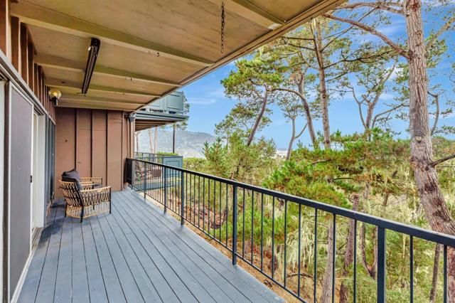 Welcome to 31 Del Mesa Carmel, a rare E-Model retreat with Ocean Views. Discover your private sanctuary in the prestigious Del Mesa Carmel community, where peace, luxury, and panoramic ocean views come together in perfect harmony, making every day feel like a vacation. Step into the light-filled great room, where walls of glass blur the line between indoors and out, immersing you in the surrounding forest and distant ocean vistas. The gourmet kitchen featuring high-end appliances, with sleek countertops, and an open layout ideal for entertaining. It flows seamlessly into the inviting living room, complete with a cozy gas fireplace, custom built-in bookshelves, and a casual dining area. Step outside onto the wrap-around deck to enjoy dramatic sunsets and whispering coastal breezes. Inside, radiant heated luxury vinyl flooring adds warmth and elegance, while both bedrooms offer serene forest views and exceptional privacy. Living at Del Mesa Carmel means more than just a beautiful homeits a lifestyle. Voted the #1 retirement community on the Monterey Peninsula, residents enjoy access to Woodys award-winning restaurant, a well-stocked library, guarded gate, resort-style amenities including a pool, spa, fitness center, lawn bowling, and vibrant social activities.