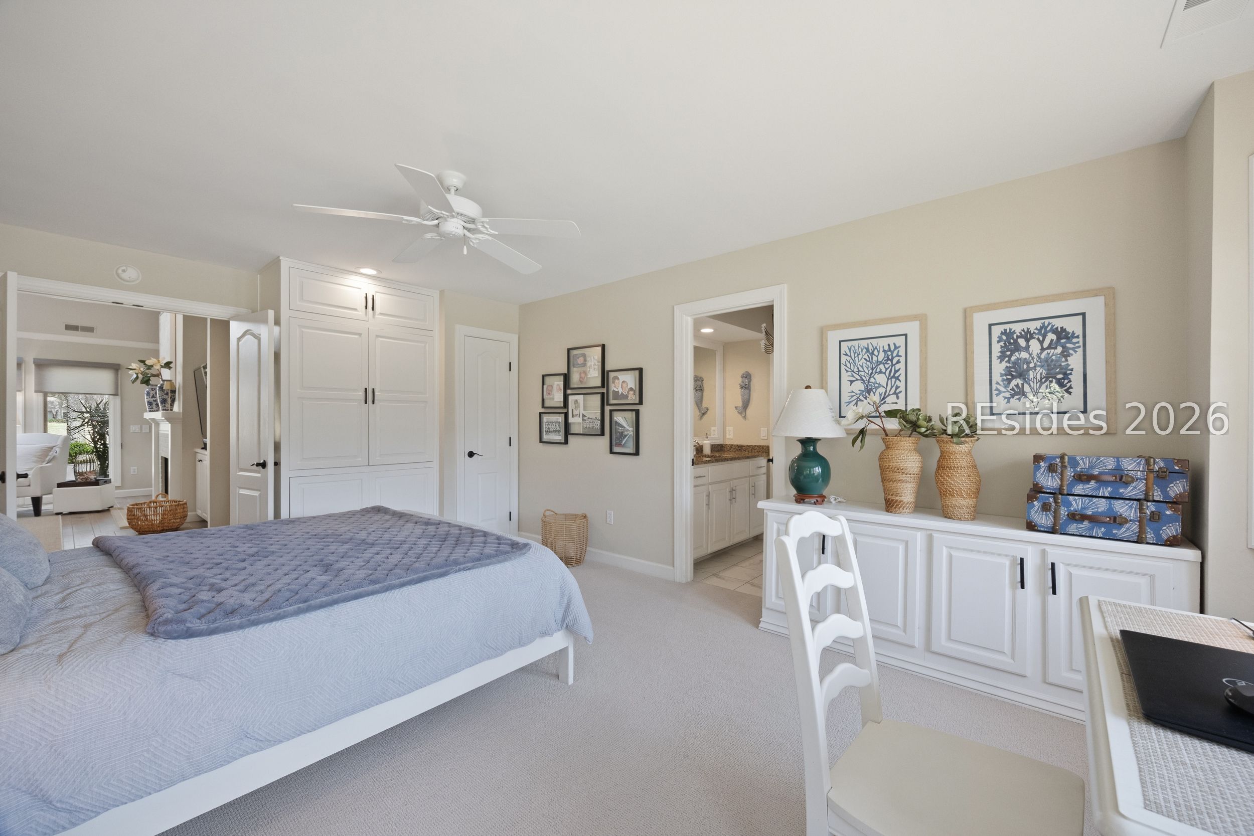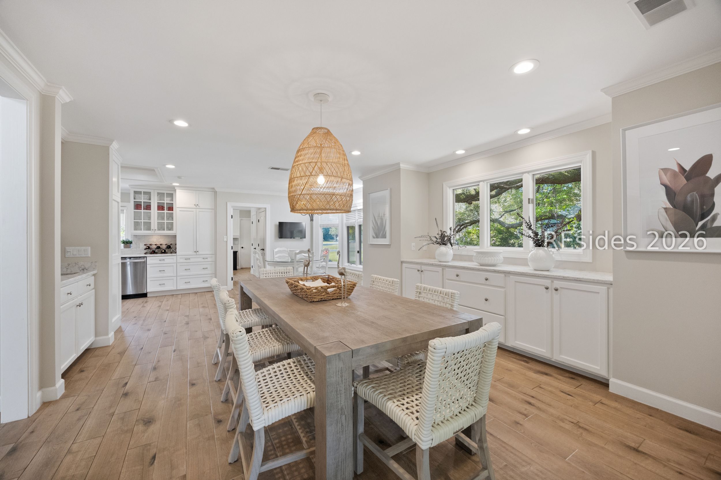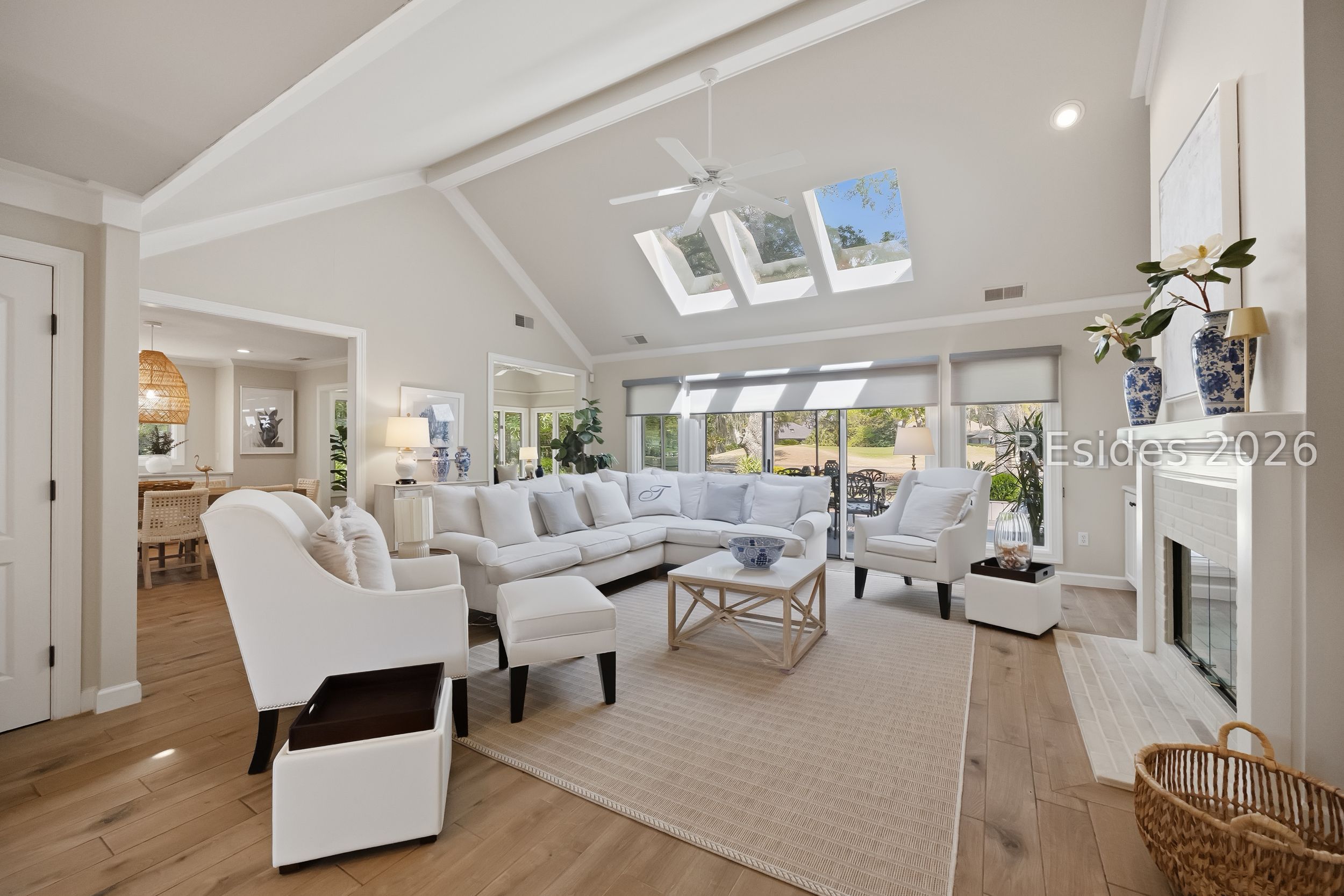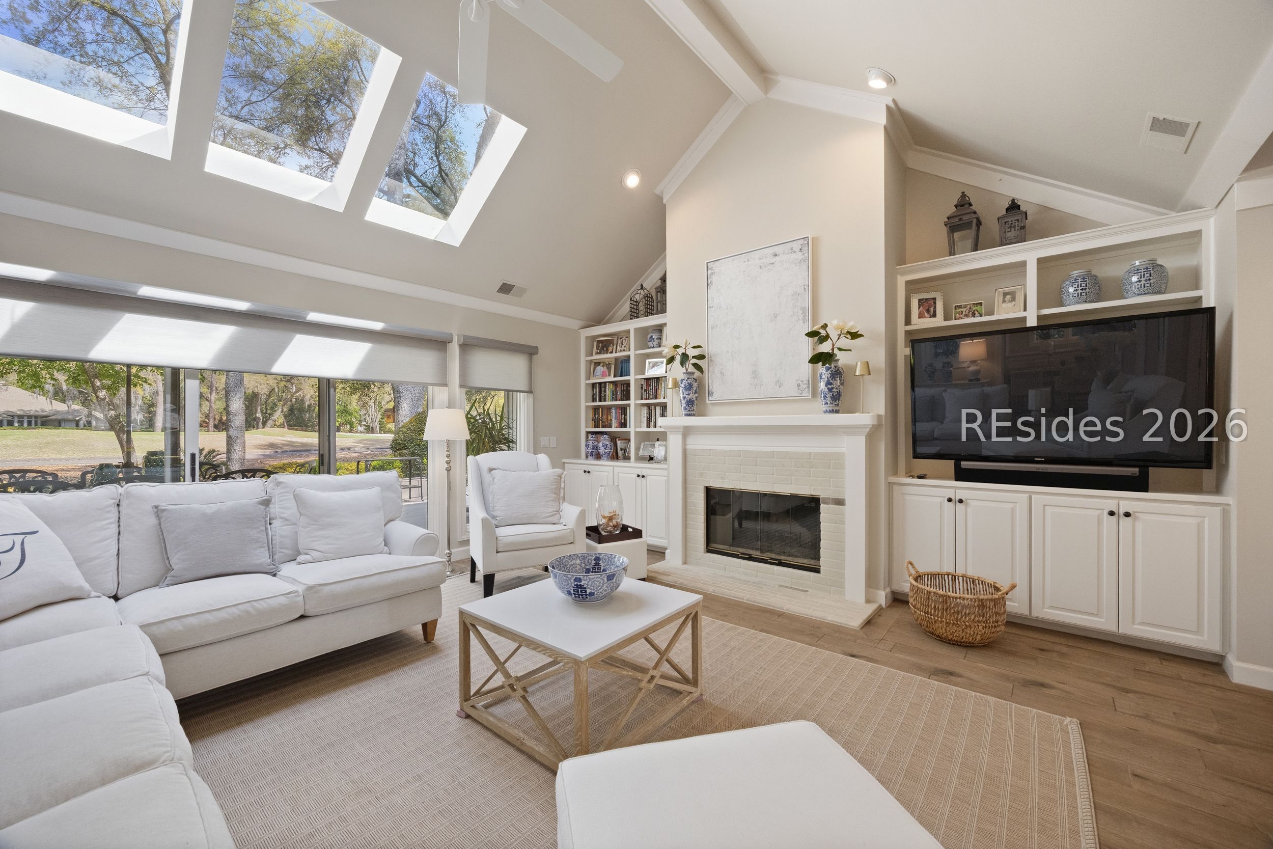 Totally remodeled, turn-key single-level home in Hilton Head Plantation! This 3-bedroom, 2.5-bath property features a 2-car side-entry garage and is ideally located near the amenities of the Country Club of Hilton Head. The updated kitchen showcases quartz countertops, a tile backsplash, gas range, and stainless-steel appliances. The living room offers vaulted ceilings, abundant windows for an open and airy feel, along with built-ins and a fireplace. A Carolina room provides additional living space, perfect for relaxing or entertaining. Enjoy picturesque views of the 17th green of the Country Club of Hilton Head course. The primary suite features a tray ceiling, walk-in closet, and a beautifully updated bath with double vanities and a walk-in shower. Additional highlights include crown molding throughout, new carpeting, a garage workstation, and a private cul-de-sac setting. Residents of Hilton Head Plantation enjoy exceptional amenities including four golf courses, a full-service marina, tennis and pickleball courts, leisure trails, multiple pools, Dolphin Head Recreation Area, waterfront park, and 24-hour gated security. Low-maintenance, move-in ready living ideal for a primary residence or retirement home.