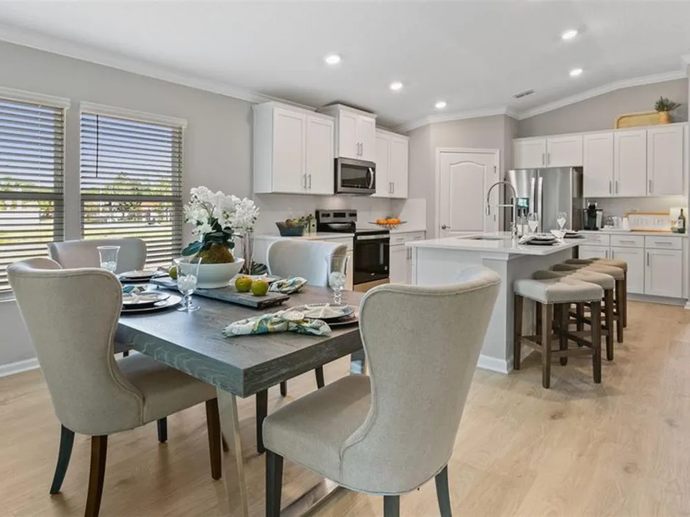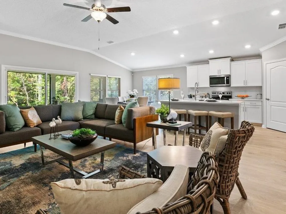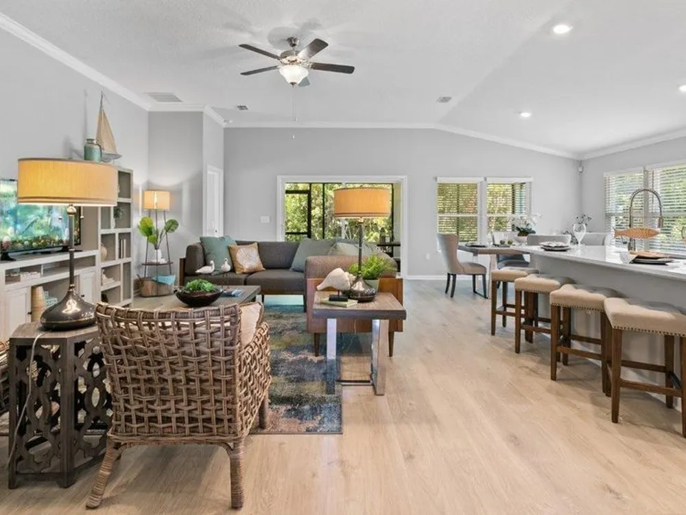Under Construction. DECEMBER MOVE-IN! SPECIAL FINANCING available, call for more information!! The Dalton is a well-designed single-story floor plan available in communities throughout North Florida, offering low maintenance living tailored for the 55+ homeowner. With a two-car garage and three exterior elevations to choose from, buyers can select the architecture that best suits their style. At 1,986 square feet, the Dalton features energy efficient construction features with three bedrooms plus a versatile flex room. This single-level layout provides the ease of no stairs making it ideal for everyday living and entertaining family and friends. Inside, the Dalton features open-concept living, highlighted by a spacious kitchen with a large center island, quartz countertops, and designer cabinetry. The main suite includes vaulted ceilings, a dual comfort-height vanity, an oversized walk-in shower, and a spacious walk-in closet. The large screened-in lanai enhances the Florida lifestyle by allowing you to enjoy the outdoors year-round with an extension of your entertaining space right off the living room.