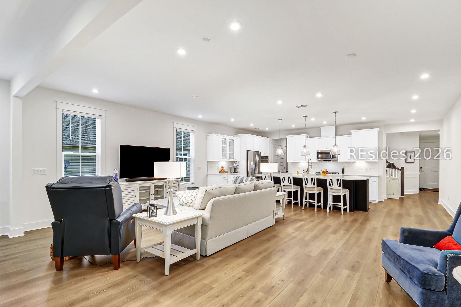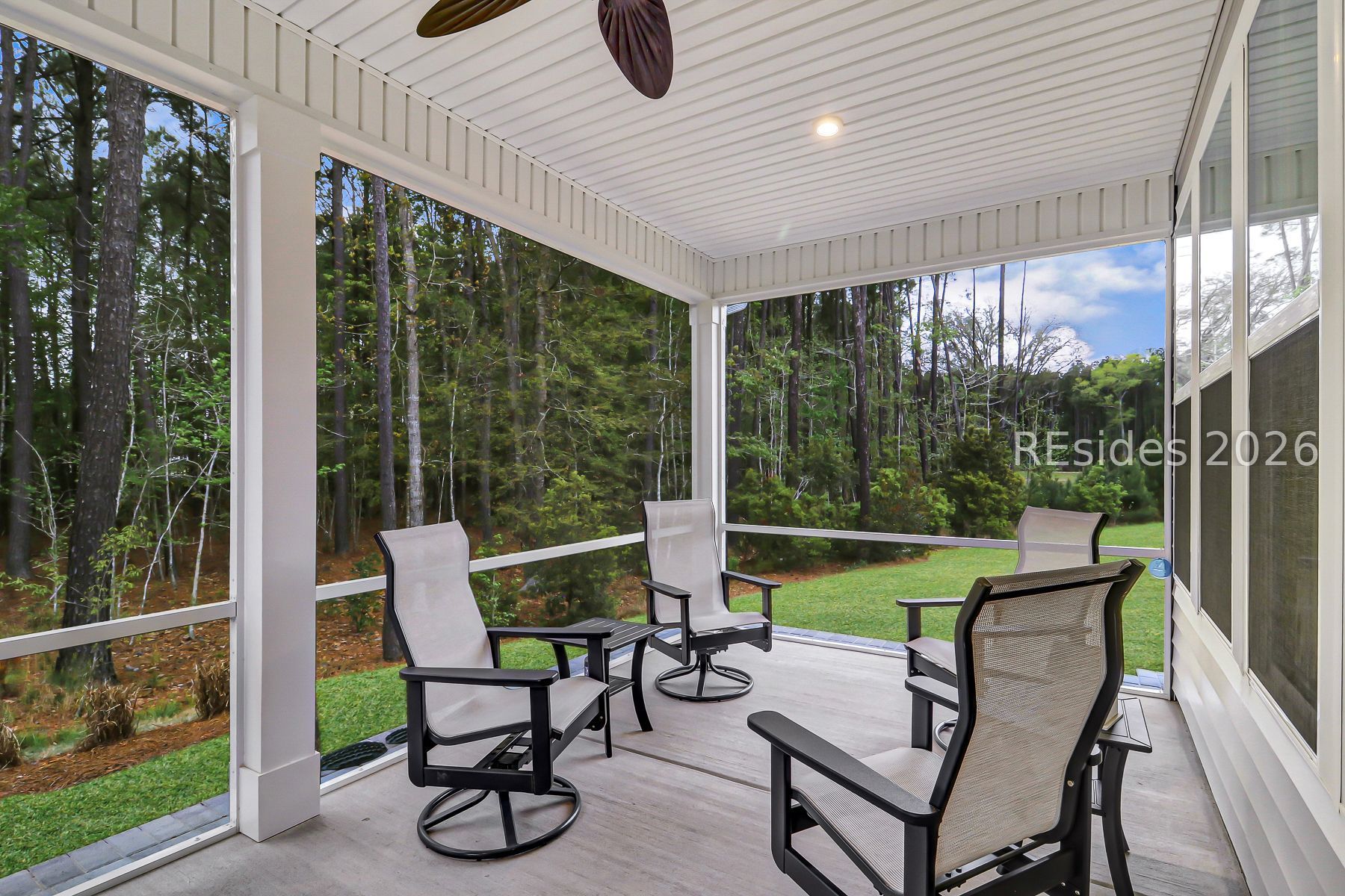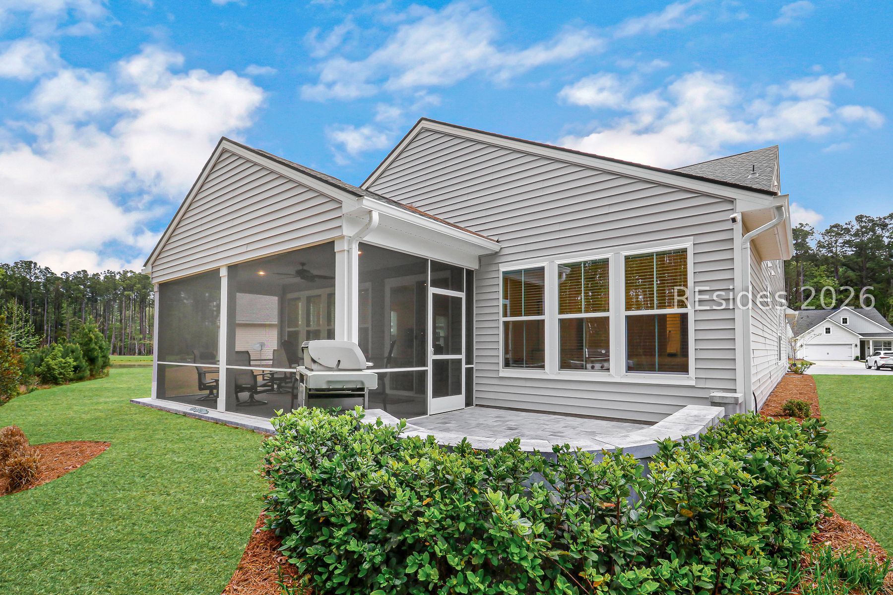 Compare this exceptional home, and you'll quickly appreciate its outstanding value. The Donegal model with loft has been thoughtfully upgraded to an extended version, offering additional space and comfort. Situated on a premium pie-shaped homesite in a quiet cul-de-sac, the property features a protected wooded backdrop with a distant lagoon view-providing maximum privacy and a serene setting. The kitchen features upgraded appliances and quartz countertops and opens to the expansive great room, while a custom screened porch leads to a paver patio, creating the perfect space for barbecuing and entertaining. A whole-house Generac generator, used only briefly, adds comfort and peace of mind, ensuring you're always prepared. Upstairs, the bonus room offers incredible flexibility, ideal for couples seeking two separate living areas, as well as a private guest suite complete with its own bedroom and bathroom. The home's prime location provides easy access to both the community gate and clubhouse. Four Seasons has truly delivered on what today's buyers are looking for in amenities and lifestyle. Conveniently located just five minutes from shopping and only a quick 30-minute drive to both Hilton Head and Savannah, this home combines luxury, location, and value.