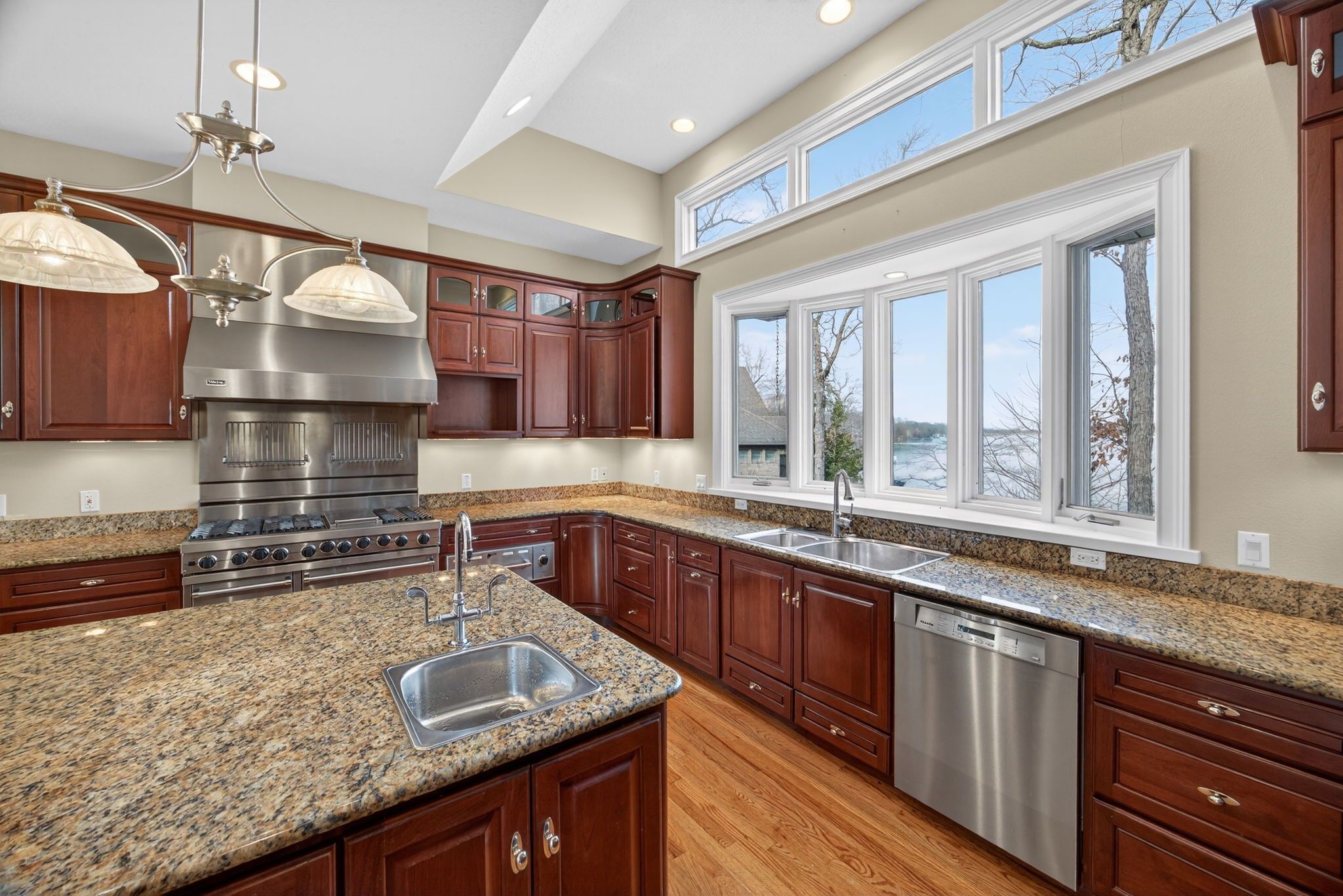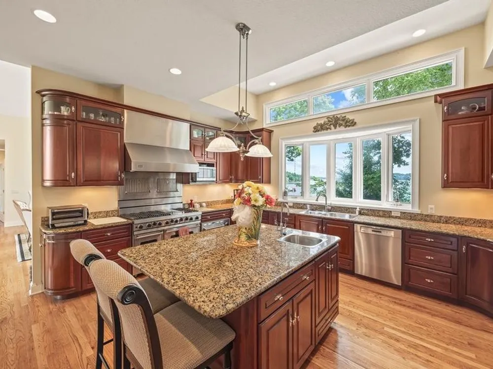 This custom-built home on Lake Dartmoor in Fairfield Glade Resort offers stunning lake views from nearly every room and was designed with quality, function, and comfort in mind. The main level features a formal living room, professional-grade kitchen with Viking 6-burner gas range, double ovens, built-in refrigerator, warming drawer, oversized pantry, and a large island perfect for entertaining. The formal dining room and family room overlook the lake, and the expansive primary suite includes dual vanities, a low-barrier tiled shower, jacuzzi tub, and two walk-in closets. Additional main-level spaces include a hobby room, library/office with built-in bookshelves, laundry room, oversized two-car garage, and a full-length deck to take in the view. The walk-out lower level offers three bedrooms, a kitchenette, second laundry room, sitting area, massive underground storage, and a storm shelter large enough to double as a sleeping area. Mature landscaping surrounds the mostly level, walkable yard, and the newly upgraded boat dock adds to the ease of lakeside living. Lovingly maintained by the original owner, this home blends high-end features and thoughtful design in a peaceful, resort setting.