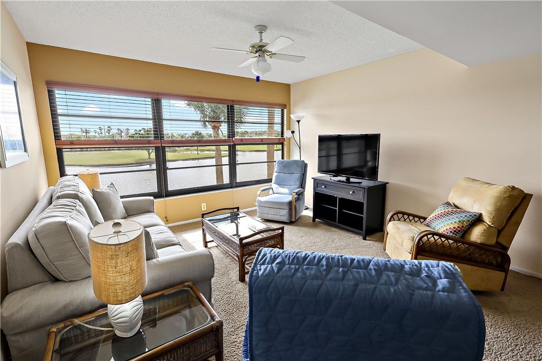 LOCATION! Step down from your condo to grill at the BBQ, then cool off in heated pool—Florida living made easy! Furnished turnkey gem! Move-in or rent-ready from day one. PRIME location w/ strong rental appeal. Enjoy stunning lake/golf course views from living area & primary suite—exactly what seasonal renters are looking for! Spacious primary w/walk-in closet & walk-in shower. Boasts washer/dryer in-unit/impact windows/covered parking. Public golf course/driving range/pro shop add to the lifestyle & tenant demand! Low-maintenance ownership-perfect as personal getaway or investment property.