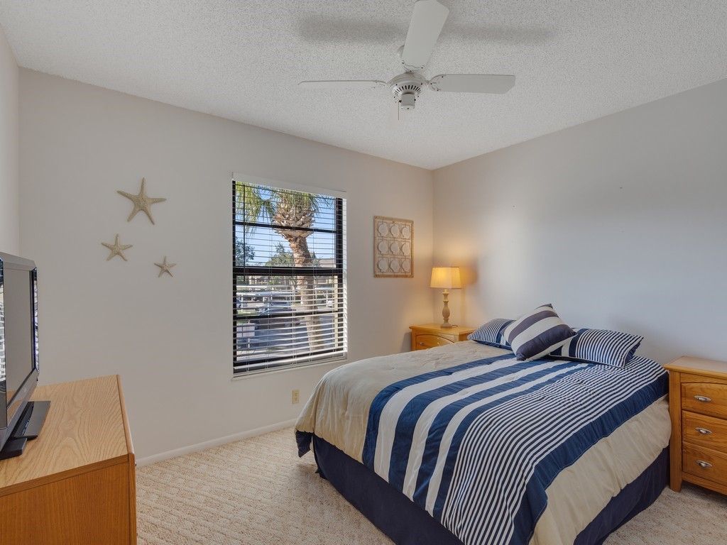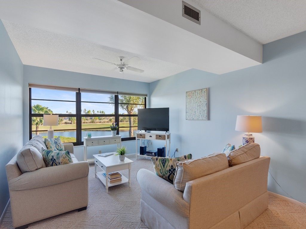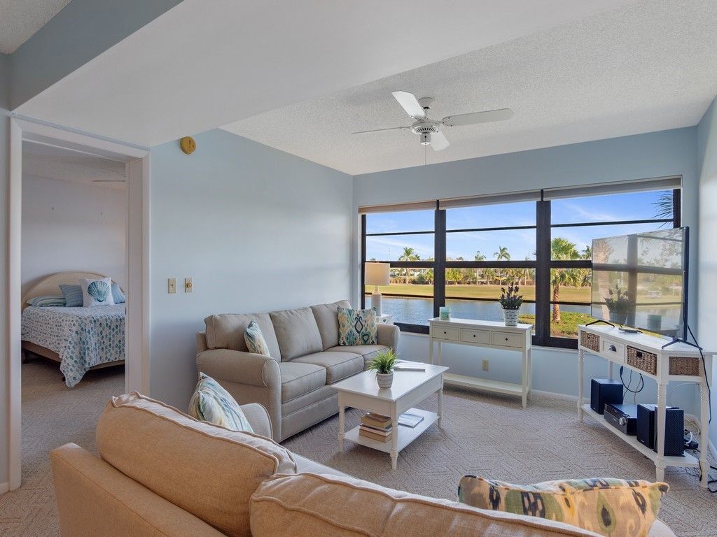 Bringing you the Florida lifestyle in this turnkey 2-bd/2ba unit providing both lake views with waterfowl activity plus golf course views from a safe distance! Enjoy viewing sunrises over the pond with your cup of coffee in the fully furnished unit with neutral color palette. Weather or not, your covered carport space is ideally located next to the walkway and only a short walk to the unit. Desirable in-unit W/D, split bedrooms with plenty of closet space. A Great Value! Very short walk to the community pool, picnic & BBQ area. Short drive to Vero's main shopping district and restaurant area.