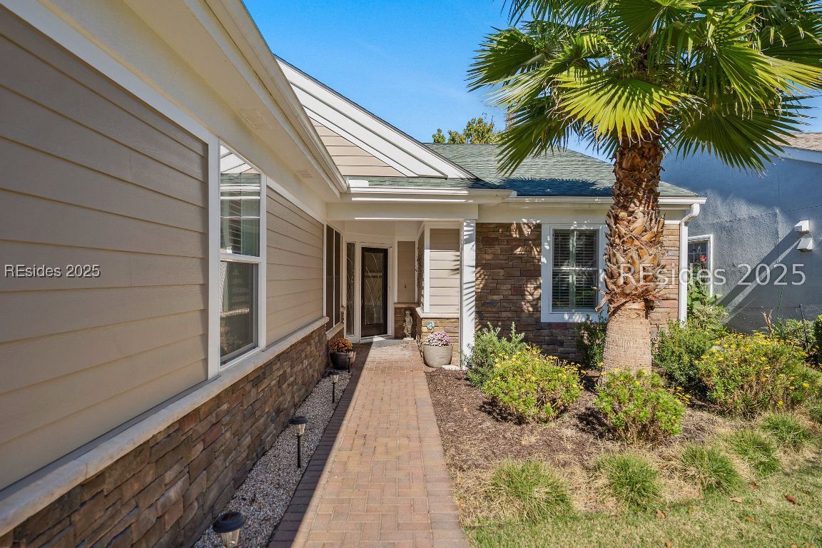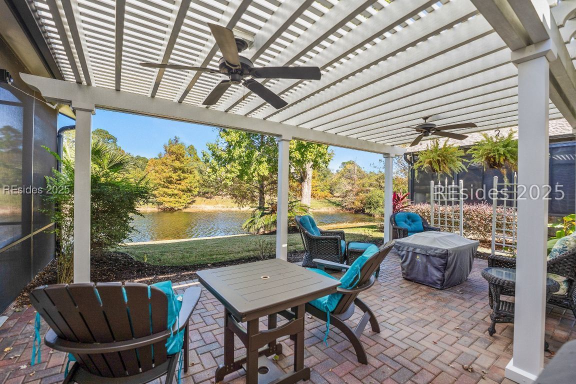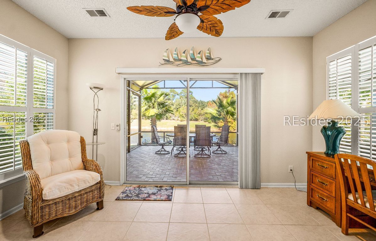 Stunning Lagoon-View Home in Sun City Hilton Head - Over $100K in Upgrades! Welcome to this beautifully updated 2-bedroom, 2-bath Egret model with an office and Carolina room, perfectly situated on a private lagoon lot in the highly sought-after Sun City Hilton Head community. Every inch of this home has been thoughtfully enhanced with over $100,000 in upgrades, offering comfort, quality, and style. Inside, enjoy engineered hardwood floors throughout and an open, inviting layout. The gourmet kitchen features leathered granite countertops, upgraded stainless steel appliances, and a cozy breakfast nook, along with a separate dining area for entertaining. The primary suite is a true retreat with a totally remodeled bathroom showcasing a huge walk-in shower, tall counters, and new cabinetry.An automated shade on the double window adds convenience and a touch of luxury. The office with built-in shelving provides the perfect workspace or reading area.Enjoy effortless indoor-outdoor living with a 16' x 16' screened lanai and a newly installed 24' x 15' pergola patio, ideal for relaxing or hosting guests. The oversized two-car garage features epoxied floors, offering both durability and style. The garage also features a fully retractable screened door making it a great work space or fitness area, or rec room. The front door features a retractable built in screen door. Outside, the home shines with new Hardiplank siding and stone accents, replacing the original stucco for added beauty and peace of mind. This property combines elegant design, thoughtful upgrades, and serene lagoon viewsall in the heart of one of the Lowcountry's premier active adult communities. Experience luxury living in Sun City Hilton Head when you schedule your private showing today!