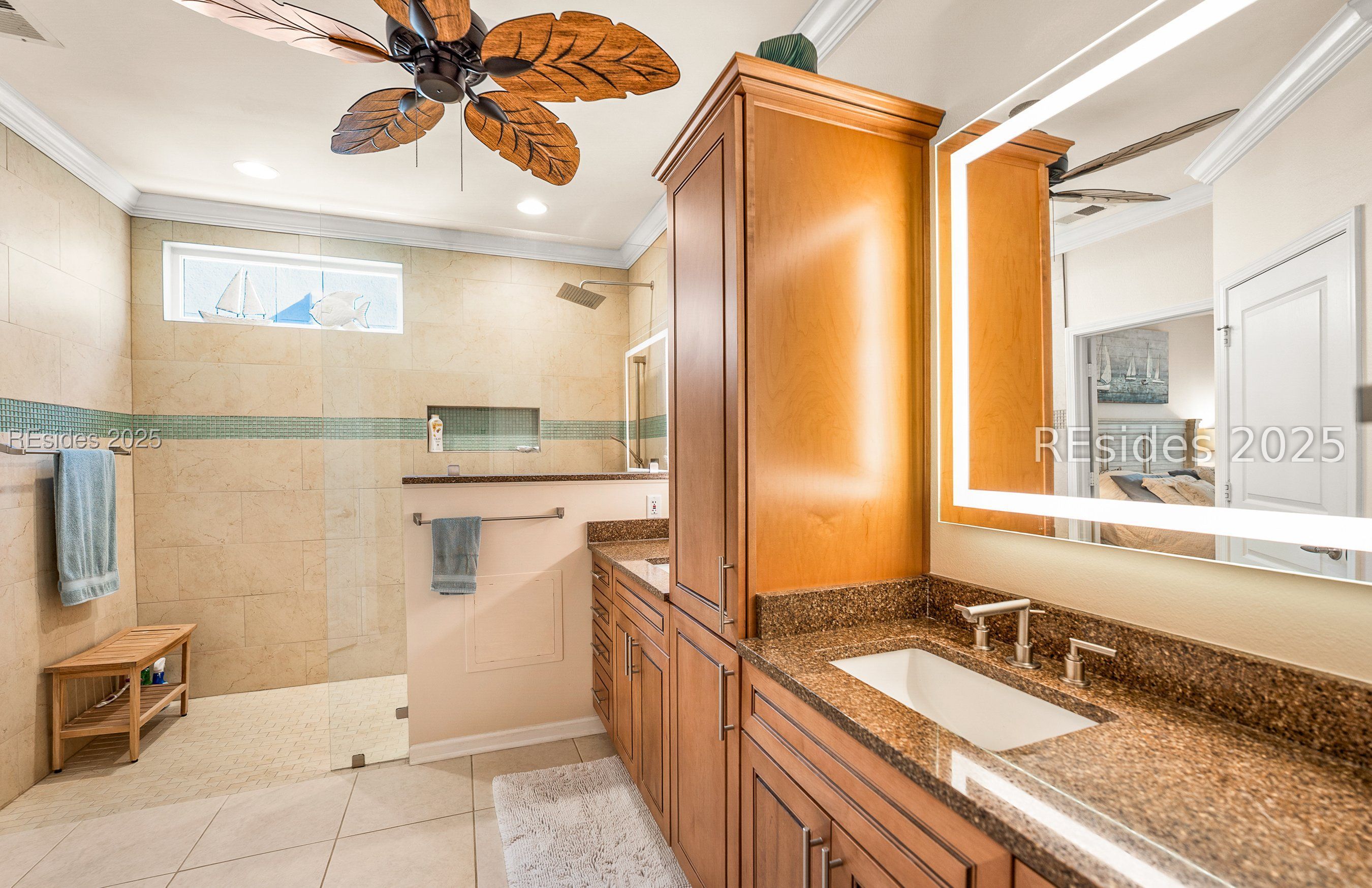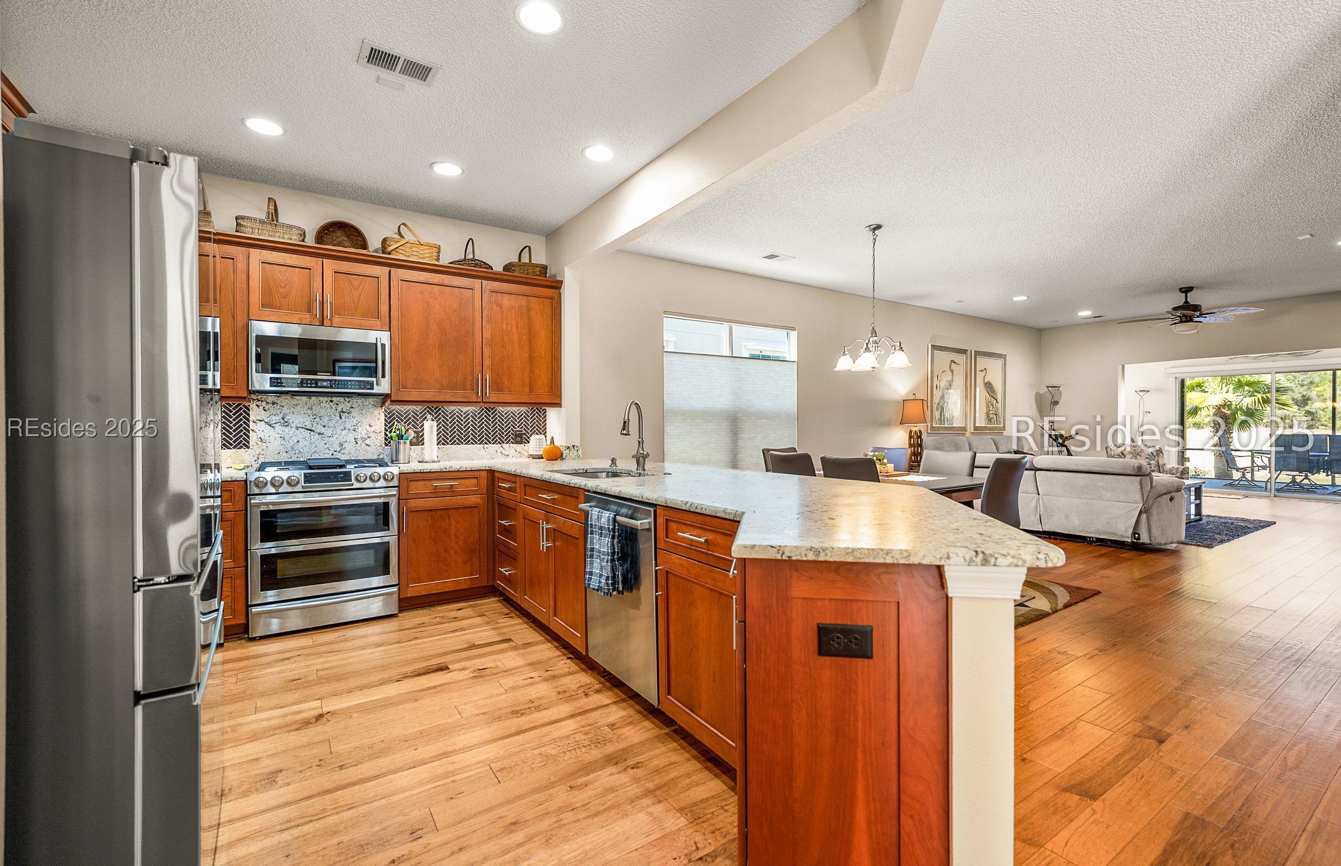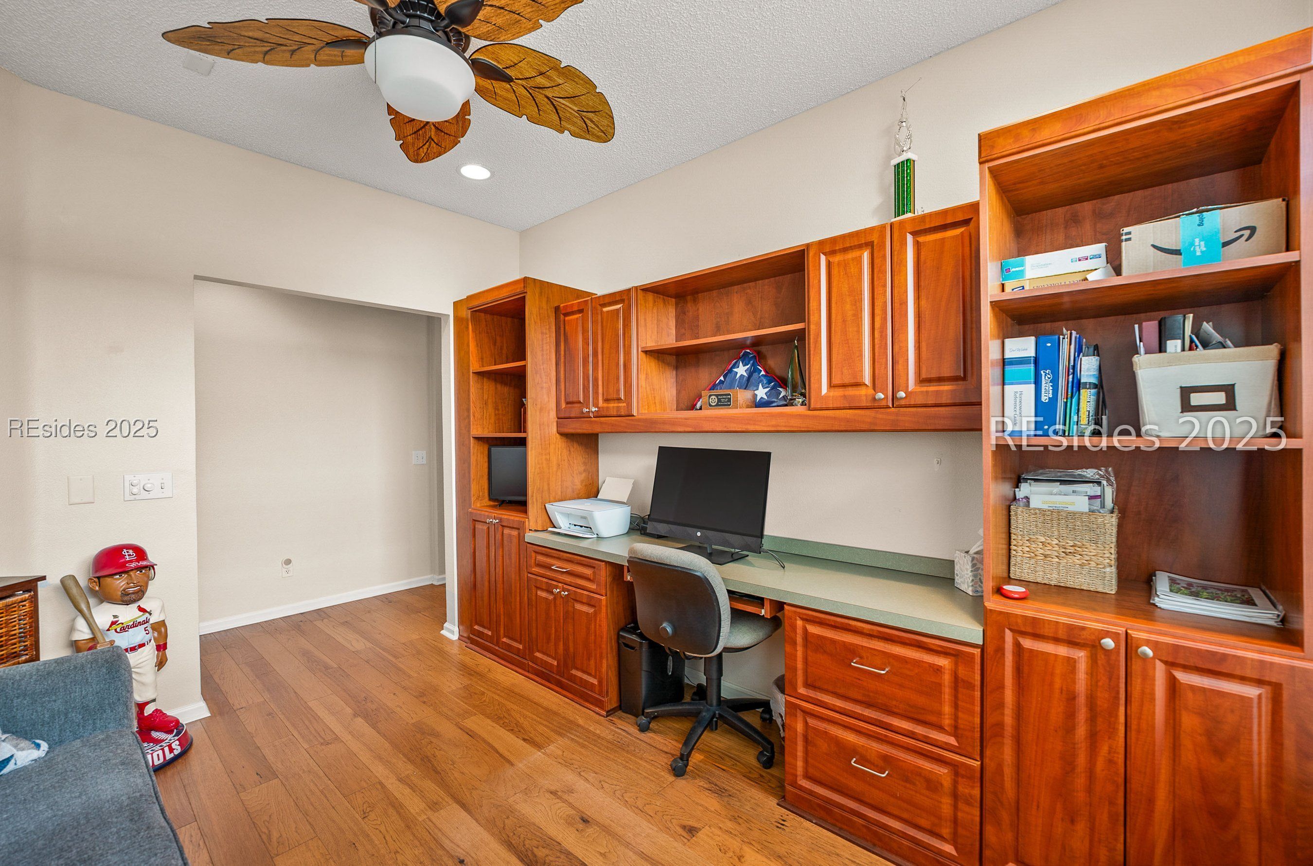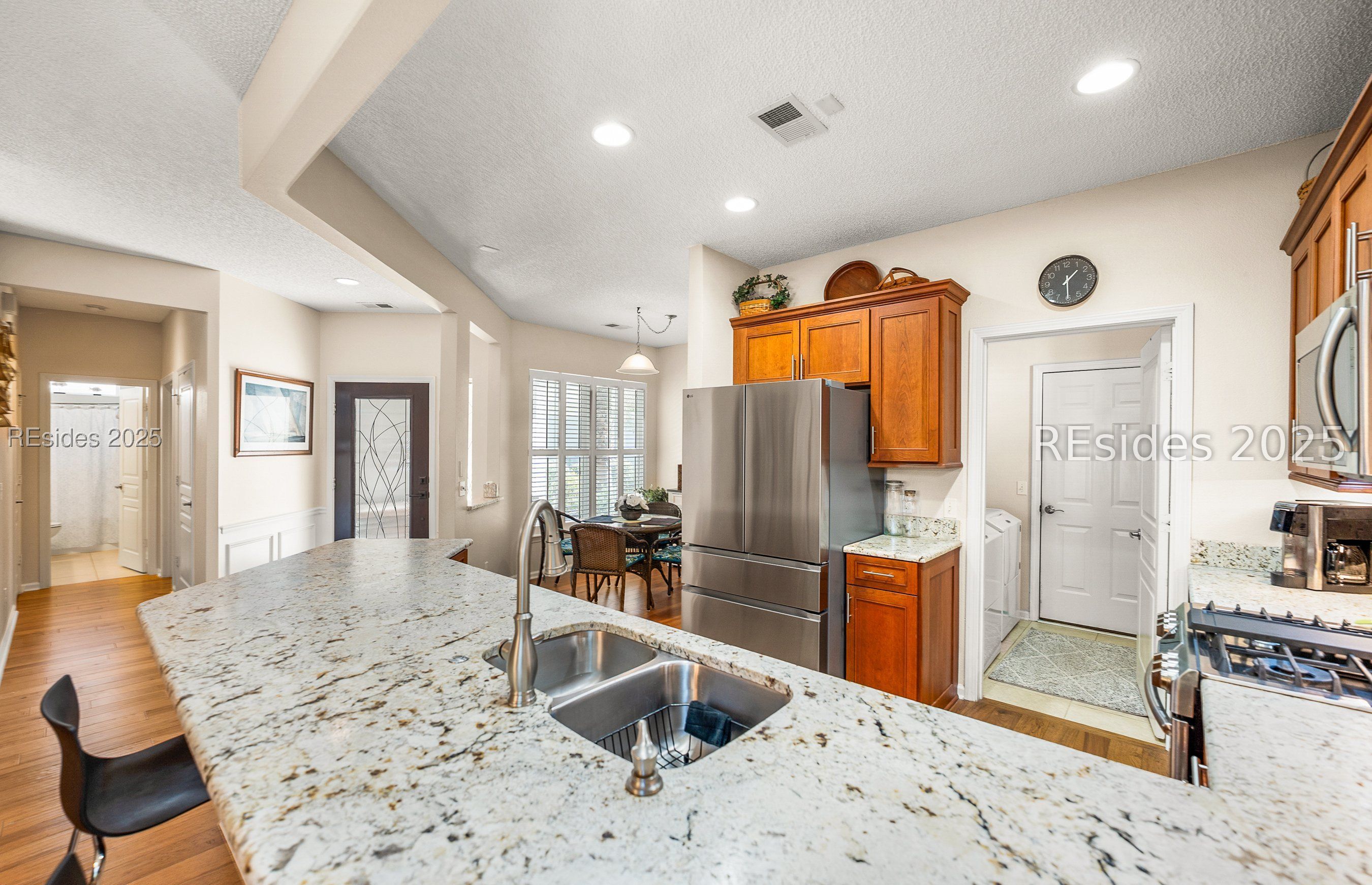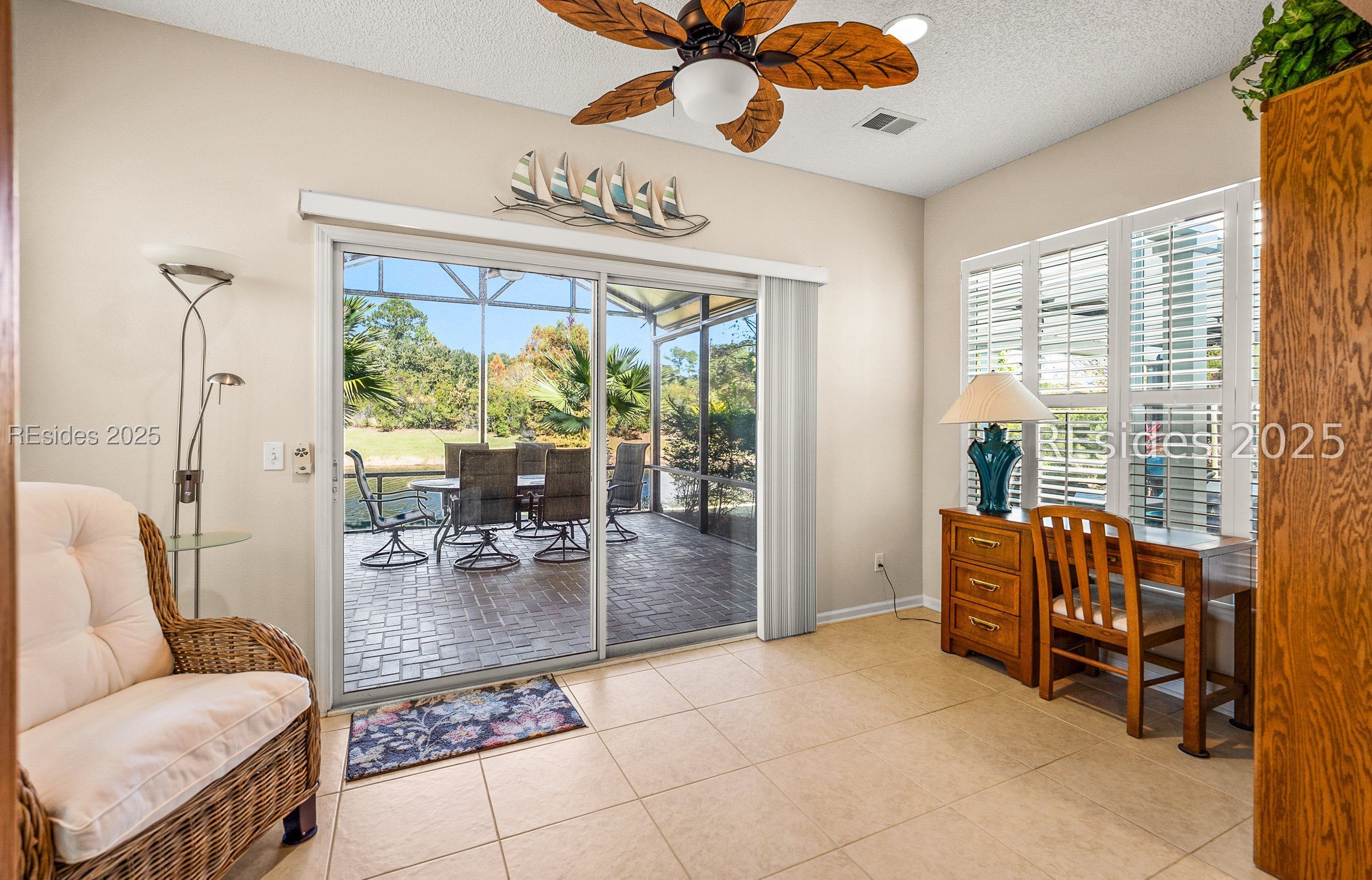 Stunning Lagoon-View Home in Sun City Hilton Head - Over $100K in Upgrades! Welcome to this beautifully updated 2-bedroom, 2-bath Egret model with an office and Carolina room, perfectly situated on a private lagoon lot in the highly sought-after Sun City Hilton Head community. Every inch of this home has been thoughtfully enhanced with over $100,000 in upgrades, offering comfort, quality, and style. Inside, enjoy engineered hardwood floors throughout and an open, inviting layout. The gourmet kitchen features leathered granite countertops, upgraded stainless steel appliances, and a cozy breakfast nook, along with a separate dining area for entertaining. The primary suite is a true retreat with a totally remodeled bathroom showcasing a huge walk-in shower, tall counters, and new cabinetry. An automated shade on the double window adds convenience and a touch of luxury. The office with built-in shelving provides the perfect workspace or reading area. There is also a remote operated window shade on the double windows in the office. Enjoy effortless indoor-outdoor living with a 16' x 16' screened lanai and a newly installed 24' x 15' pergola patio, ideal for relaxing or hosting guests. The oversized two-car garage features epoxied floors, offering both durability and style. The garage also features a fully retractable screened door making it a great work space or fitness area, or rec room. The front door features a retractable built in screen door. Outside, the home shines with new Hardiplank siding and stone accents, replacing the original stucco for added beauty and peace of mind. This property combines elegant design, thoughtful upgrades, and serene lagoon viewsall in the heart of one of the Lowcountry's premier active adult communities. Experience luxury living in Sun City Hilton Head when you schedule your private showing today!