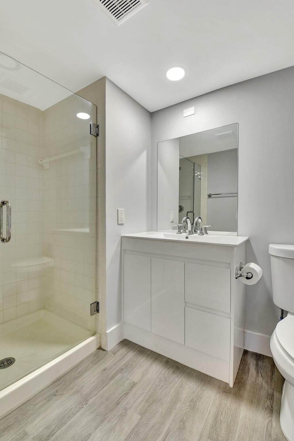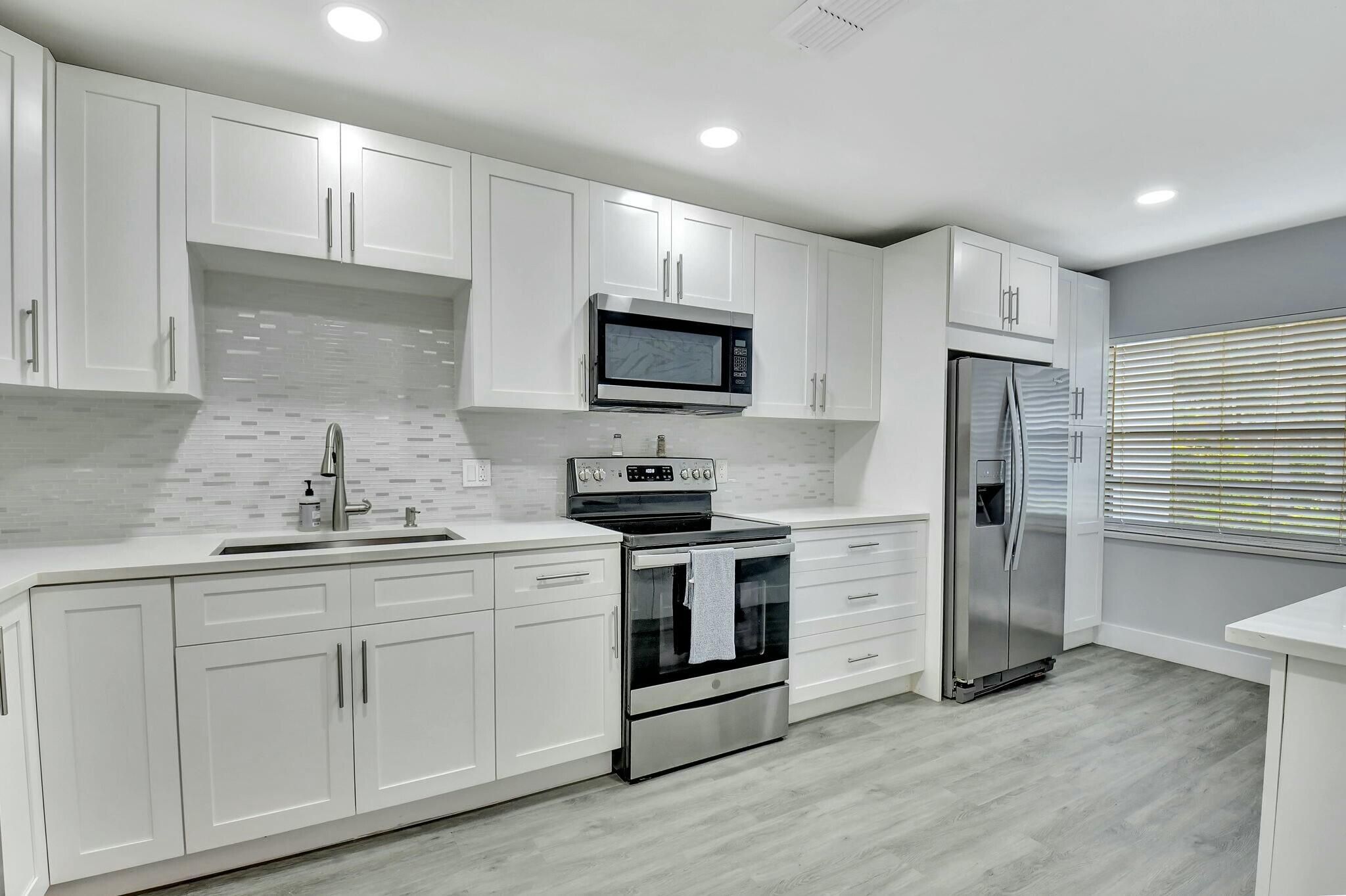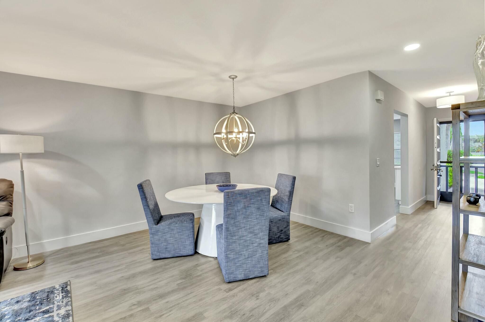 This beautifully renovated 2-bedroom, 2-bathroom main-level condo offers modern elegance and effortless living. Featuring luxury vinyl plank (LVP) flooring throughout all the rooms and freshly cleaned carpet in the primary bedroom the space exudes warmth and durability. Both baths have been elegantly updated. The white shaker kitchen is a chef's dream, complemented by quartz countertops and stylish finishes. Enjoy serene golf course views from your spacious living area and enclosed lanai enhanced by hurricane-rated sliders that provide both safety and natural light. With a thoughtfully designed layout and premium upgrades, this condo is the perfect blend of comfort and sophistication. Hunters Run is a mandatory buy-in and yearly membership, amenities-filled community, offering 3 championship 18-hole golf courses, tennis & pickle ball courts, 6 dining venues, pools, a fitness center, spa & salon, golf shop, entertainment & activities. Just minutes to vibrant downtown Delray and the BEACH! Come to Hunters Run, the only thing missing is you!