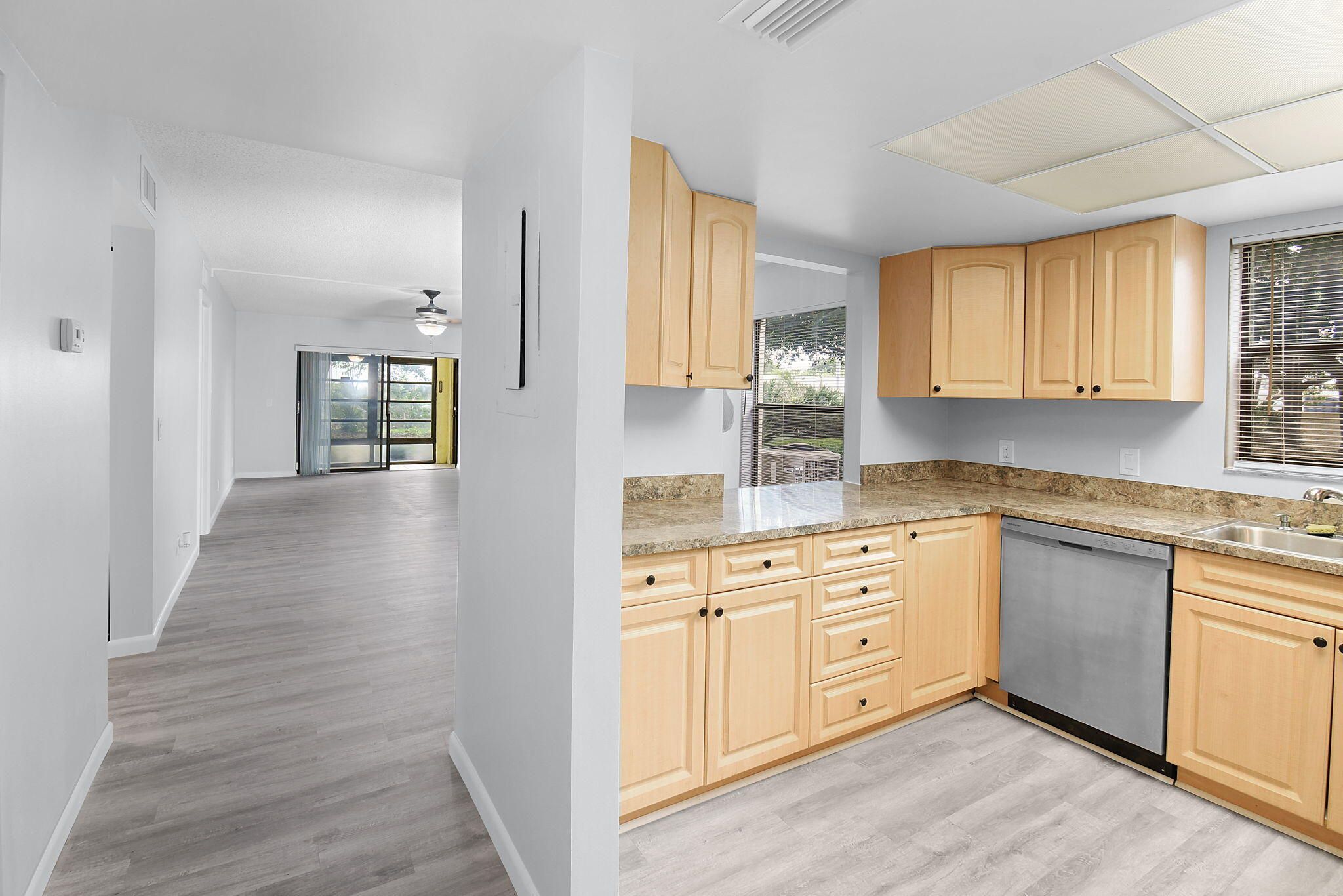 SOUTH RIVER - Nicely renovated, first floor, corner unit with preserve views. New stainless steel appliances, new flooring, and fresh paint. Move-in ready! This is your personal oasis for relaxation and enjoying the view. The pool, clubhouse, and a vibrant array of community social activities are just a short walk away. Nestled in a gated community with an on-site management office, South River is a 55+ age-restricted gem. Immaculately maintained common areas, a community pool, inviting grill areas, lakeside benches, meandering sidewalks, and diverse activities like shuffleboard, pickleball, tennis, bocce ball, and horseshoes make this community a true paradise. Additional amenities include boat and RV storage, as well as a tranquil boardwalk along the St. Lucie River.
