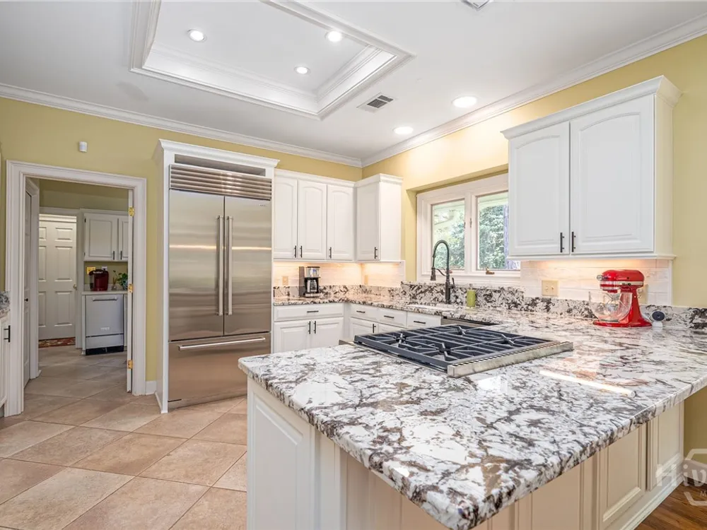 - Wet Bar, Built-in Features, Breakfast Area, Bathtub, Ceiling Fan(s), Double Vanity, Entrance Foyer, Fireplace, Gourmet Kitchen, High Ceilings, Main Level Primary, Pull Down Attic Stairs, Recessed Lighting, Separate Shower, Vaulted Ceiling(s)