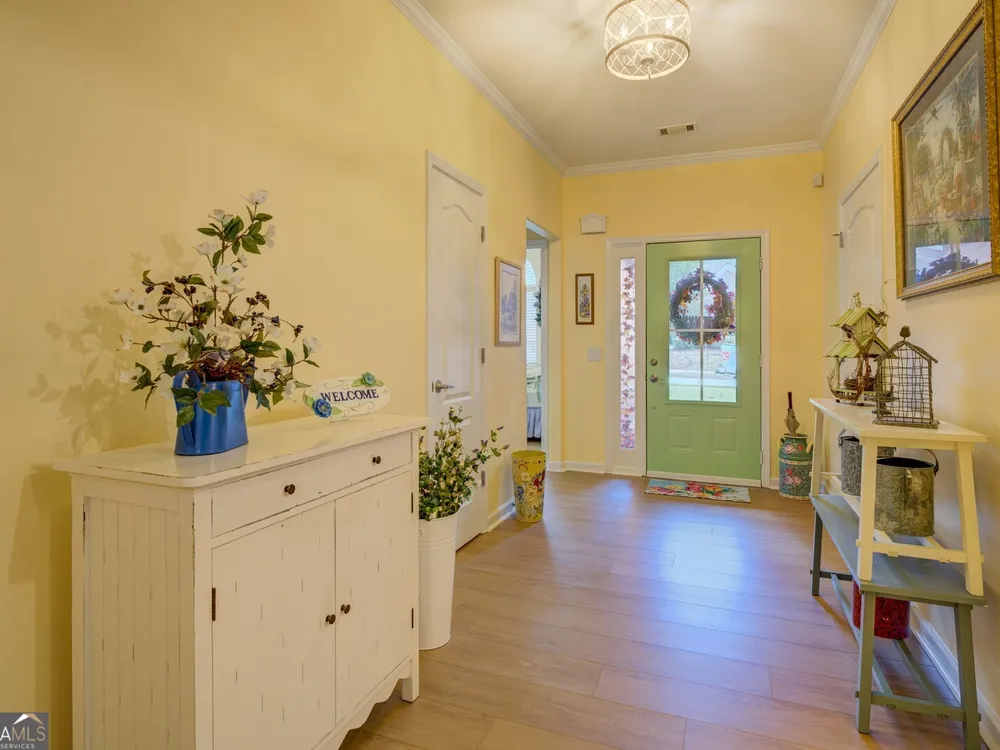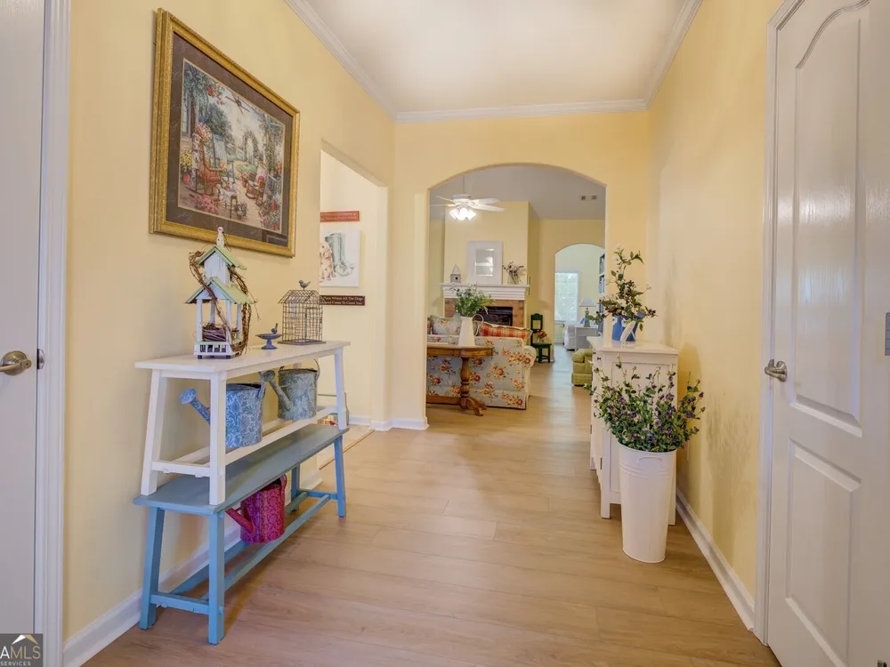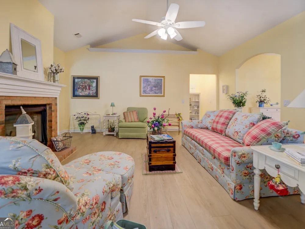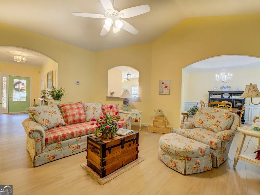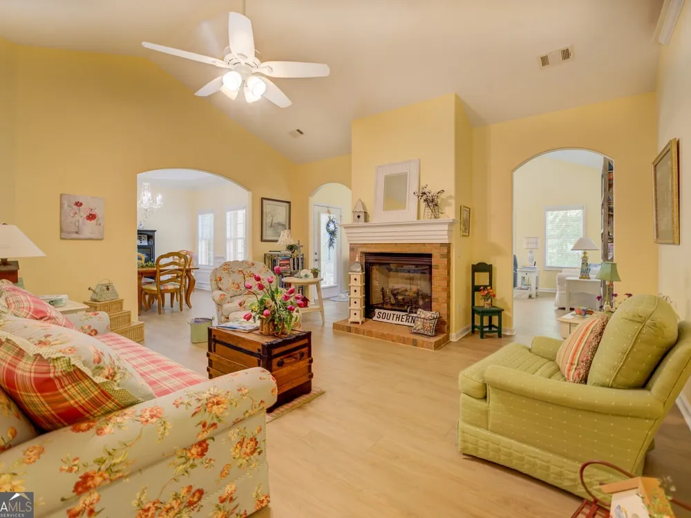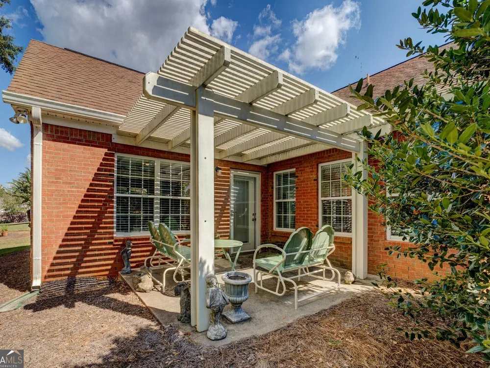 Welcome to the beautifully maintained 3-bedroom, 2.5-bath residence featuring an open floor plan and timeless all-brick construction. Located just a short walk to Historic Social Circle, Georgia, this sought after 55+ community offers a peaceful lifestyle with no school taxes at age 65 and handicap accessibility throughout. Recent updates include new LVP flooring and interior paint, new lighting including pendants in the kitchen, and bathroom fixtures. Elegant bullnose corners and a heavy trim package add a polished high-end finish throughout the home, enhancing its open and inviting feel. The home features professional new landscaping enhanced by a Rainbird irrigation control system for easy and efficient lawn care. The home welcomes you with a spacious foyer featuring 9-foot ceilings , LVP flooring, a convenient coat closet, and a half bath with a pedestal sink. The great room offers vaulted ceilings, durable LVP flooring, a ventless gas fireplace with gas logs, and a decorative ledge, creating a warm and inviting space for relaxing or entertaining. The bright and airy sunroom features vaulted ceilings and large windows that fill the room with natural light. It opens to a patio with a charming pergola. The fireplace separates the great room and sunroom. The kitchen showcases ceramic tile flooring, custom stained cabinets, Corian countertops, and a movable Corian surface island with storage drawers. Additional features include a tile backsplash, black appliances, a breakfast bar and a spacious breakfast area with an open view of the great room. The elegant dining room features LVP flooring, a tray ceiling, chair rail and wainscoting, making it an ideal space for formal or casual gathering. The owner's suite features LVP flooring and a double tray ceiling creating a relaxing and elegant retreat. The owner's bath is beautifully updated with new ceramic tile, a new tiled walk-in shower with new glass door, double vanity, garden tub and a custom walk-in closet system with adjustable shelving. The two additional bedrooms boasts LVP flooring, and share an adjoining full bathroom. One of the additional bedrooms has a vaulted ceiling, a charming oval window and built-in closet system. The second additional bedroom has a walk-in closet with built-in closet system. This home is in an ideal location just 7 minutes to Interstate 20 and a short drive to Historic Covington. Hartsfield International Airport, Athens and Lake Oconee are a 45 minute drive while Hard Labor Creek State Park and Madison are 20 minutes away. Additionally the new RIVIAN EV truck plant and Takeda Pharmaceuticals is a 15 minute drive. Don't miss this incredible opportunity!