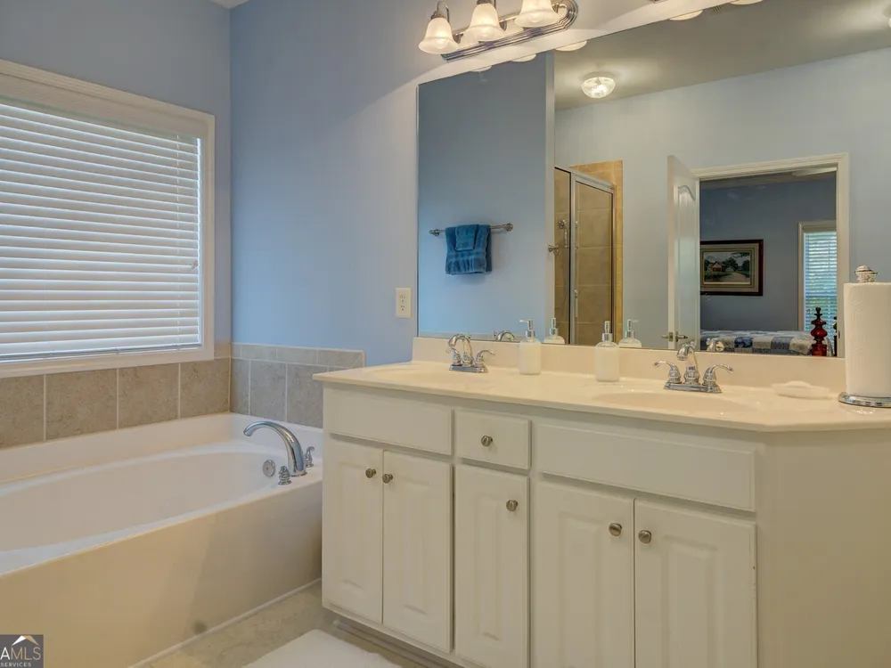 - Double Vanity, High Ceilings, Main Level Primary, Separate Shower, Soaking Tub, Tile Bath, Tray Ceiling(s), Vaulted Ceiling(s), Walk-In Closet(s), Dual Pane Window(s), Entrance Foyer, Great Room, Laundry Facility, Sunroom, Satellite Dish