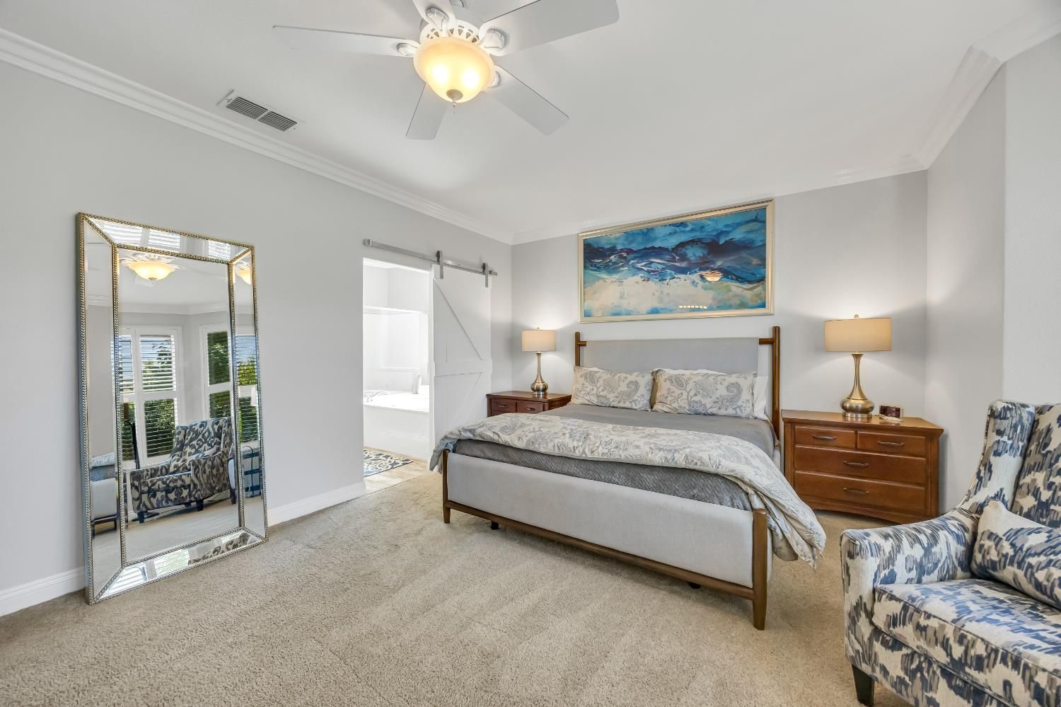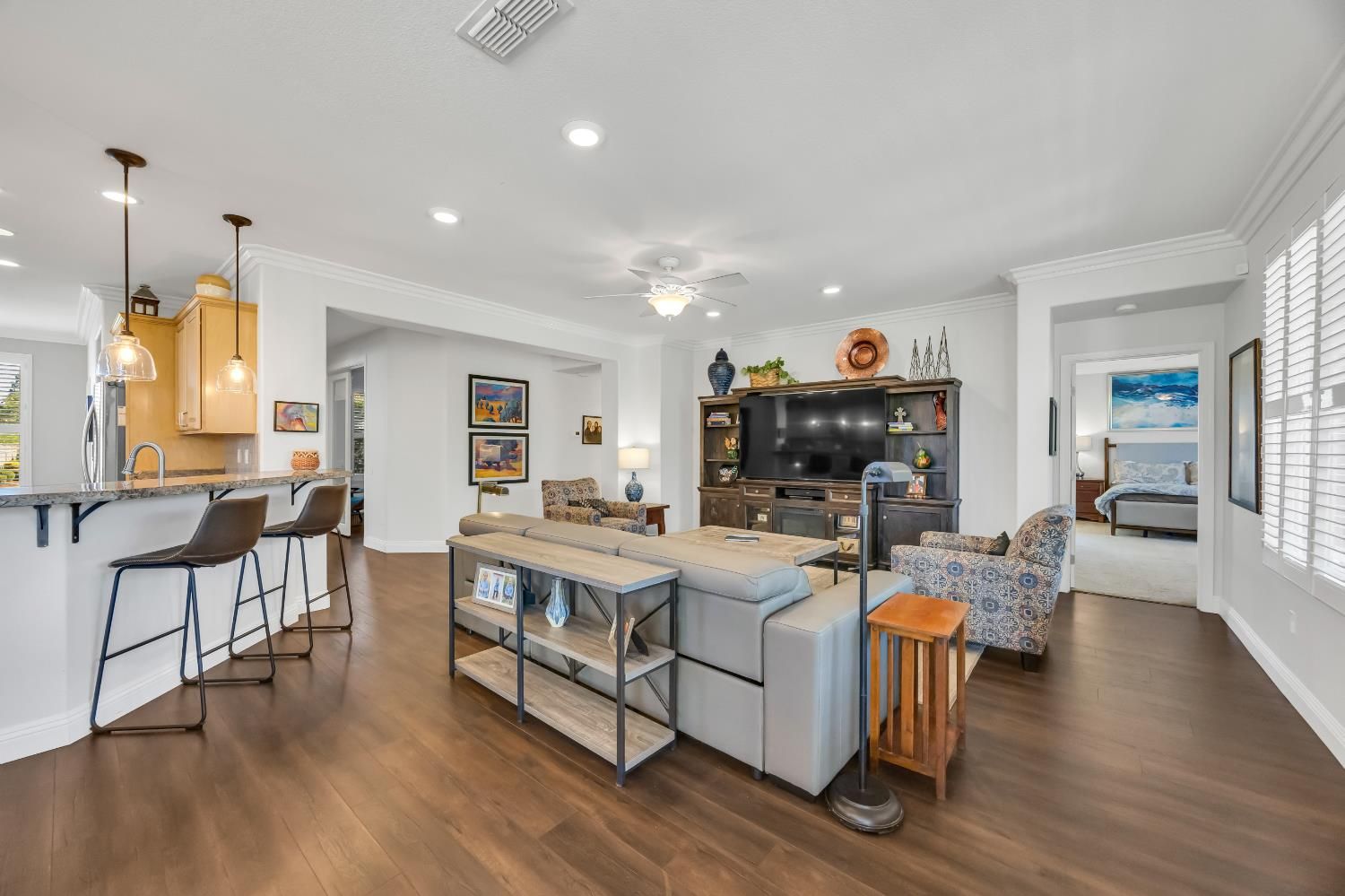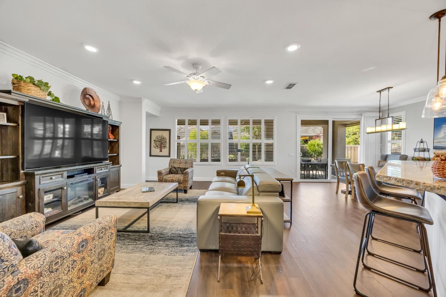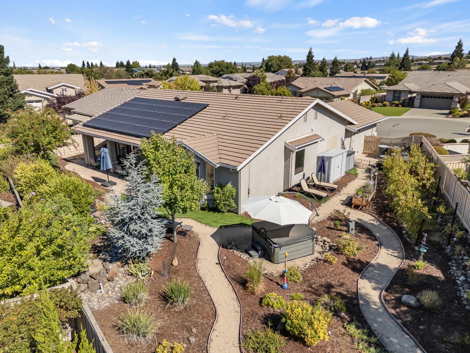 Welcome to Sun City Lincoln Hills, the premier 55+ active adult community! Appreciate this spacious El Dorado floor plan nicely tucked away in a quiet cul-de-sac. As you enter this bright and spacious home you will see the large office which offers glass doors and a stylish workspace. This beautifully updated home features luxurious LVP floors, a modern kitchen with granite countertops, island and maple cabinets. Plantation shutters and crown molding enhance the home's luxurious feel. The primary suite offers a walk-in closet, bathroom barn door and bay window with sitting area. Step outside and enjoy your own private oasis. This spacious yard offers a covered patio where you can relax and enjoy a soothing water feature and pond. Nicely manicured plants and flowers offer a drought resistant, low maintenance yard. Enjoy our many amenities; two club houses, restaurant, spa, fitness center, golf, pickleball, tennis, bocce ball, softball and walking trails. This home is move-in ready, has Tesla Solar and NO Kitec.