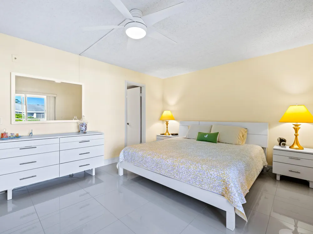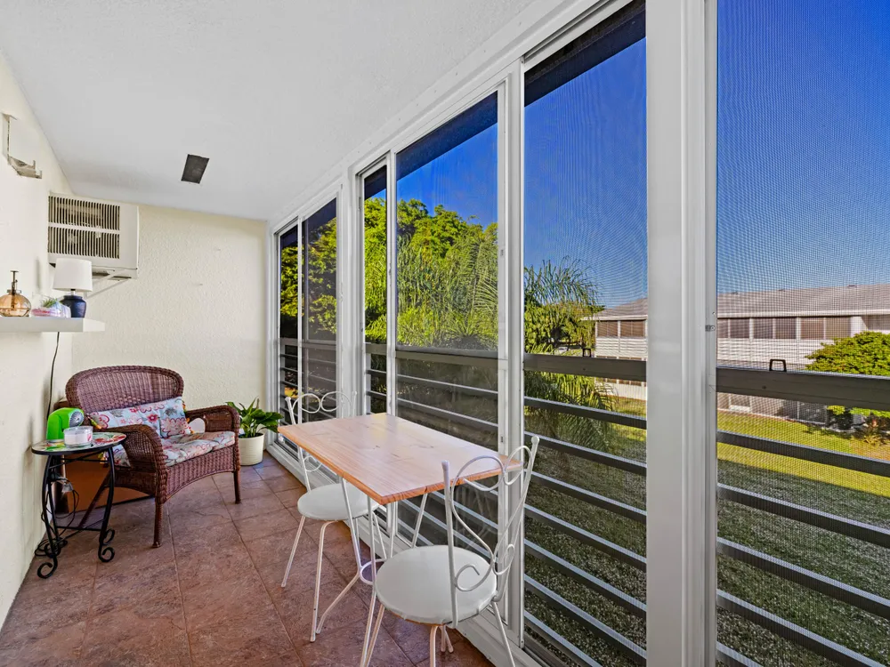 Competitive New Price!! This turnkey, immaculate, bright and spacious apartment offers numerous upgrades including gorgeous porcelain tile floor throughout, renovated bathrooms, new electrical panel, new water heater, new A/C unit and newly installed sliding windows for the balcony overlooking the relaxing garden views. New roof installed January 2025. Strong financials and no assessments. Century Village offers resort style state of the art amenities, clubs and classes and multiple sports activities including tennis and pickleball. The community is located just 4 miles from the fabulous beach and great shopping and dining is just minutes outside the Village.