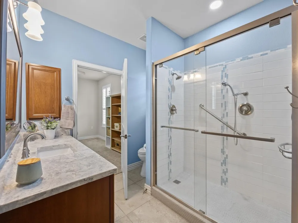 If you're dreaming of a home that feels both gracious and grounded, welcome to 310 Pipe Creek Lane in the heart of Sun City, Georgetown. Just 25 minutes from Austin; it's close enough for dinner and a show, but far enough to hear the crickets at night. This home is all about easy living (open floor plan and plenty of patio space), thoughtful details (storage in garage, and a space for your golf cart), and gathering the people you love into the beautiful kitchen to dine and make memories. A full study with glass, french doors at the front of the home is perfect for taking care of business, and has a built-in murphy bed, making space for everyone during the holidays! The spacious primary suite is just lovely - big windows with plantation shutters diffuse the light making it feel serene, and tucked away like a quiet retreat. The full primary bath is outfitted with a walk-in tub, and a separate shower, plus a double vanity. Beyond the shower is a large walk-in closet - plenty of space to hang those pickleball shirts by color! Two more bedrooms with another full bath between, and a half bath for guests, finish out the needs of this gorgeous Sun City home. And outside? Whether you want to enjoy the neighbors from the front porch, or spy on the deer from the covered back patio, either is perfect for morning coffee, evening wine, or fresh herbs in pots by the door. This isn’t just a home — it’s a place to live well, connect deeply, and enjoy all the charm that Sun City and Georgetown have to offer.