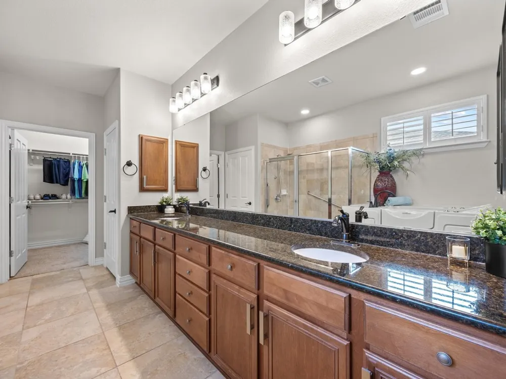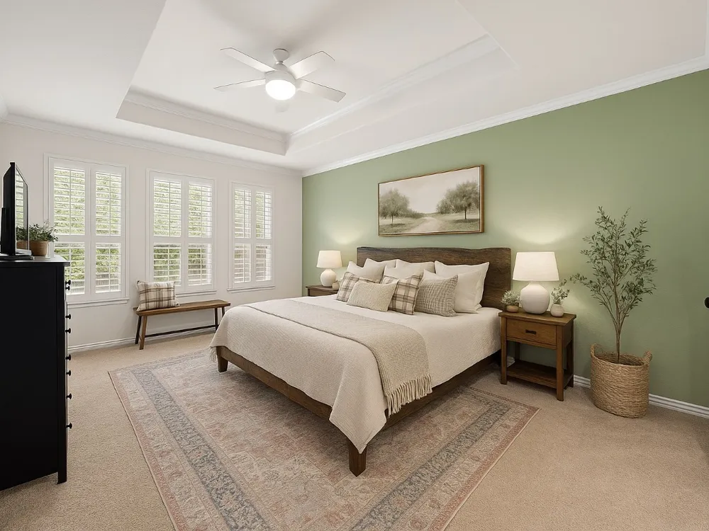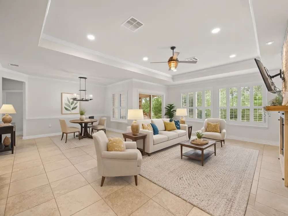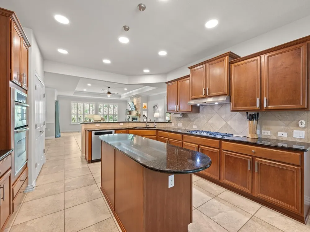- Built-in Features, Tray Ceiling(s), Ceiling Fan(s), Chandelier, Crown Molding, Separate/Formal Dining Room, Double Vanity, Entrance Foyer, French Door(s)/Atrium Door(s), Granite Counters, Kitchen Island, Multiple Living Areas, Multiple Dining Areas, Main Level Primary, MurphyBed, NoInteriorSteps, Open Floorplan, Pantry, Recessed Lighting, Storage, Walk-In Closet(s)