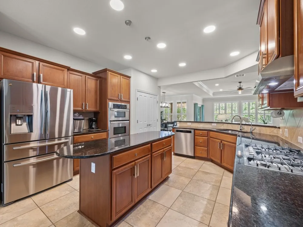 - Built-In Oven, Dishwasher, Gas Cooktop, Disposal, Gas Water Heater, Microwave, Plumbed For Ice Maker, Refrigerator, Stainless Steel Appliance(s), Water Softener