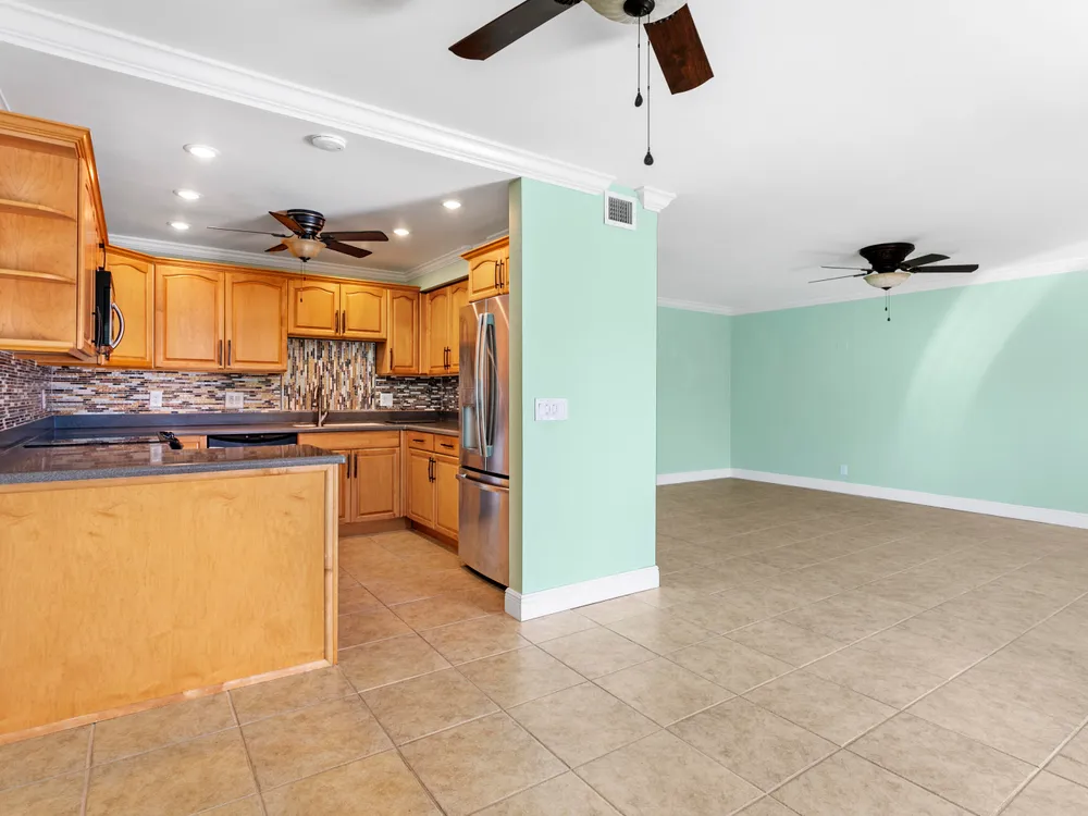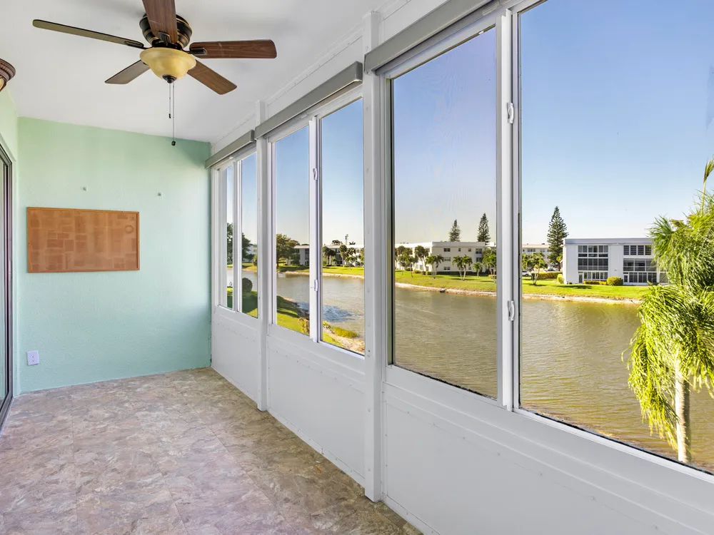 Pride of ownership shows in this beautifully remodeled and well maintained condo. Penthouse views of water. Enjoy watching a large variety of birds, ducks, egrets and heron. Condo is bright and sunny. Loads of storage for your convenience. Coordinated light fixtures and fans lend a beautiful look. Building was recently painted. Condo has storm windows/door all around. Automatic shutters close the front windows for your safety. Crown molding and baseboard give a coordinated finished look. Kitchen has all the conveniences - double sink, newer stove, microwave hood, refrigerator and dishwasher. Loads of kitchen cabinets for your convenience. Elevator and assigned parking space are nearby. Plantation shutters enhance your Florida experience. A/C, water heater and electric panel were