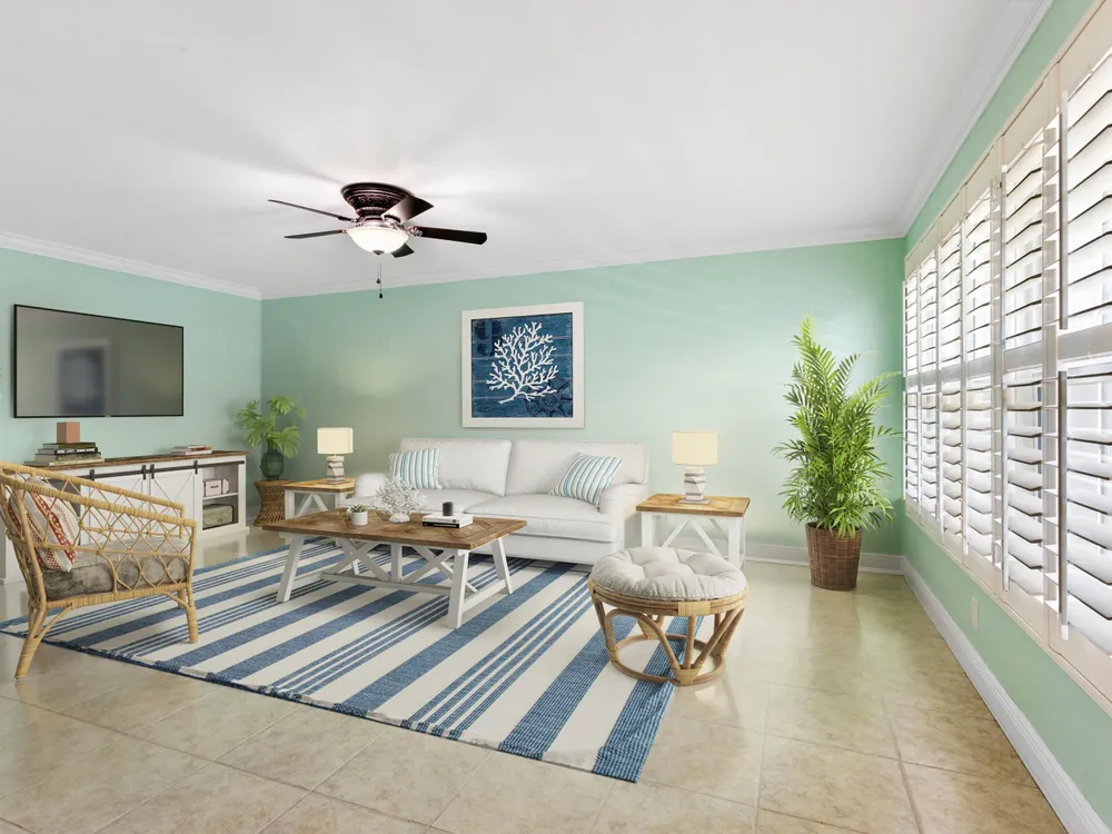 - Built-in Shelving, Entry Level Living Area, Walk-In Closet(s), Living/Dining Room, Impact Glass, Plantation Shutters, Separate Shower, Storm Shutters