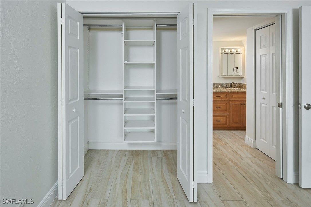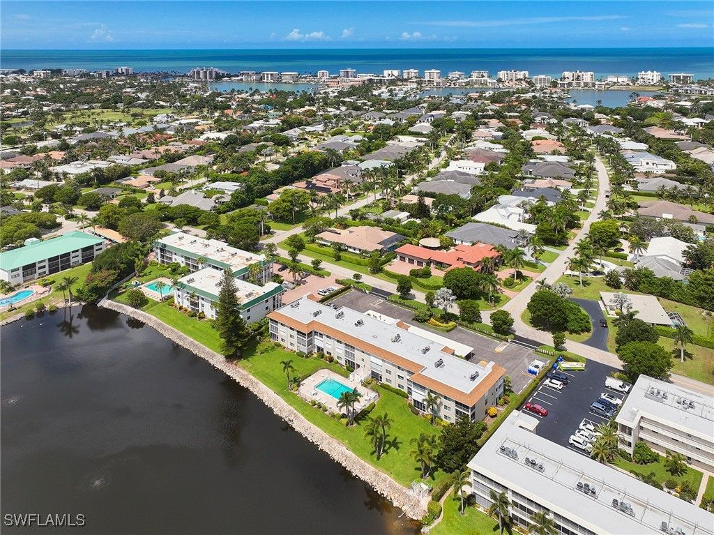 Rarely Available. This desirable third-floor, two-bedroom, two-bath condo is set within one of Naples’ most sought-after coastal communities. Where private beach access, mature streetscapes, and an unhurried Gulf Coast lifestyle continue to draw those seeking a quieter rhythm, without compromising proximity to Naples’ most iconic destinations. Portside Club, a boutique, 24-residence building, offers a calm vantage and naturally suited for both seasonal or year-round living. Eastern exposure brings the morning into full view, casting soft light across the open interior that extends from the entryway to your screened lanai overlooking Lake Suzanne and the pool below. Updated tile flooring carries throughout, creating a visual through-line from room to room, while the full interior repaint gives the space a crisp, collected tone. Appointed with stainless steel GE appliances and custom cabinetry, the kitchen has been thoughtfully opened, introducing a subtle layer of depth off the main living space. With touches of coastal detail, and plantation shutters framing calming lake views, the primary is finished with an updated en suite bath featuring a glass-enclosed walk-in shower, while the guest bedroom includes its own built-in closet system that rests beside the upgraded guest bath. Surrounded by world-class shopping, dining, and miles of postcard-perfect coastline, this property stands as an exceptional offering within one of Naples' most prized coastal addresses.