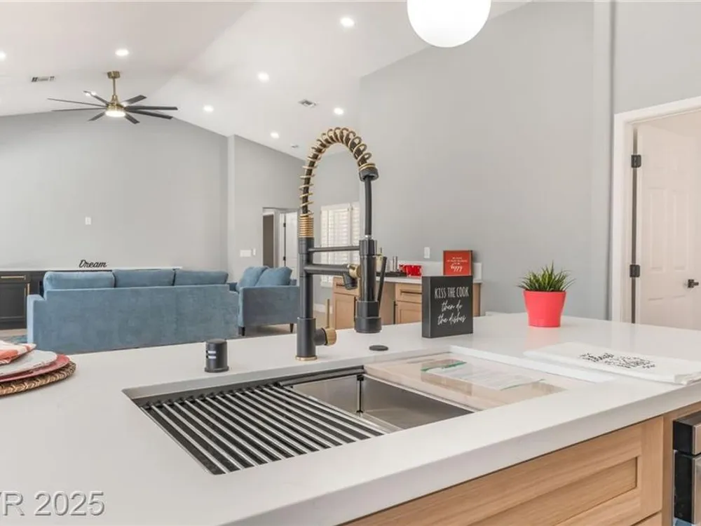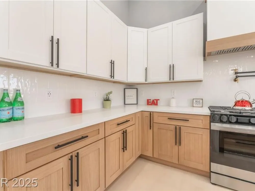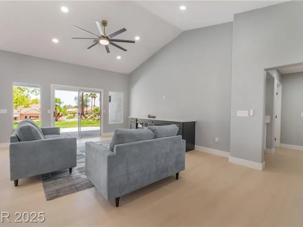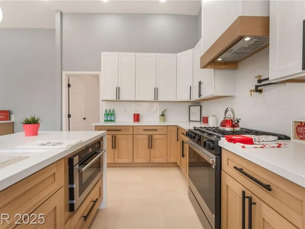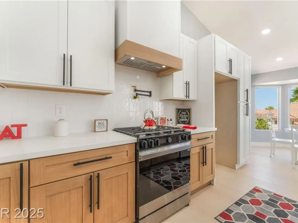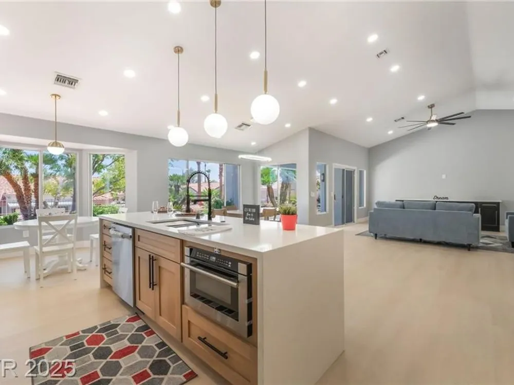 Welcome to this FULLY RENOVATED & IMPECCABLY DESIGNED LUXURY SUN CITY SUMMERLIN ELEVATED 1 story LARGEST CORNER Lots in the HEART OF SUN CITY SUMMERLIN! Showcasing Tons of Natural Light , this home CHECKS OFF ALL THE BOXES! The IMPRESSIVE LIVING ROOM boasts an entertainment wall w/ an ELECTRIC FIREPLACE & TONS OF SPACE FOR ENTERTAINING! The wide open kitchen offers a spacious Waterfall Island, Quartz Countertops, White and White Oak cabinetry throughout with black designer hardware with Stainless Steel Appliances, featuring a 30 inch Range and Custom White Accented Range Hood above. The Primary Bedroom Does Not Disappoint , delivering an suite Bathroom w/a Double Sink Vanity, New LED Mirrors and Lighting, & Designer Tiled Walk-in Shower! Also featuring 2 closets for his and hers. hand picked fixtures and faucets throughout, high end lighting package, fresh interior paint, 2 Car garage with GOLF CART PARKING Space. Beautiful backyard with Covered Patio. Come see it today.