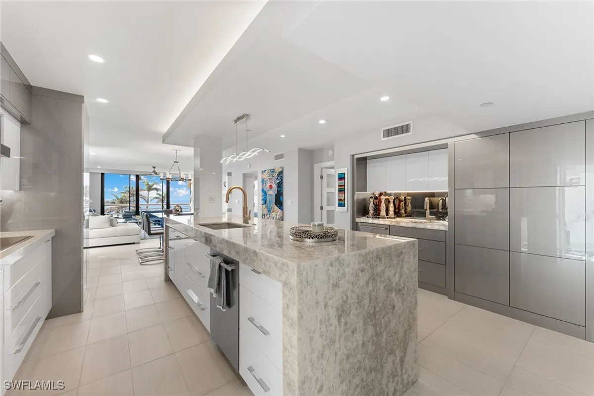 In one of Naples desirable locations, this stunning residence offers captivating views of the gulf from the primary suite, as well as the bay. Thoughtfully designed by London Bay, the interior features two bedrooms plus a versatile bonus room, complemented by a sun-filled lanai and two private balconies, ideal for enjoying Southwest Florida’s breathtaking sunsets. Recently updated with all-new electrical and plumbing, the home seamlessly blends modern comfort with timeless coastal charm. The kitchen is a showpiece, boasting exquisite Calcite Blue marble countertops, while the office and laundry areas are adorned with sleek Pompeii quartz. Deeded beach access across the street. Ideally within walking distance of The Village for premier shopping and dining, and just minutes from downtown Naples and Fifth Avenue, this property offers the best of convenience and luxury. Residents also enjoy exclusive membership access to Moorings Beach Park, providing private beach access for ultimate relaxation. Experience the essence of Florida living at its finest.