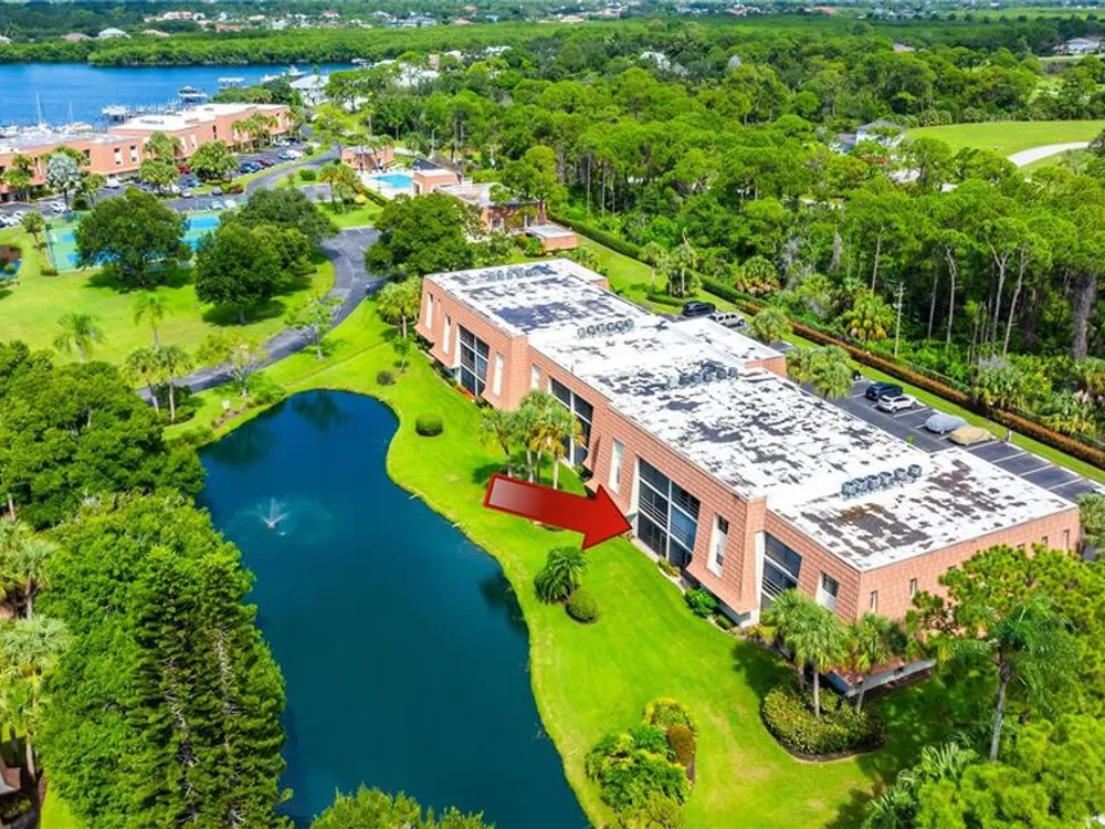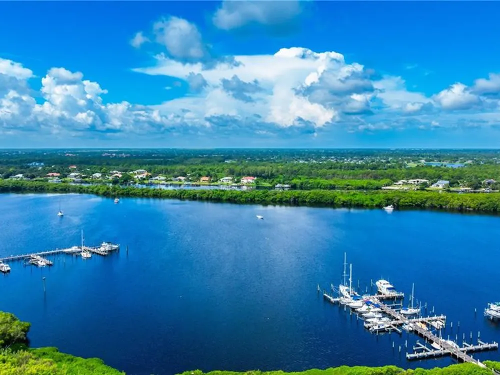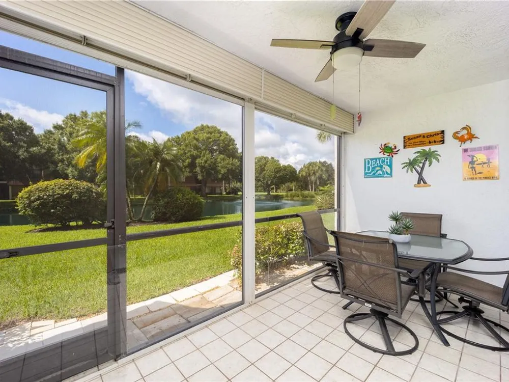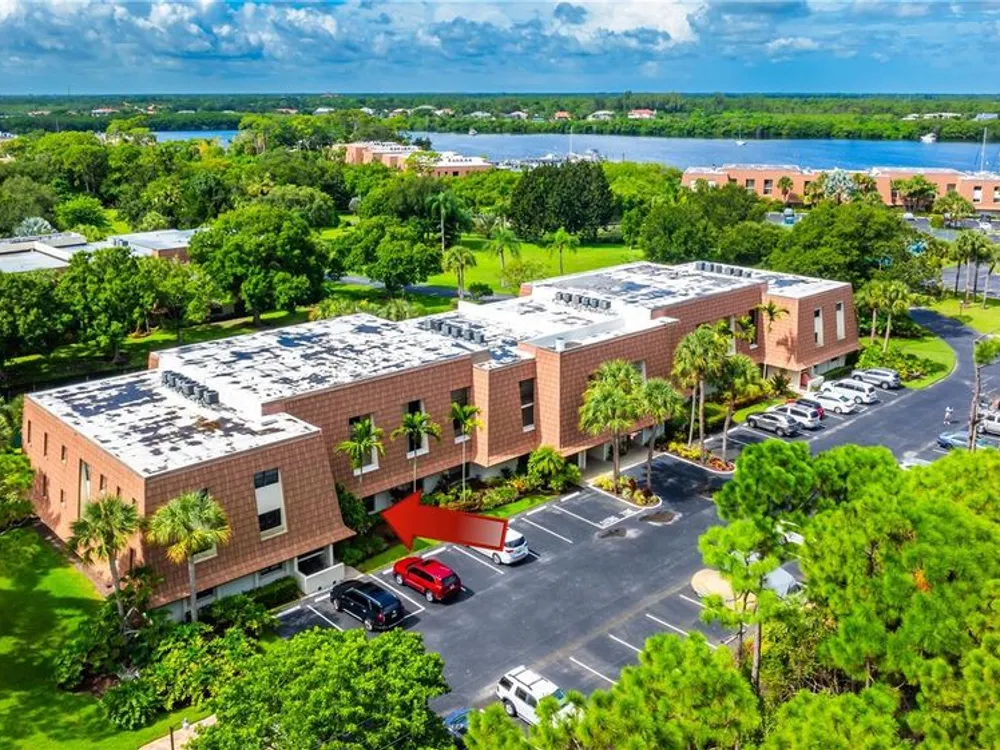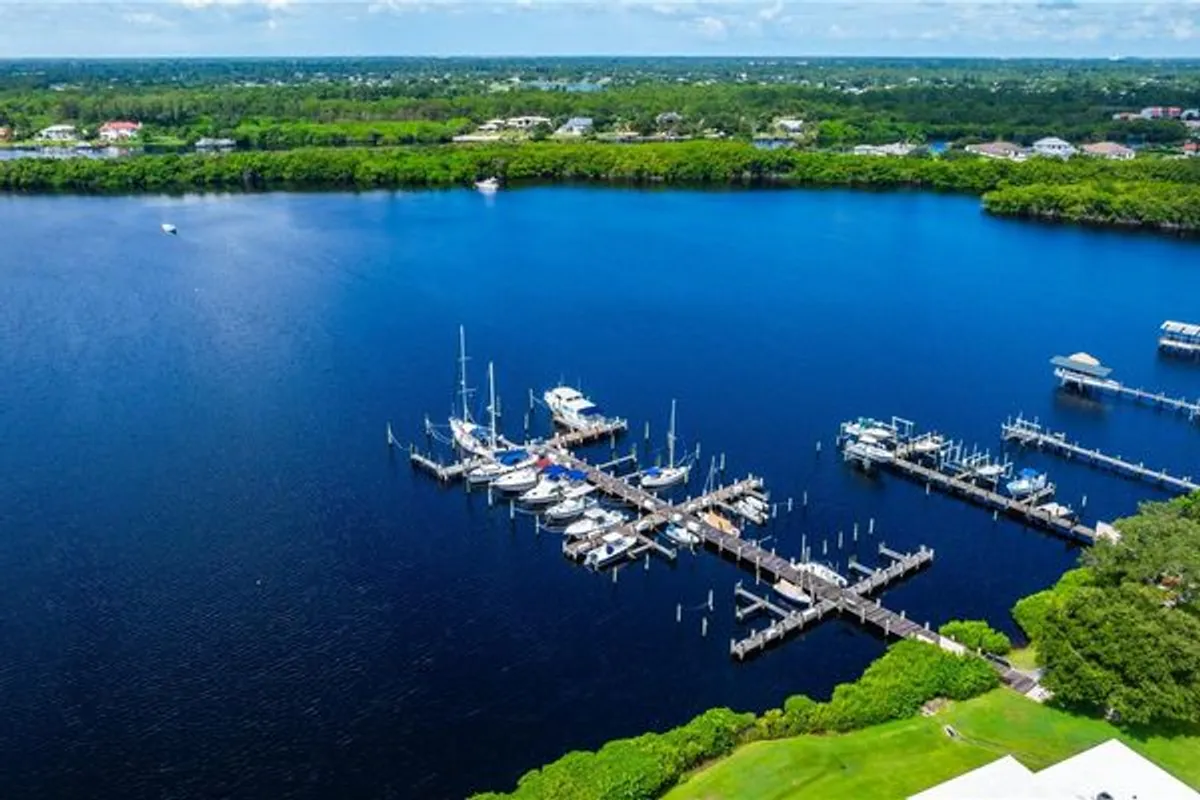 Boaters Paradise! All water enthusiasts come see this Beautiful home. You will love the very affordable Boat docks that rent annually. Boater or not you will love this friendly 55 plus community that offers a true resort style. Walk to the water edge of Kitching cove to enjoy the Beautiful Sunsets or walk thru the lush green park like complex that includes a private lush orchard with a variety of fruit trees all for you as a resident. You will enjoy the large pool, exciting pickleball, to watch or play, tennis courts, clubhouse with billiards and library, outside Grills and Picnic area, Storage, kitchen, Sauna, Street lights, Elevators, all for your enjoyment. You will love the DIY large workshop. Come see this lovely updated open concept home. You would enjoy the lanai with peaceful views of the pond and fountain. Inside the 1,314 sq. ft home you have 2 oversize bedrooms and 2 updated baths and lots of closet space. A nice laundry room with storage. The Air Conditioner is 2 years old, water heater is 1 year old. If you want low maintenance living, this is it. HOA includes internet and cable, water and sewer, Trash, landscaping, all exterior maintenances including roof and insurances. No flood insurance needed. Move in ready, Don't miss this fabulous home.