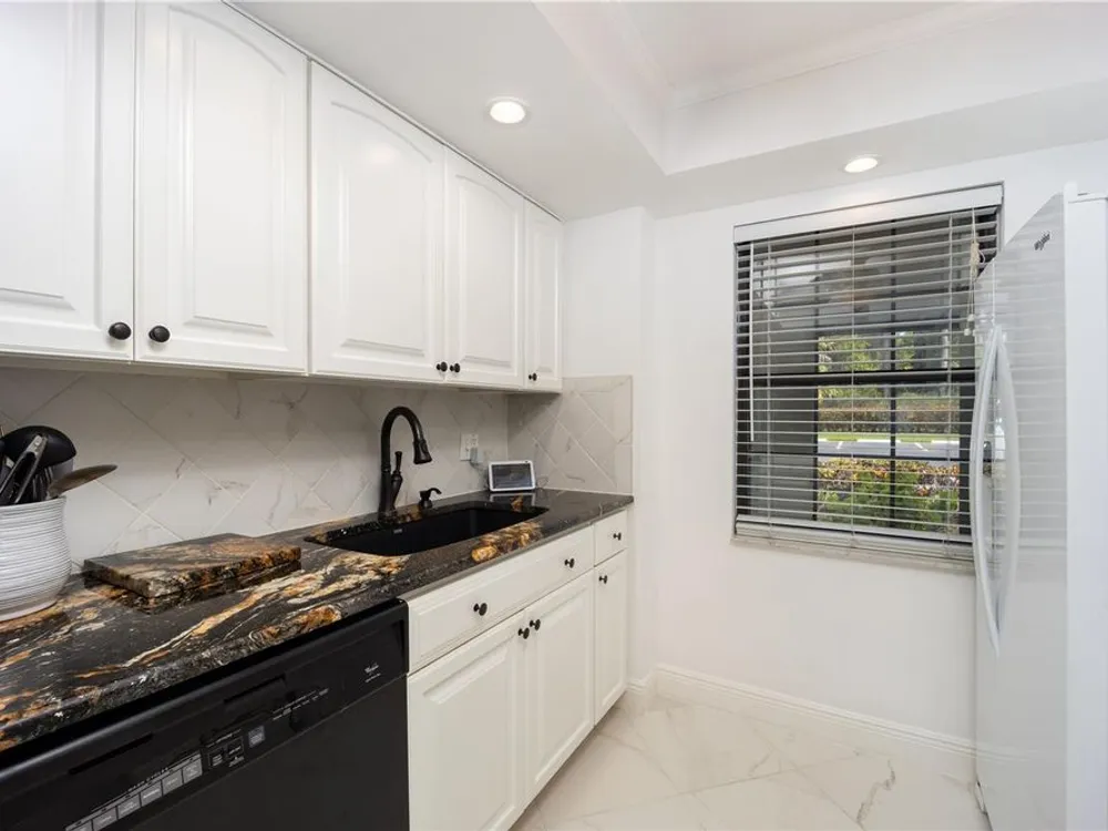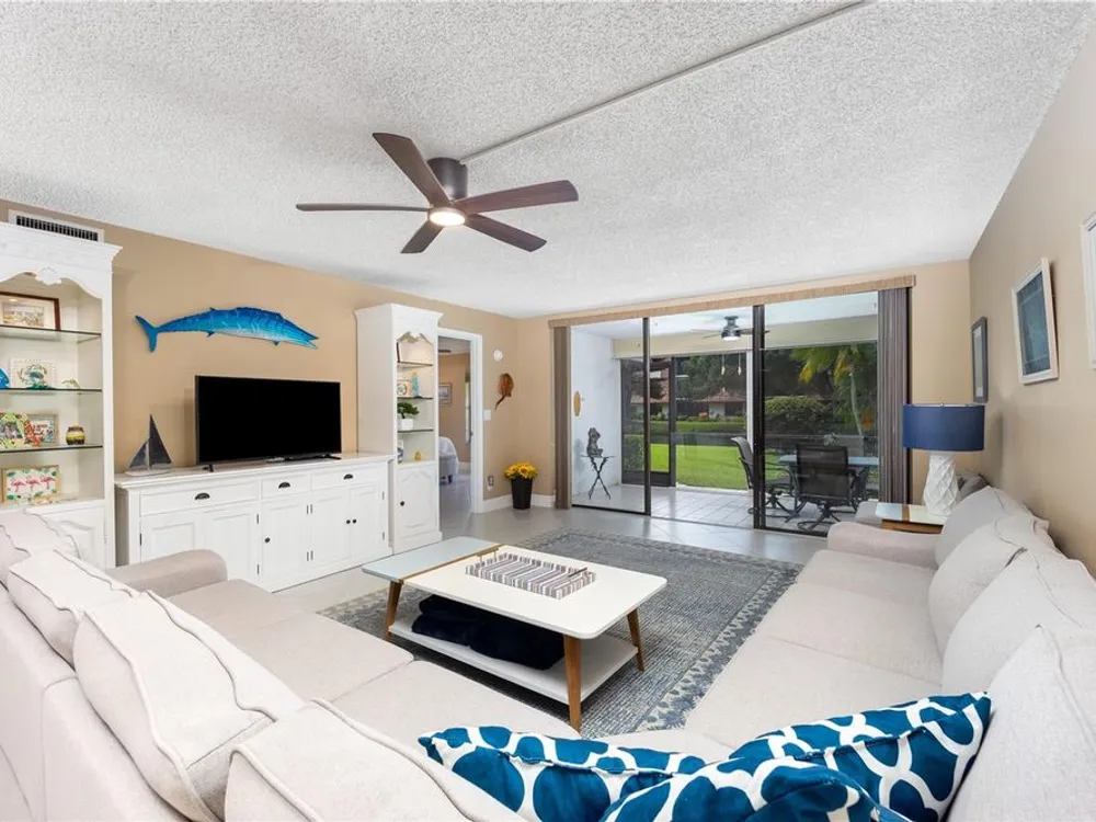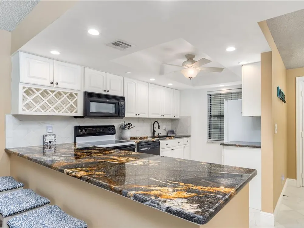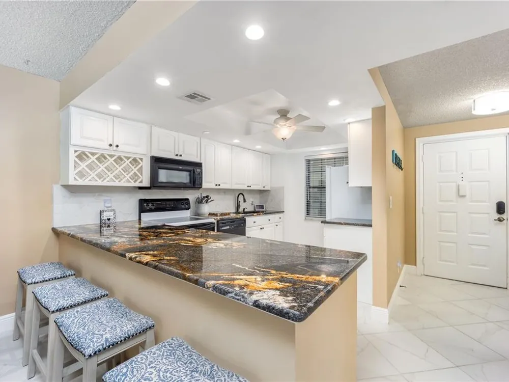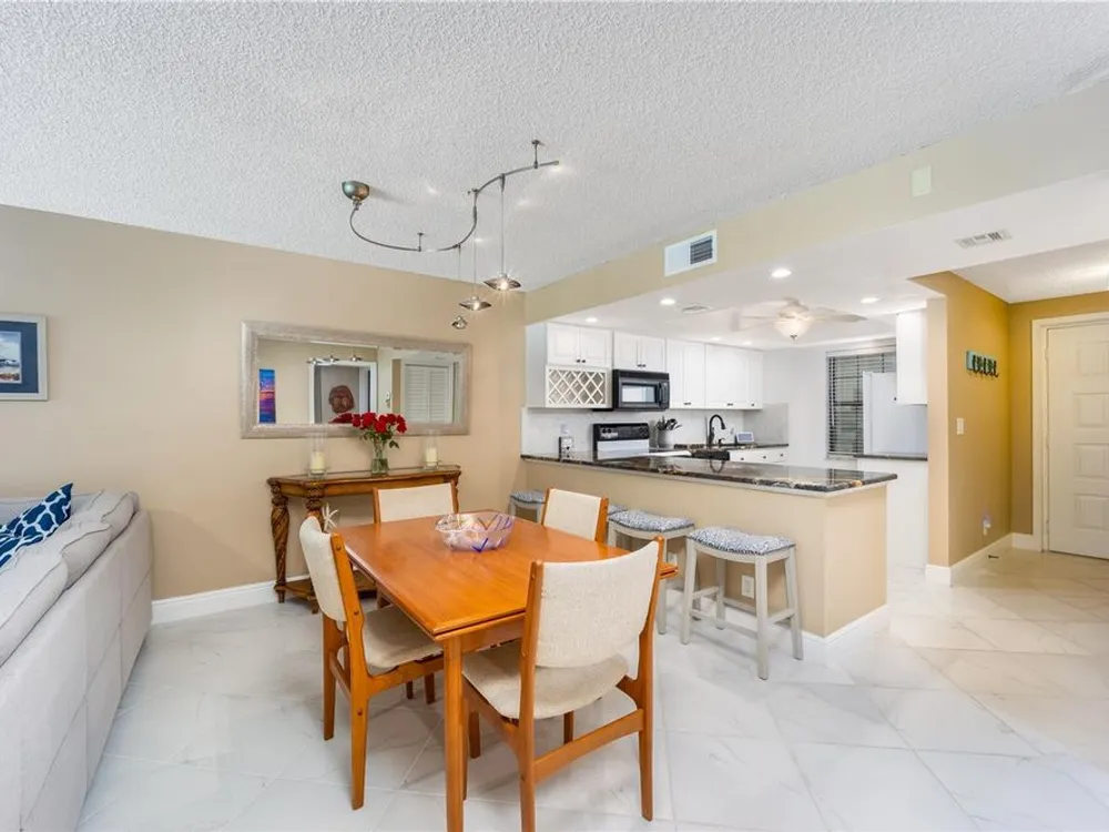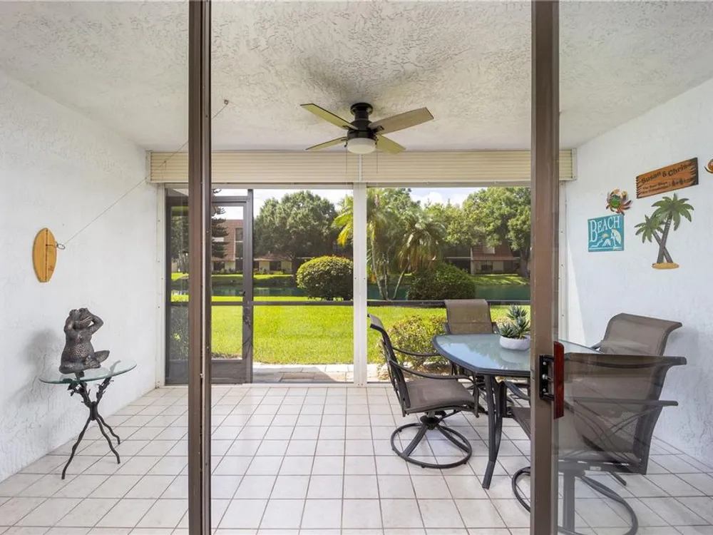Boaters Paradise! All water enthusiasts come see this Beautiful home. You will love the very affordable Boat docks that rent annually. Boater or not you will love this friendly 55 plus community that offers a true resort style. Walk to the water edge of Kitching cove to enjoy the Beautiful Sunsets or walk thru the lush green park like complex that includes a private lush orchard with a variety of fruit trees all for you as a resident. You will enjoy the large pool, exciting pickleball, to watch or play, tennis courts, clubhouse with billiards and library, outside Grills and Picnic area, Storage, kitchen, Sauna, Street lights, Elevators, all for your enjoyment. You will love the DIY large workshop. Come see this lovely updated open concept home. You would enjoy the lanai with peaceful views of the pond and fountain. Inside the 1,314 sq. ft home you have 2 oversize bedrooms and 2 updated baths and lots of closet space. A nice laundry room with storage. The Air Conditioner is 2 years old, water heater is 1 year old. If you want low maintenance living, this is it. HOA includes internet and cable, water and sewer, Trash, landscaping, all exterior maintenances including roof and insurances. No flood insurance needed. Move in ready, Don't miss this fabulous home.
