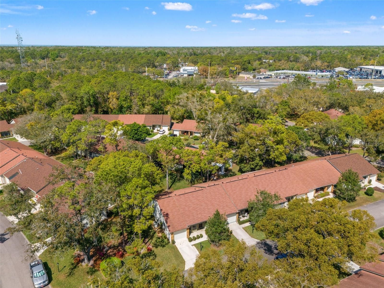 A MUST SEE! Impeccably maintained, UPDATED, End unit villa on Spacious Corner Lot. This villa is being sold COMPLETELY FURNISHED, Turnkey, INCLUDING GOLF CART (Lithium). This Village, Pine Glen II has it's own heated and cooled pool for you and your guests to enjoy, just a short walk away. BEAUTIFULLY LANDSCAPED, you'll enjoy the inviting front porch. Enter into OPEN CONCEPT light and bright tastefully decorated villa. The tiled Kitchen with Updated WOOD Cabinets, (with soft close and pull outs), Under cabinet lighting, NEWER STAINLESS STEEL APPLIANCES, CORIAN Counters, Oversized Pantry. There's a darling Kitchen Nook to enjoy your Morning Coffee. The Kitchen opens to Dining Room, and Living Room. The large Family Room provides lots of area for entertaining. Floors are laminate throughout living areas. Kitchen and Baths are tiled. 2 Bedrooms are carpeted. The Master Bath has a Vanity at entrance, and has a vanity sink and shower. The Master Bedroom is very large and has generous Walk In Closet. The Guest room is roomy and also has large walk in closet for extra storage. The connecting bath has a tub/shower combo. The garage has plenty of room for car and laundry area with Utility sink. The attic is partially floored for storage. There is a GOLF CART GARAGE for your golf cart and charger. Golf cart garage door is around side of villa. The Golf Cart has a one year old lithium battery and tires. No charger required charges on 120v outlet. Roof 2020, HVAC 2013. This village also provides termite protection in maintenance 125/month Not Pet Friendly village. Timber Pines HOA includes Spectrum high speed internet, basic cable and 2 cable boxes. Enjoy the GREAT LIFE Timber Pines has to offer, a gated 55+ Active Adult Community. Timber Pines boasts 4 pristine golf courses, Award Winning Pickle Ball center, New Wellness Center, Tennis, Billiards, Wood Shop, Arts and Crafts Center, Club House and Restaurant, Performing Arts Center, Residents Activity Center, so many activities. Over 100 clubs. CALL TODAY!!!!