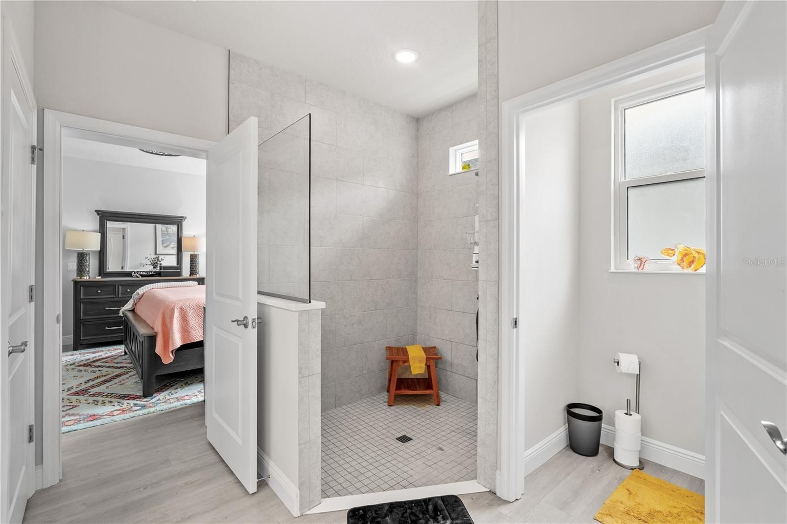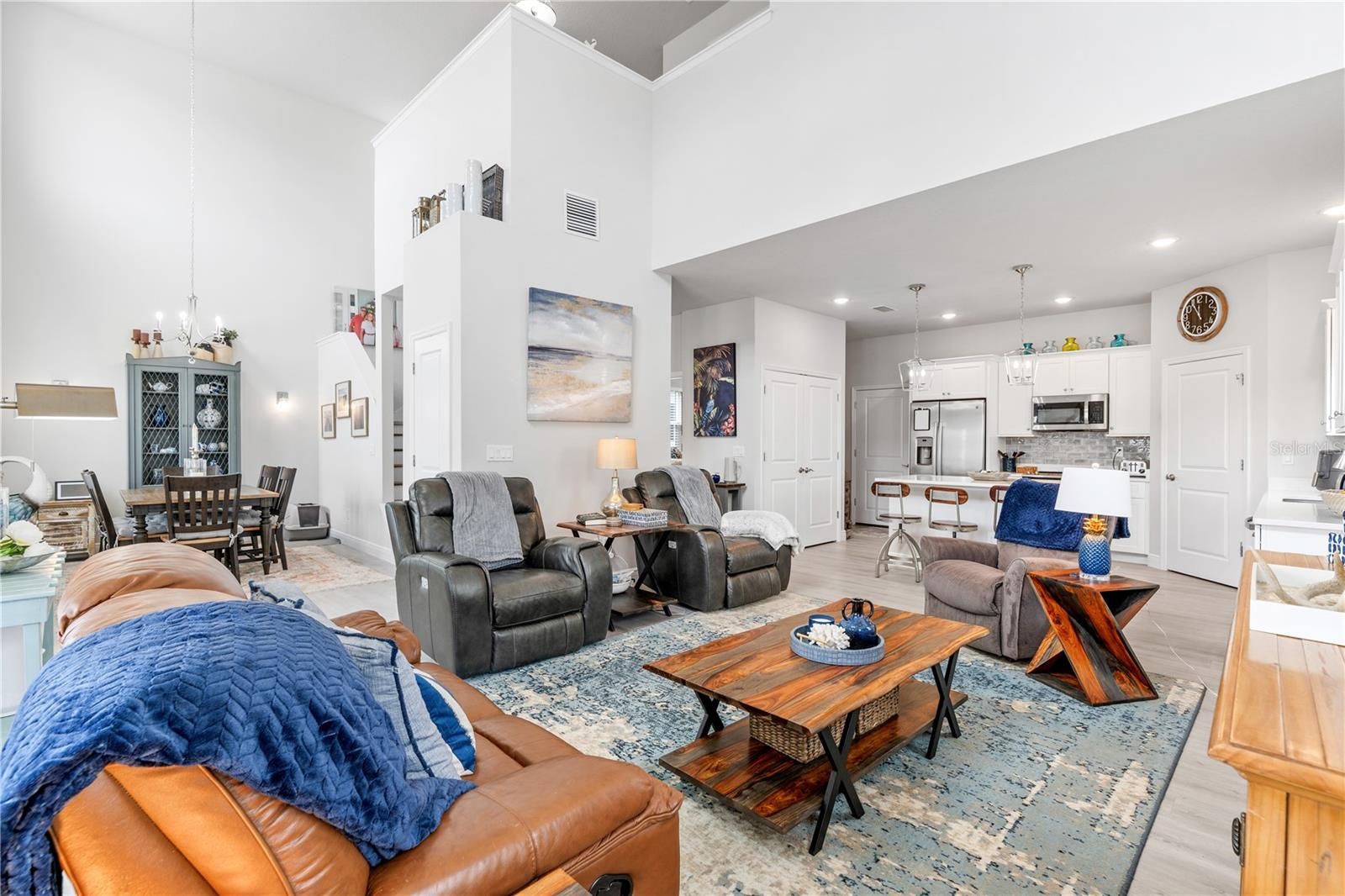 - Ceiling Fan(s), High Ceilings, Kitchen/Family Room Combo, Open Floorplan, Main Level Primary, Solid Surface Counters, Stone Counters, Vaulted Ceiling(s), Walk-In Closet(s), Window Treatments
