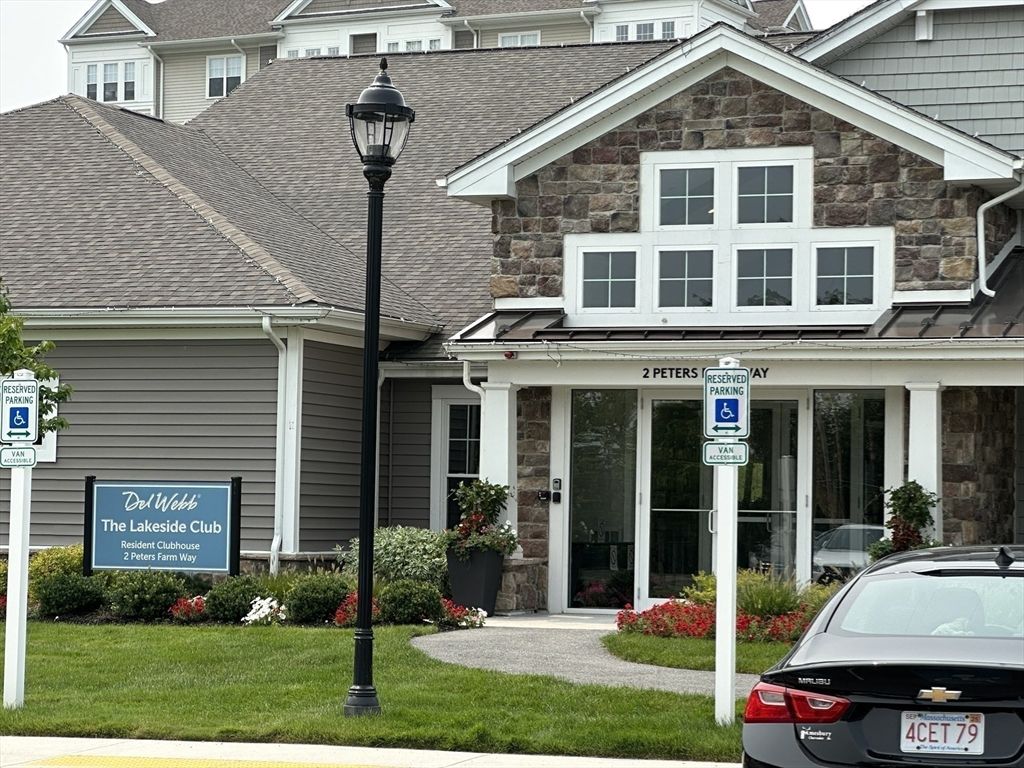 Welcome to 3102 Peters Farm Way at Del Webb Chauncy Lake. This is an over 55 community in Westborough, MA. They have a large club house with a billiards room, fitness room, card rooms, meeting rooms, cafe, function room, ping pong, and leads out to an inground heated pool and patio, also an area for grilling and gathering. There are tennis and pickle ball courts. This is a Jefferson style one bedroom on the first floor convenient for entering and exiting the building, and has upgrades of a ceiling fan with lights in the bedroom, and living room, under cabinet lighting in the kitchen, and granite countertops, double french doors at the den, crown and neck molding in the living room, and grab bars in the shower , and bathroom. Also very convenient to Rte. 9, 495, and the Mass Pike.